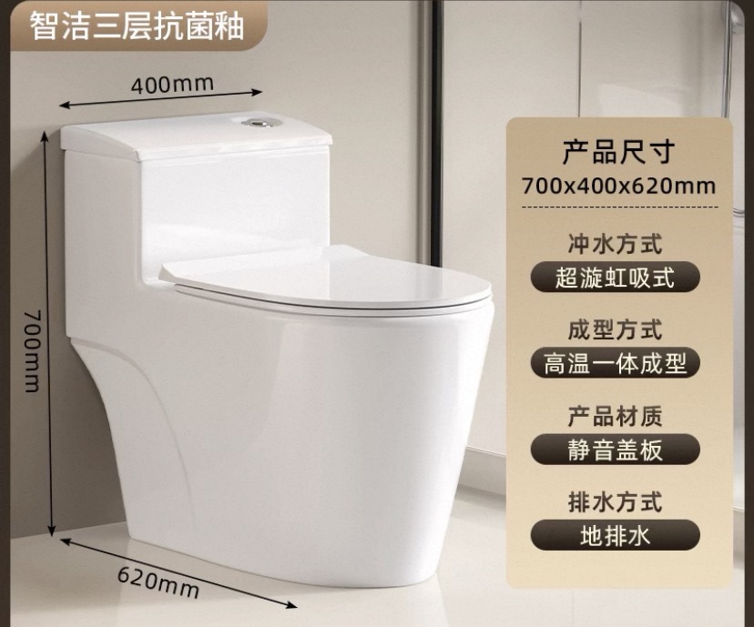 家用抽水马桶大口径卫浴座便虹吸式防臭坐厕小户型普通陶瓷坐便器