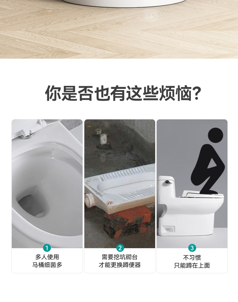 蹲坐两用马桶一体陶瓷蹲便器坐便马桶改蹲厕免砌台蹲坑免挖坑防臭