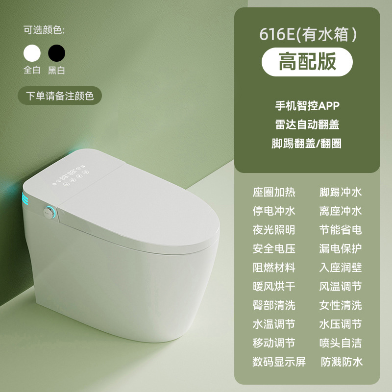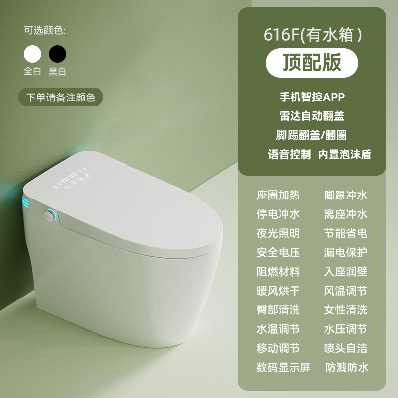 智能自动马桶遥控泡沫盾防溅冲洗高温陶瓷坐便带水箱无水压限制