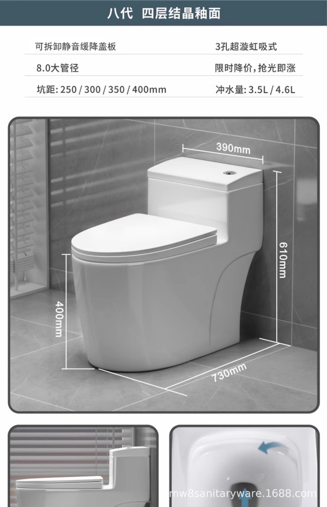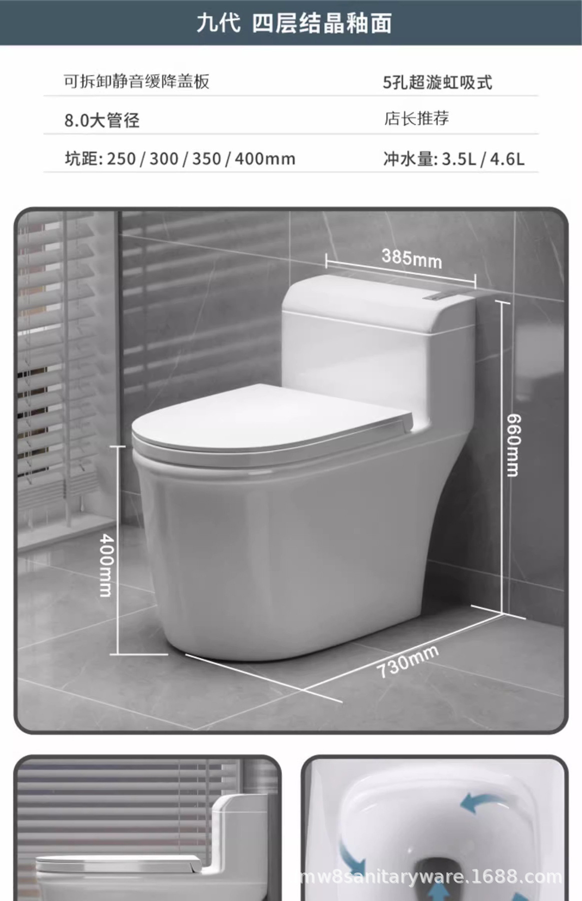 简约家用马桶卫生间陶瓷卫浴抽水马桶防臭大口径虹吸式坐厕坐便器