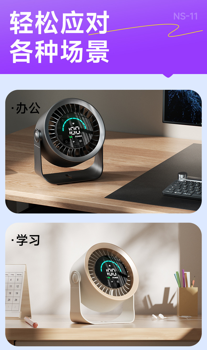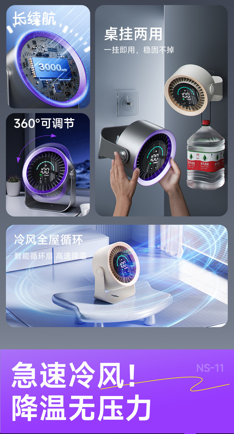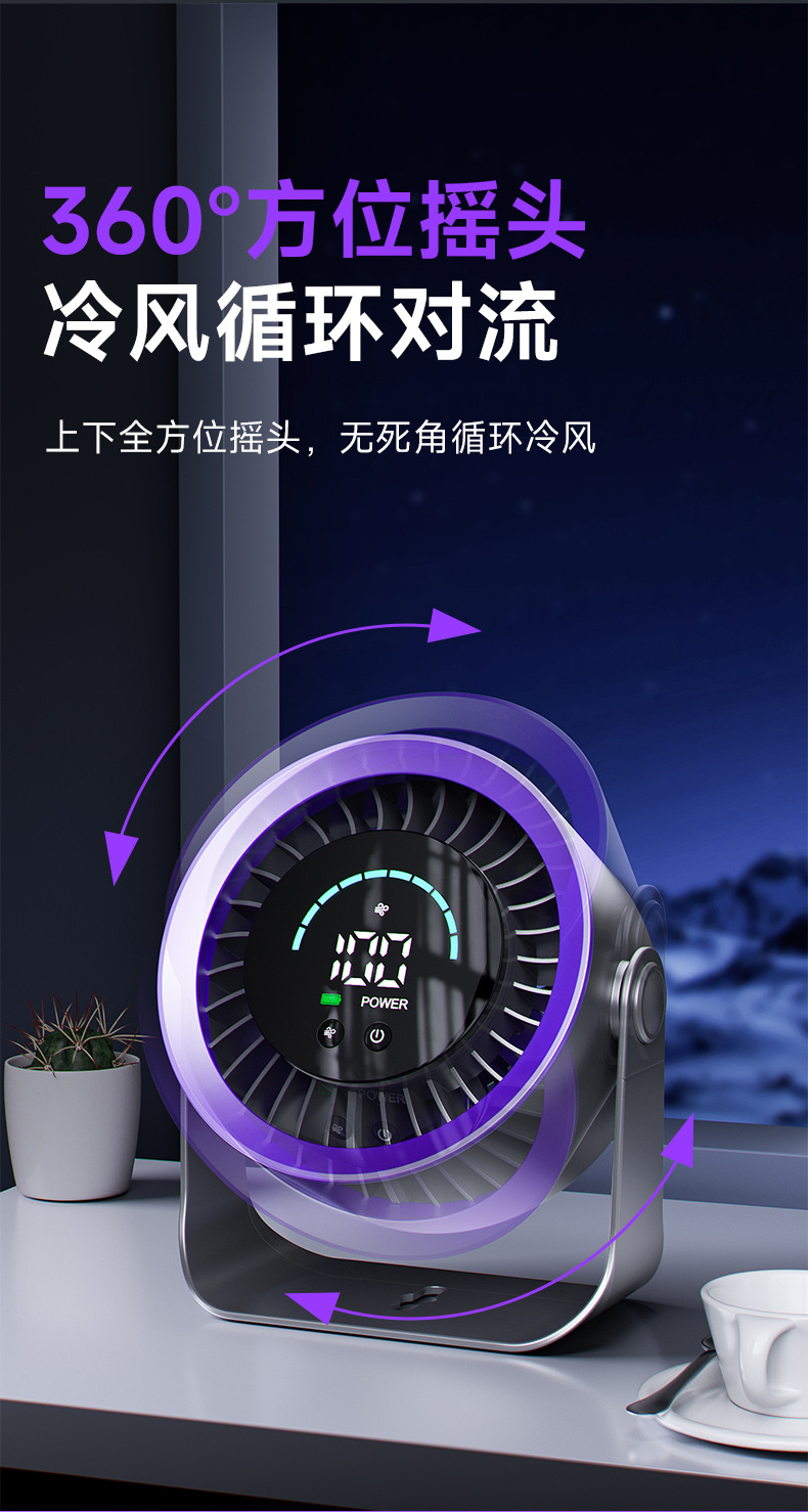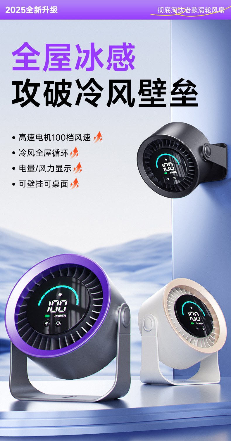新款高速循环扇家用厨房充电静音桌面涡轮小风扇壁挂台式小电风扇