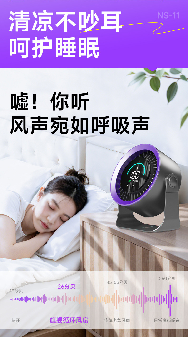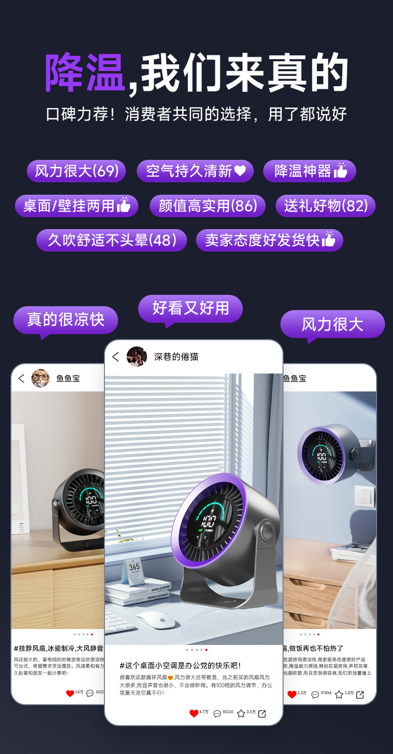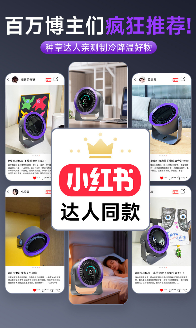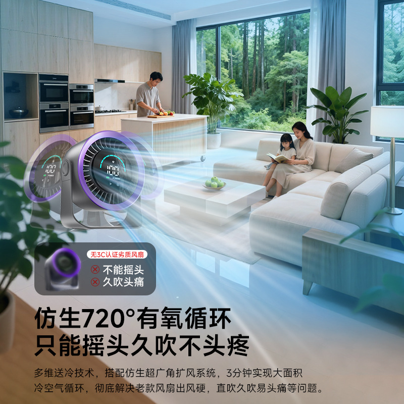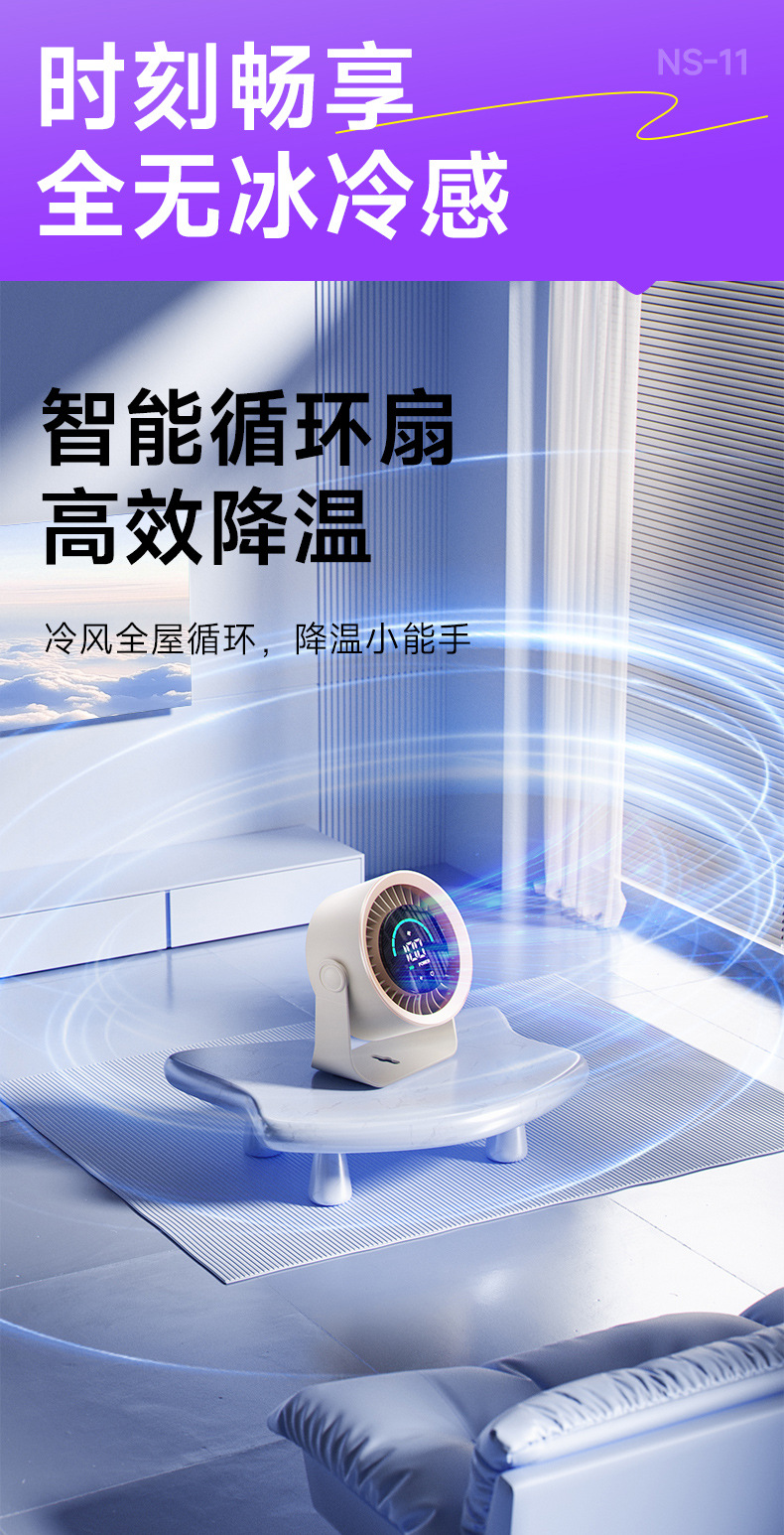 新款高速循环扇家用厨房充电静音桌面涡轮小风扇壁挂台式小电风扇