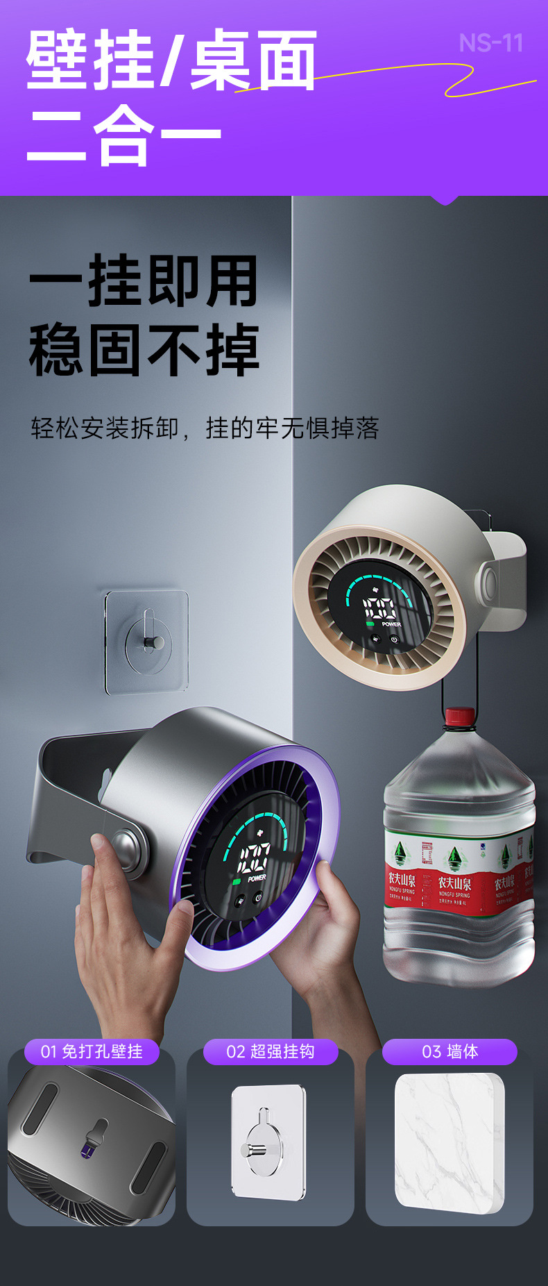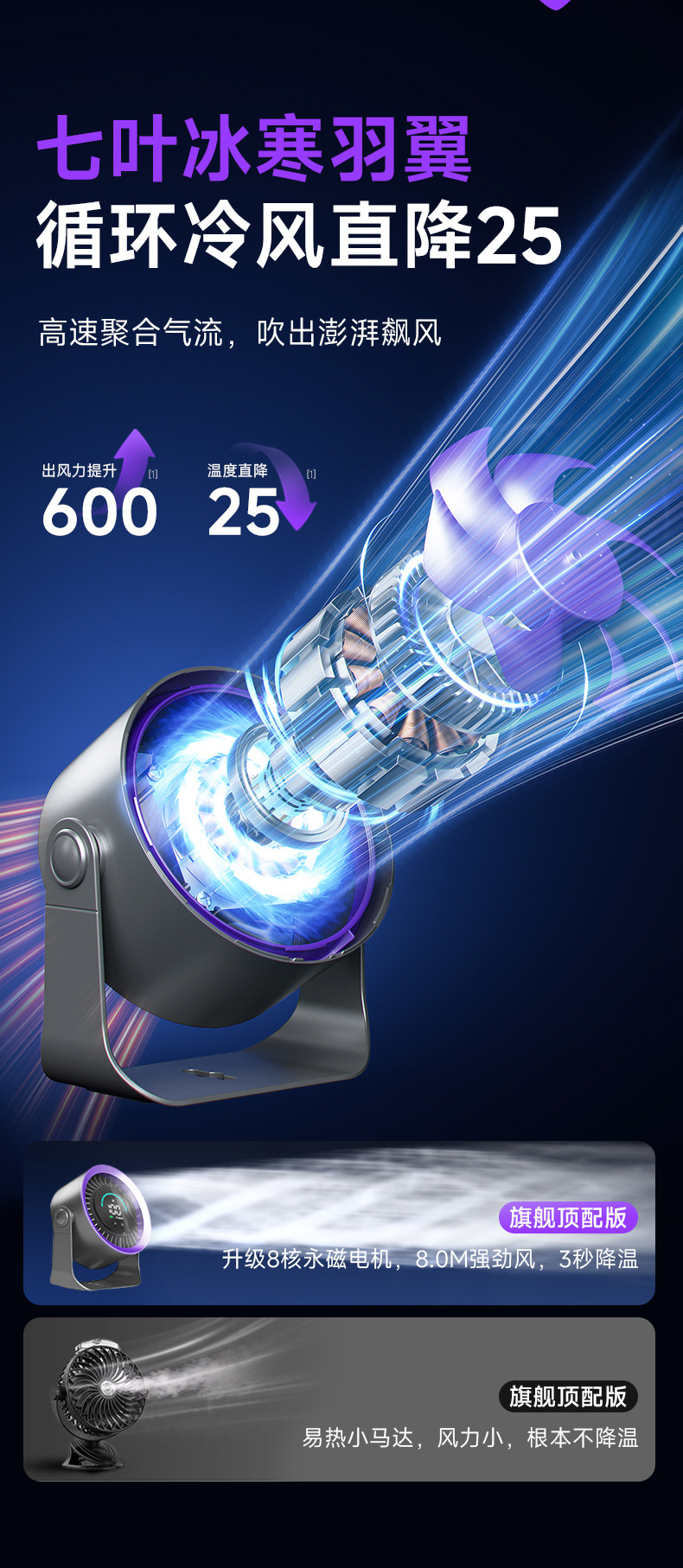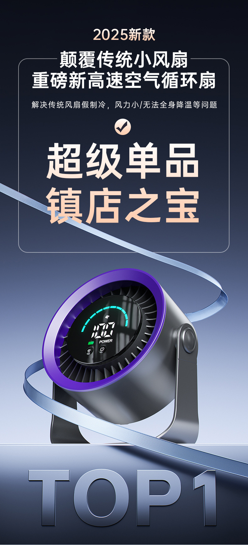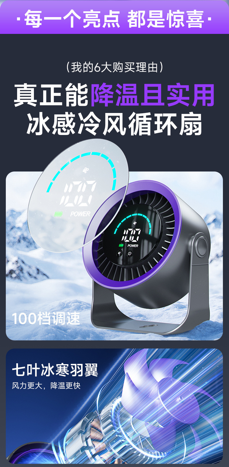 新款高速循环扇家用厨房充电静音桌面涡轮小风扇壁挂台式小电风扇