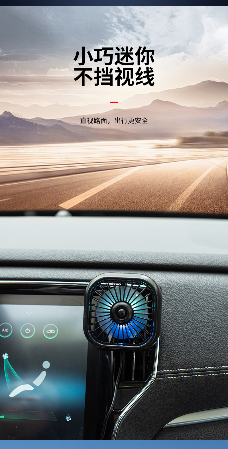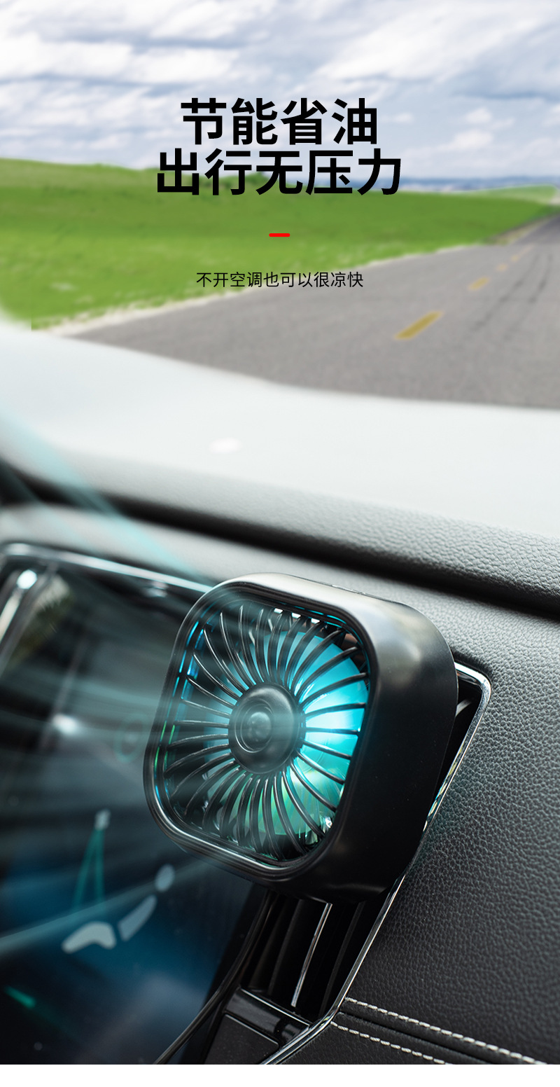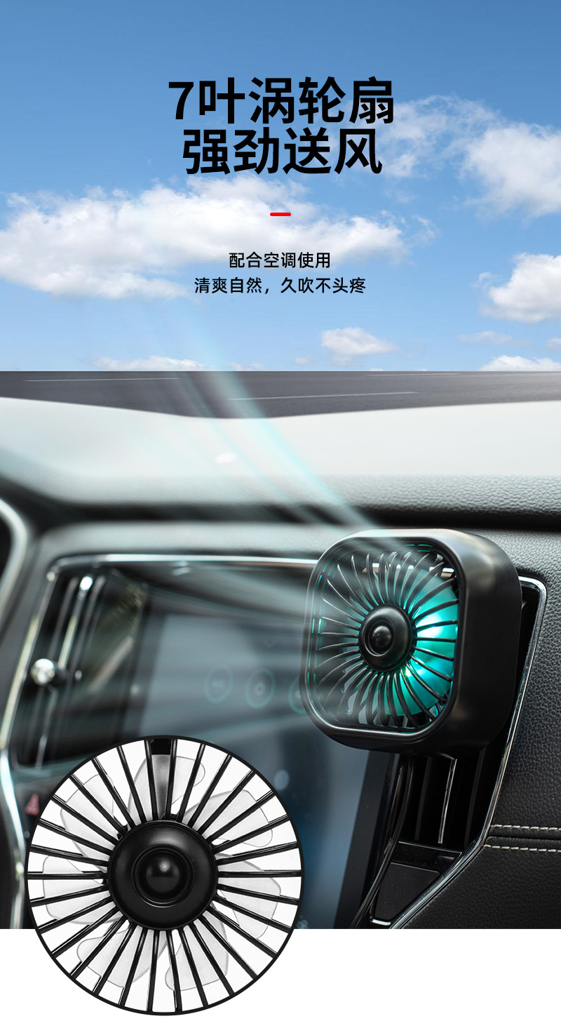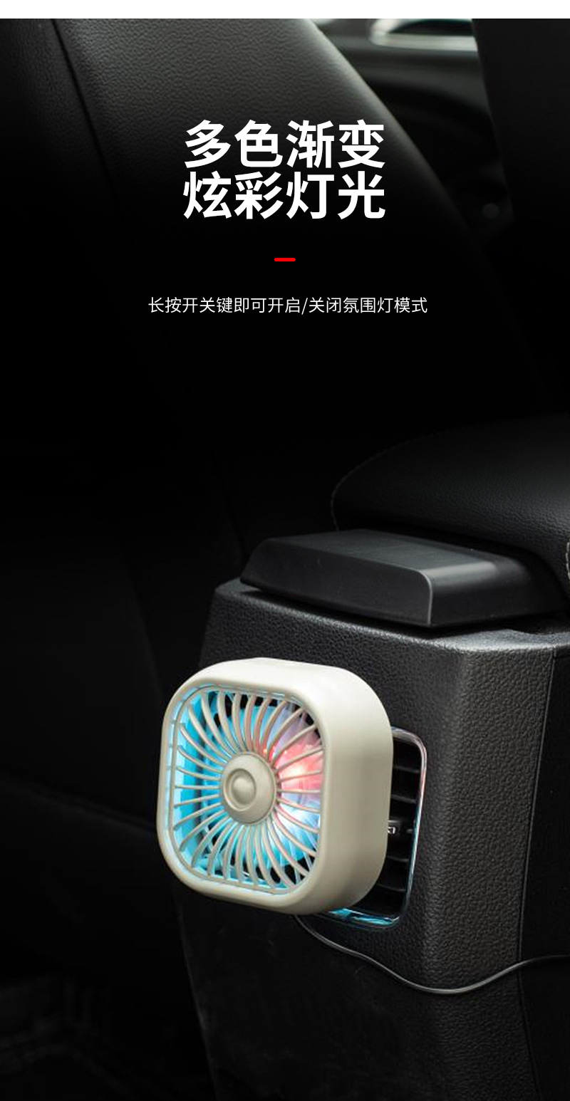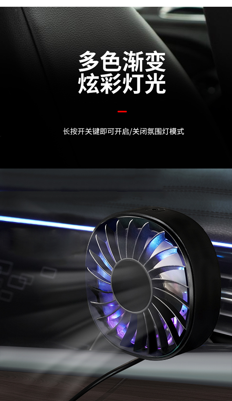 批发炫彩车载风扇跨境车用礼品迷你风扇大风出风口车载usb小风扇