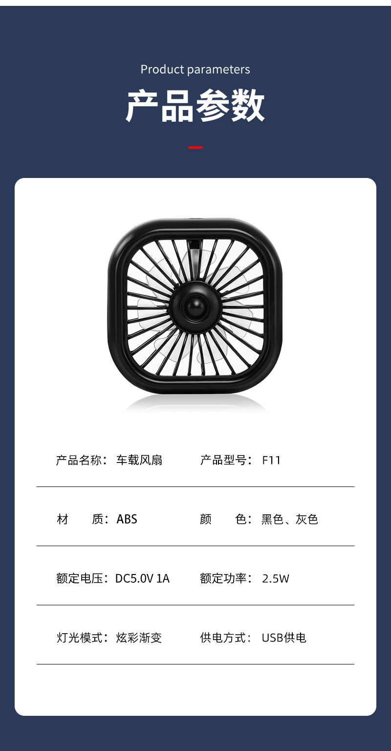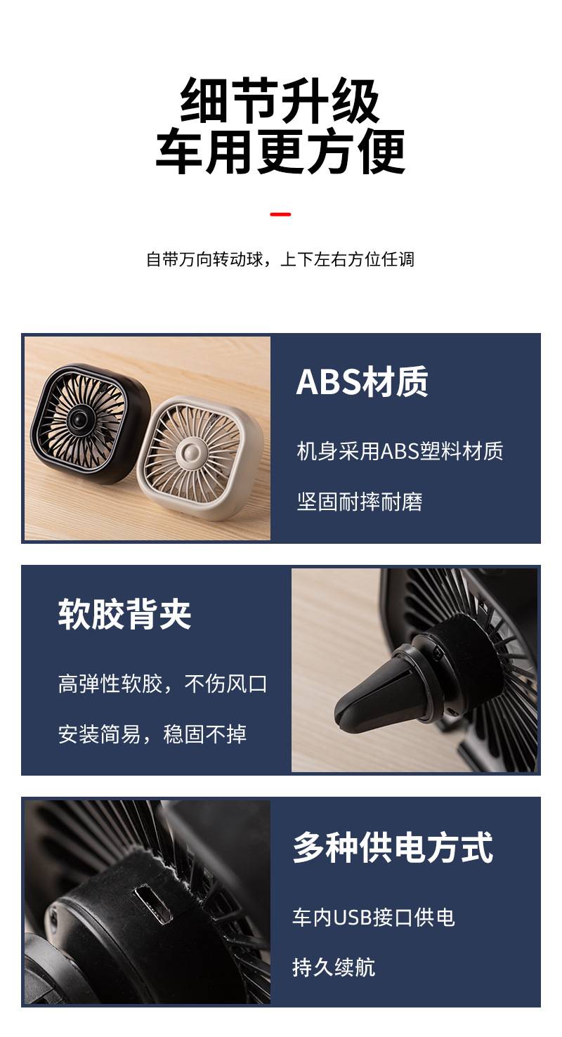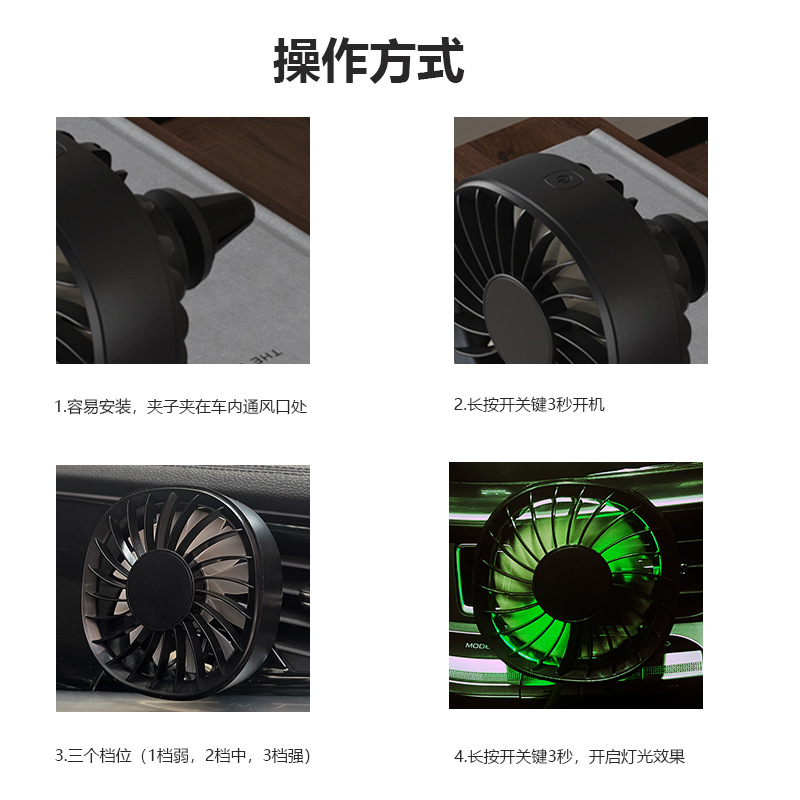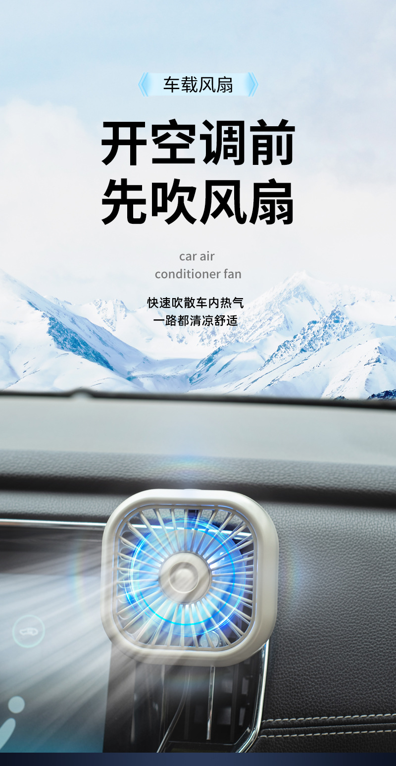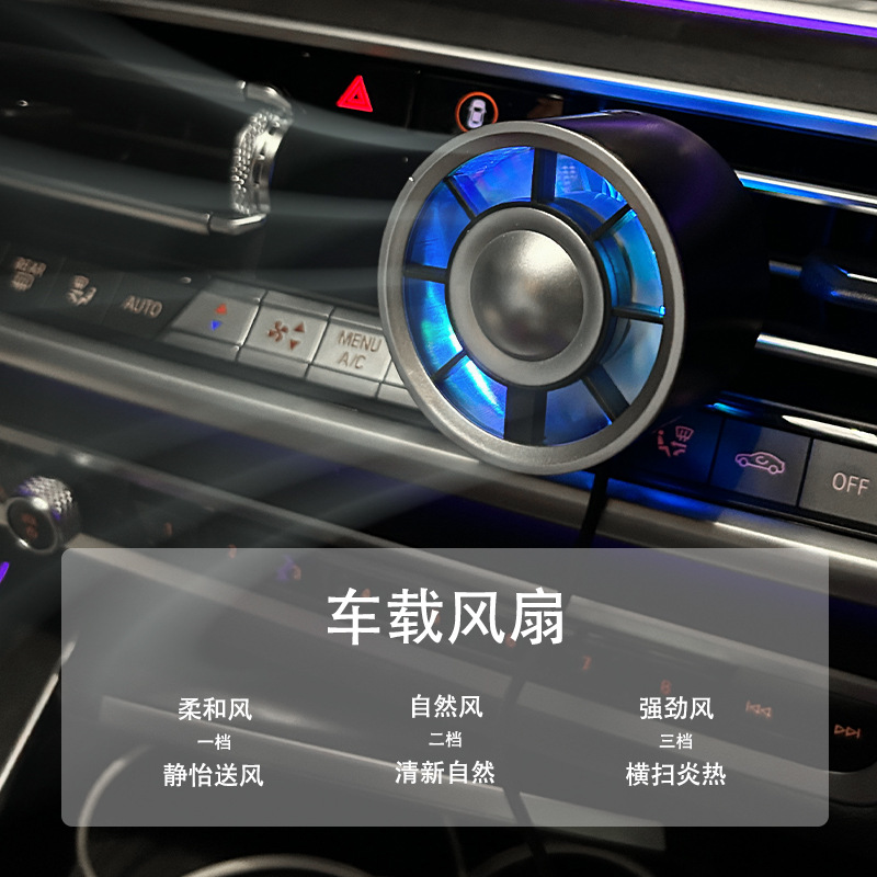 批发炫彩车载风扇跨境车用礼品迷你风扇大风出风口车载usb小风扇