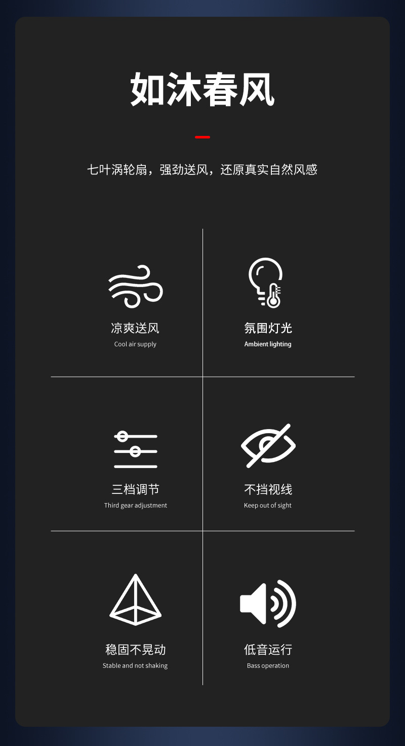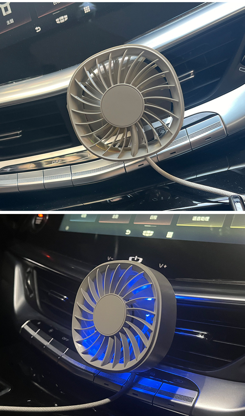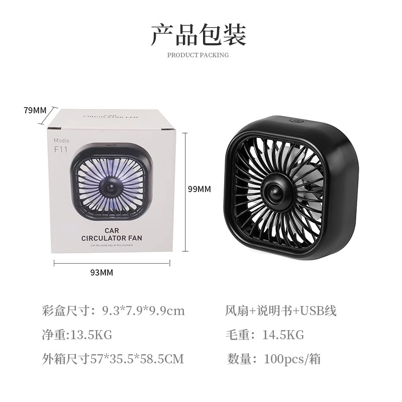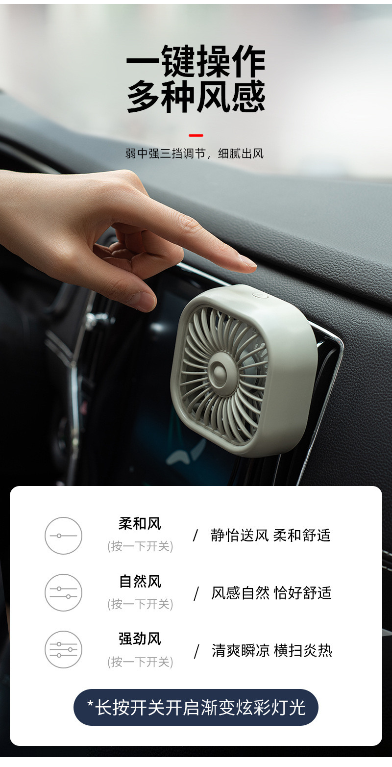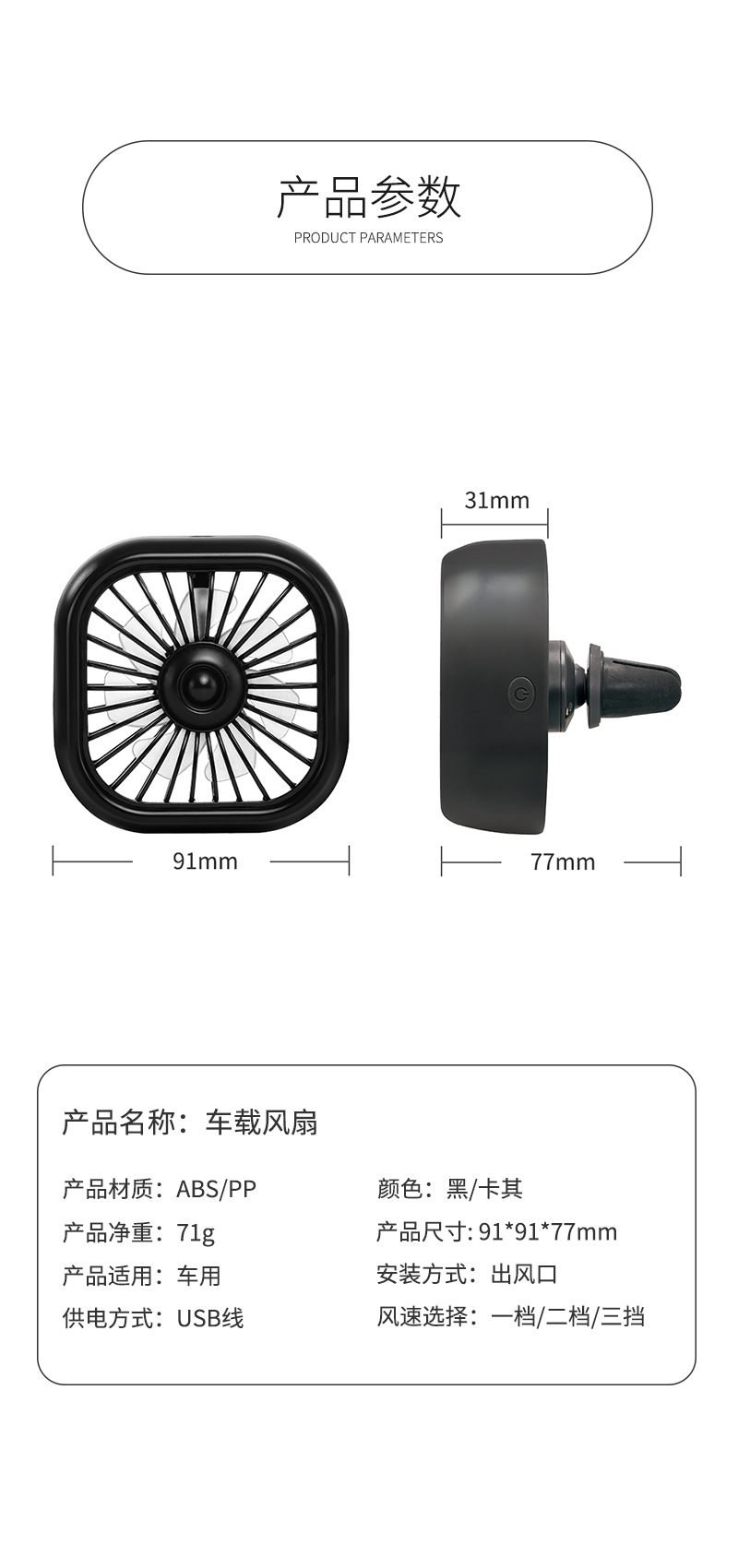 批发炫彩车载风扇跨境车用礼品迷你风扇大风出风口车载usb小风扇