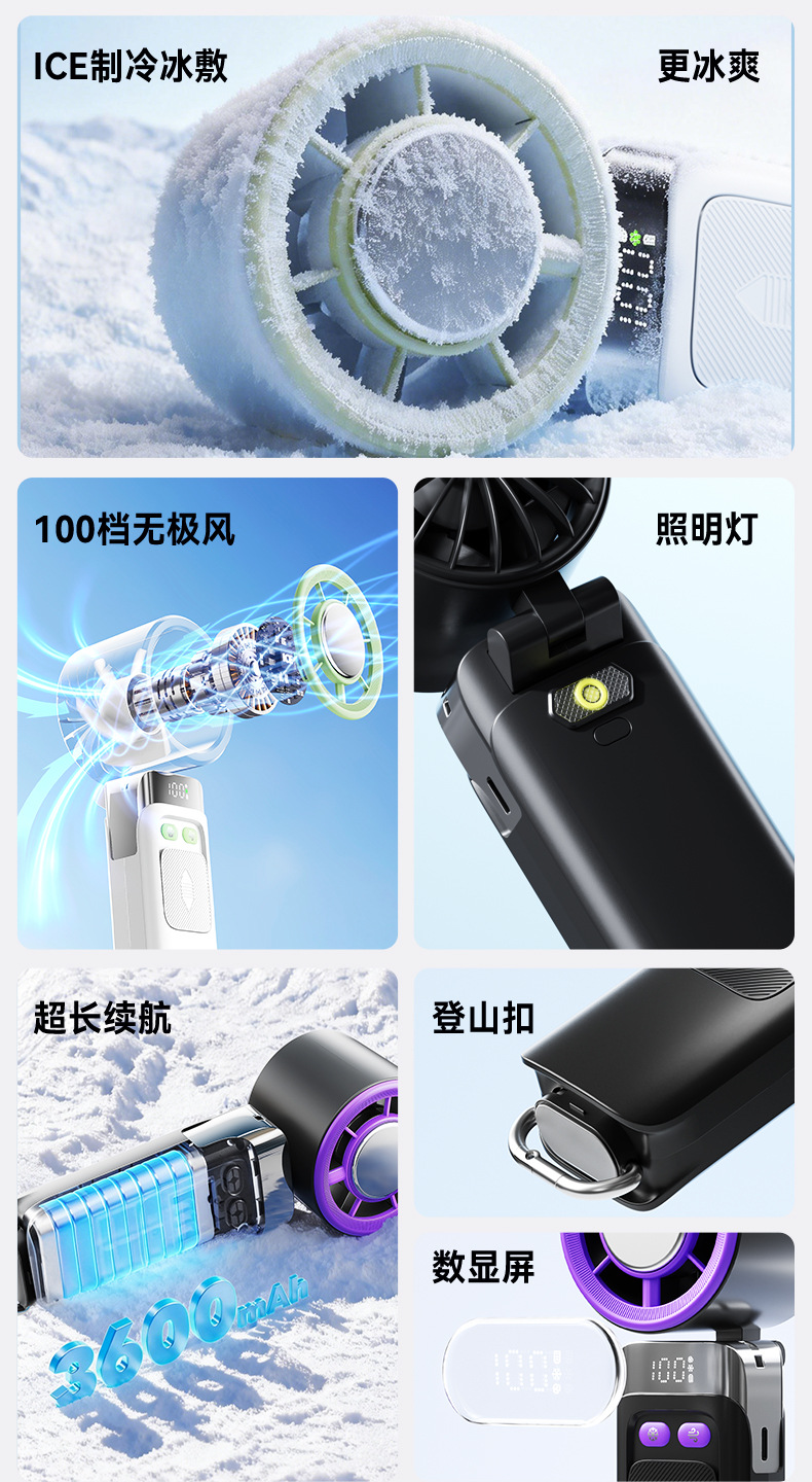 2026新款跨境半导体制冷高速手持风扇usb迷你便携充电折叠小风扇