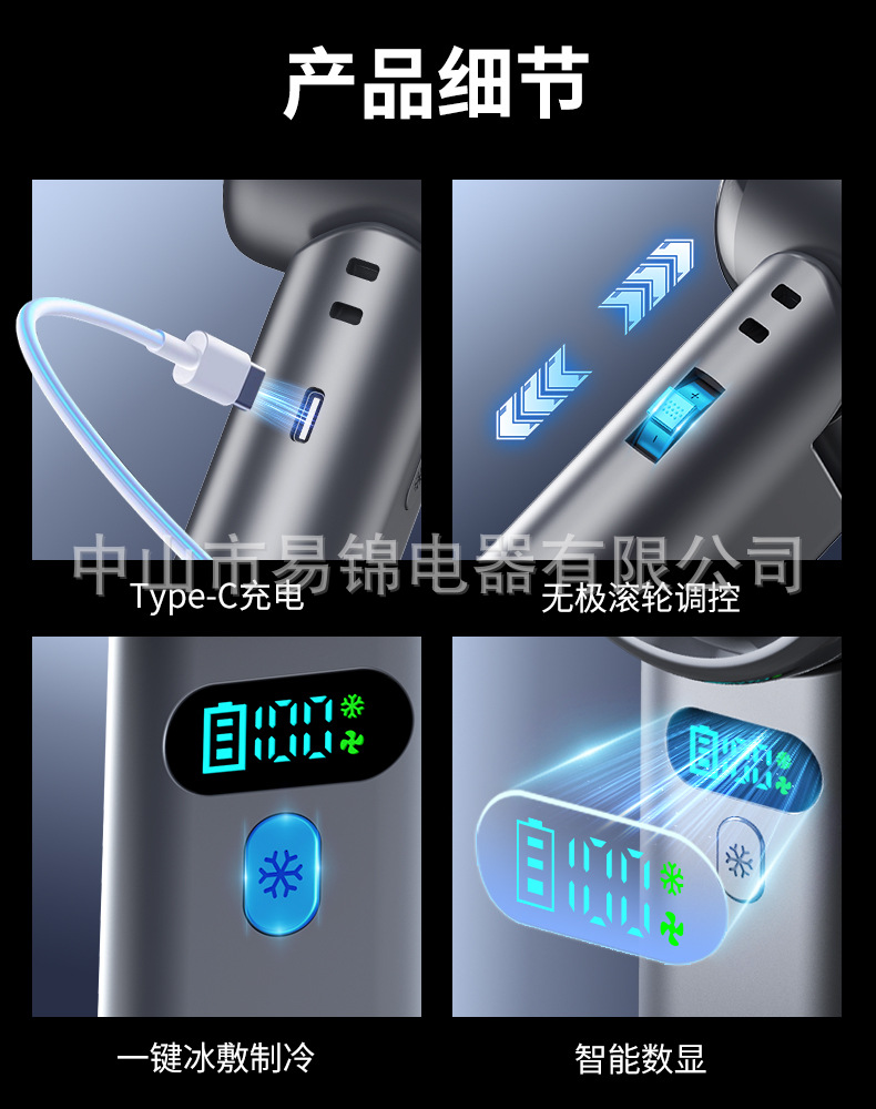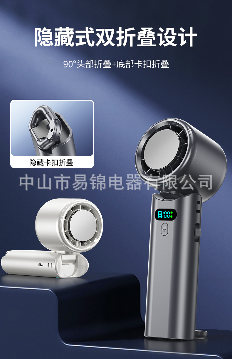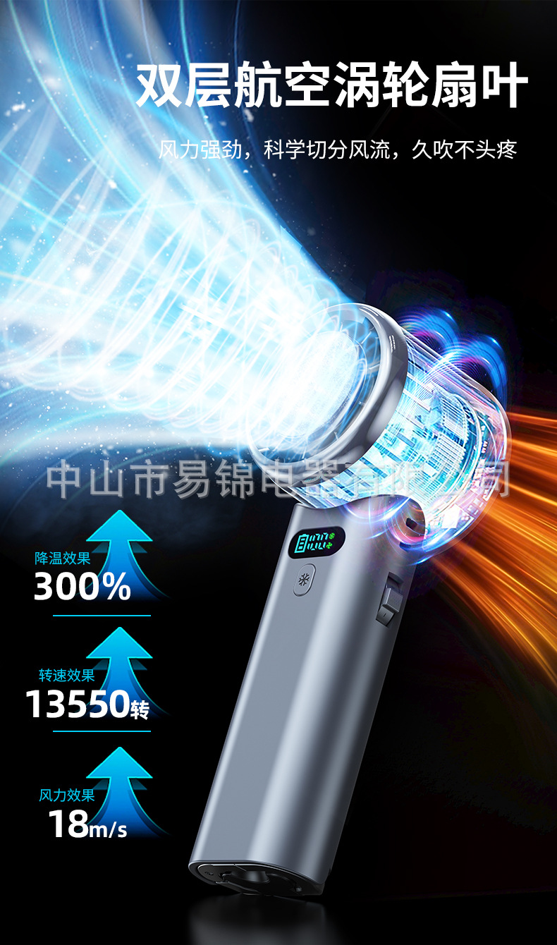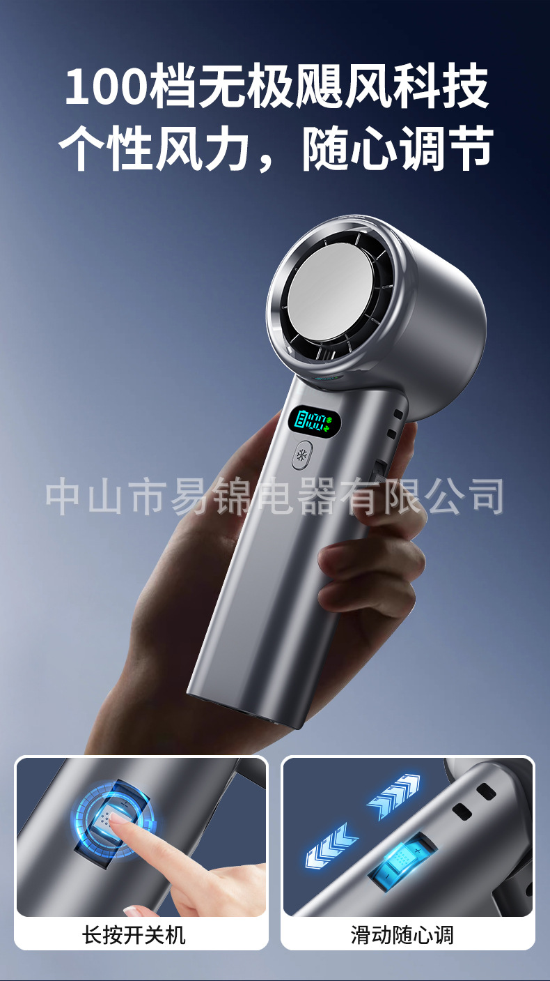 跨境新款100档高速制冷手持风扇无极调速涡轮风扇便携折叠小风扇