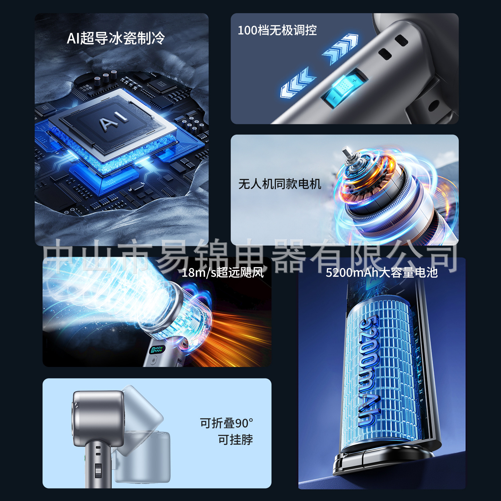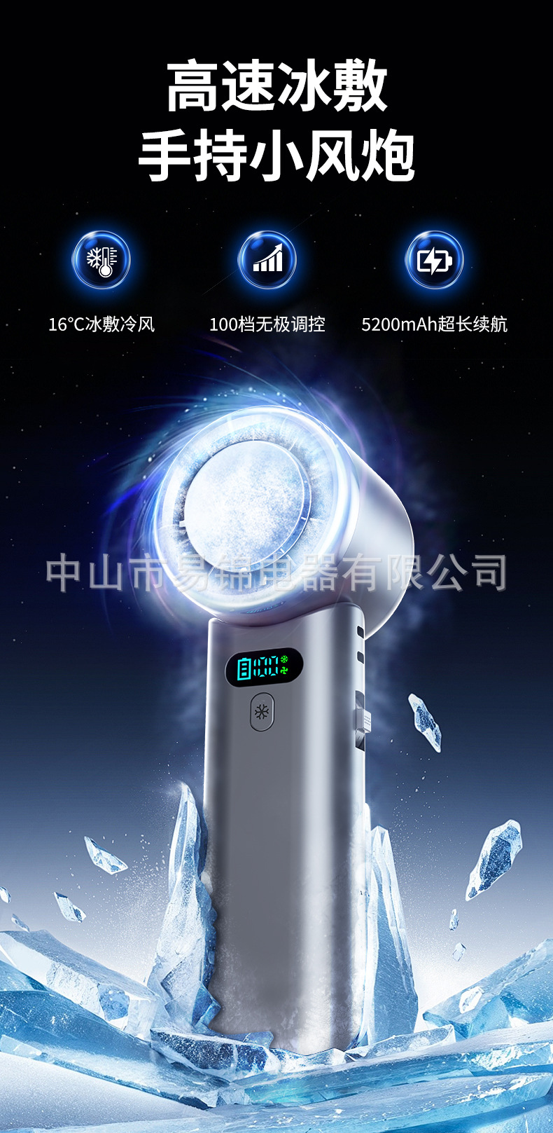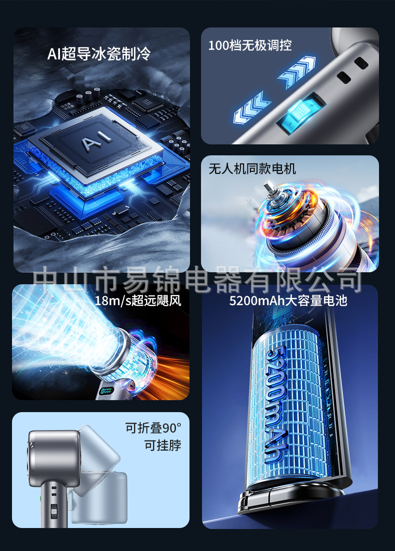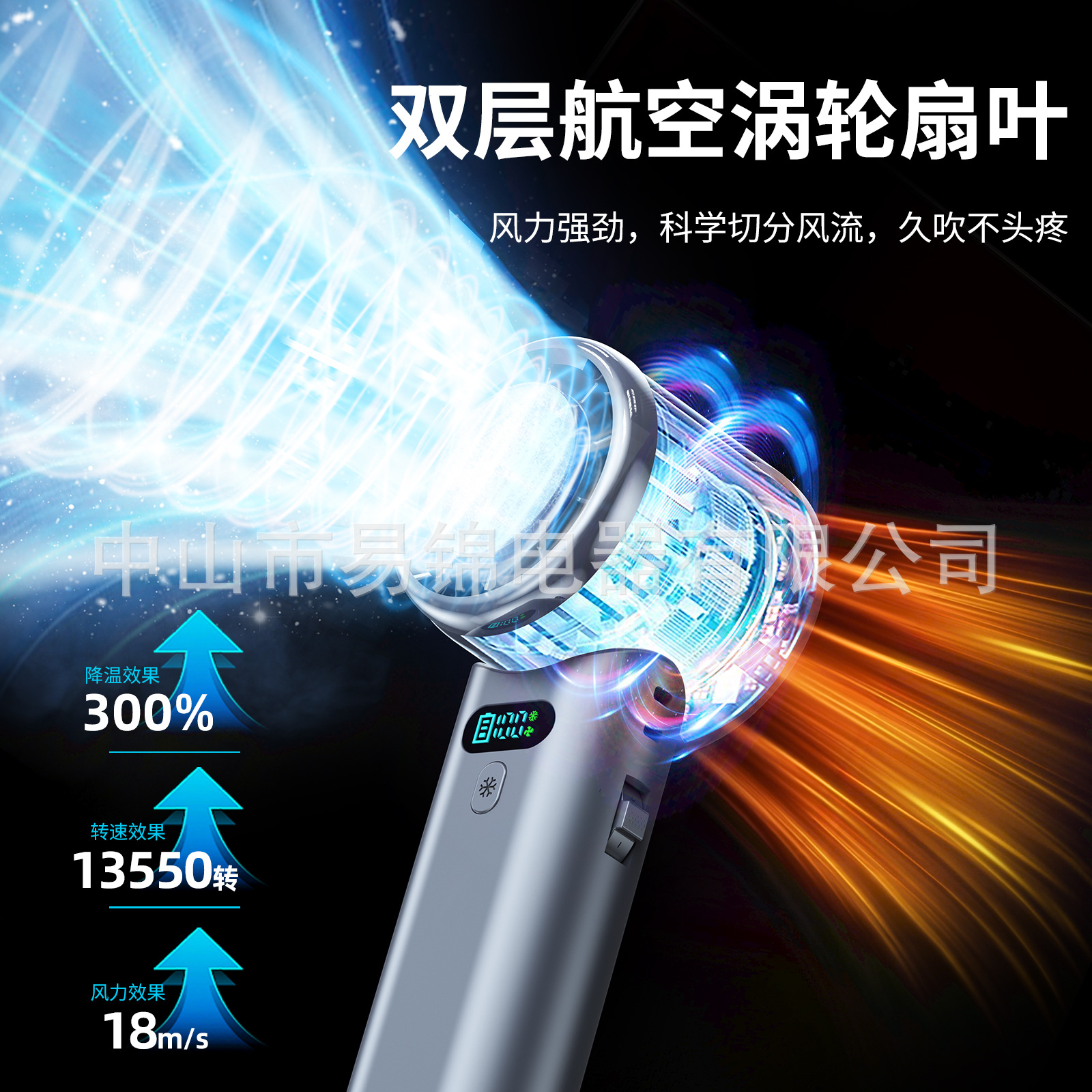 跨境新款100档高速制冷手持风扇无极调速涡轮风扇便携折叠小风扇