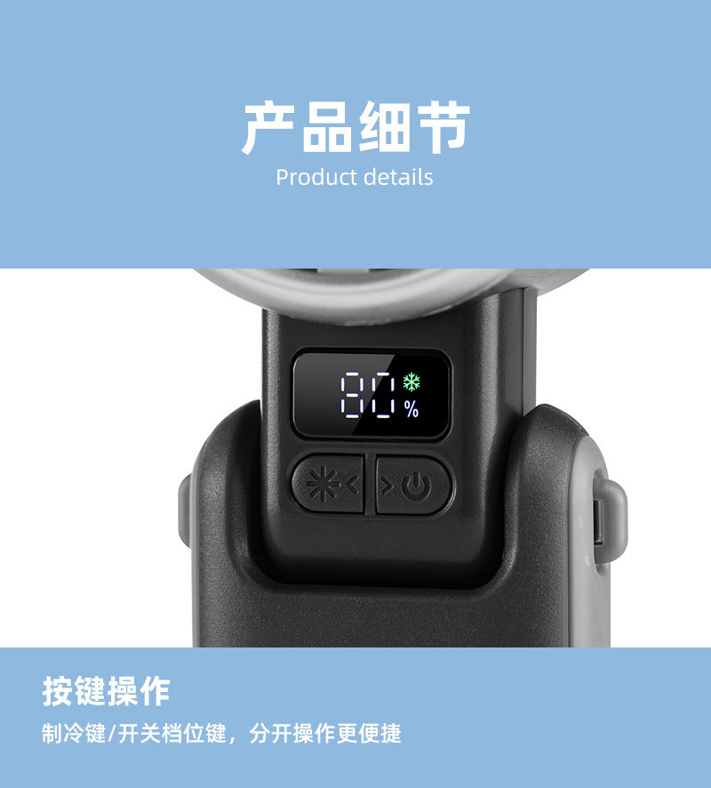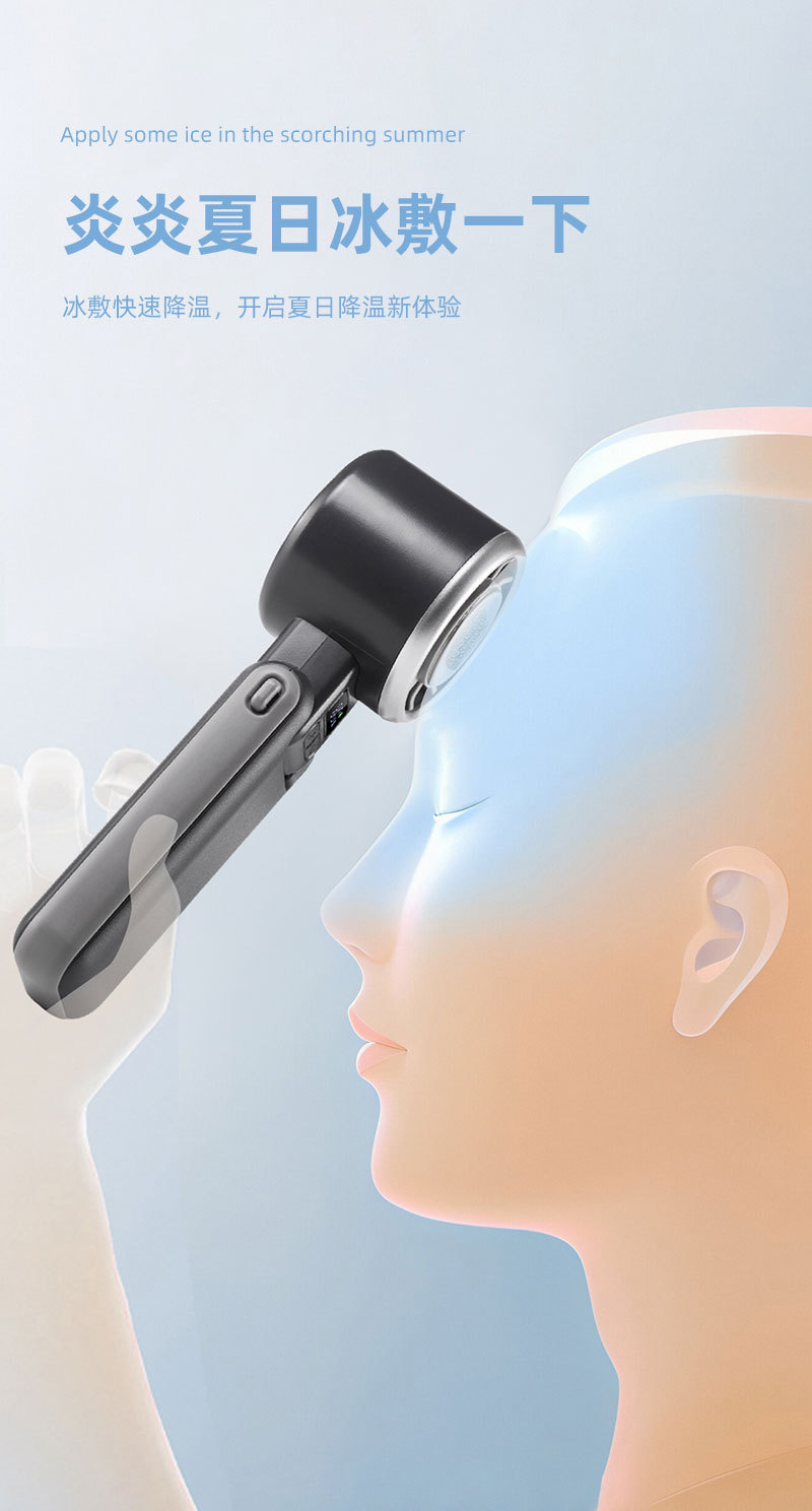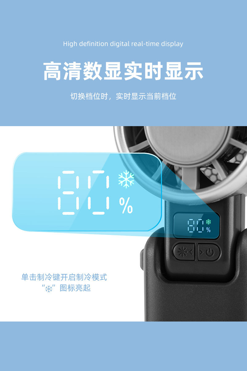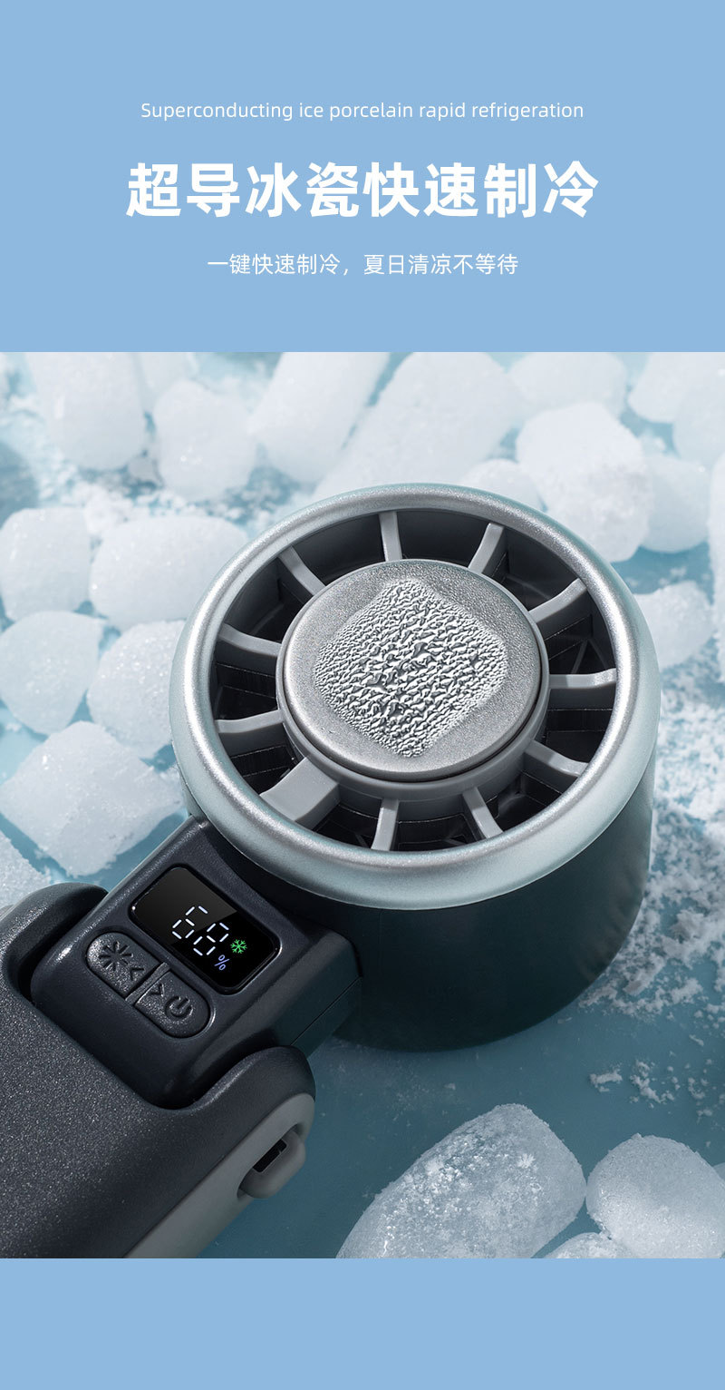 新款手持冰敷制冷风扇数显超高速涡轮五档冰敷风扇户外大风力风扇