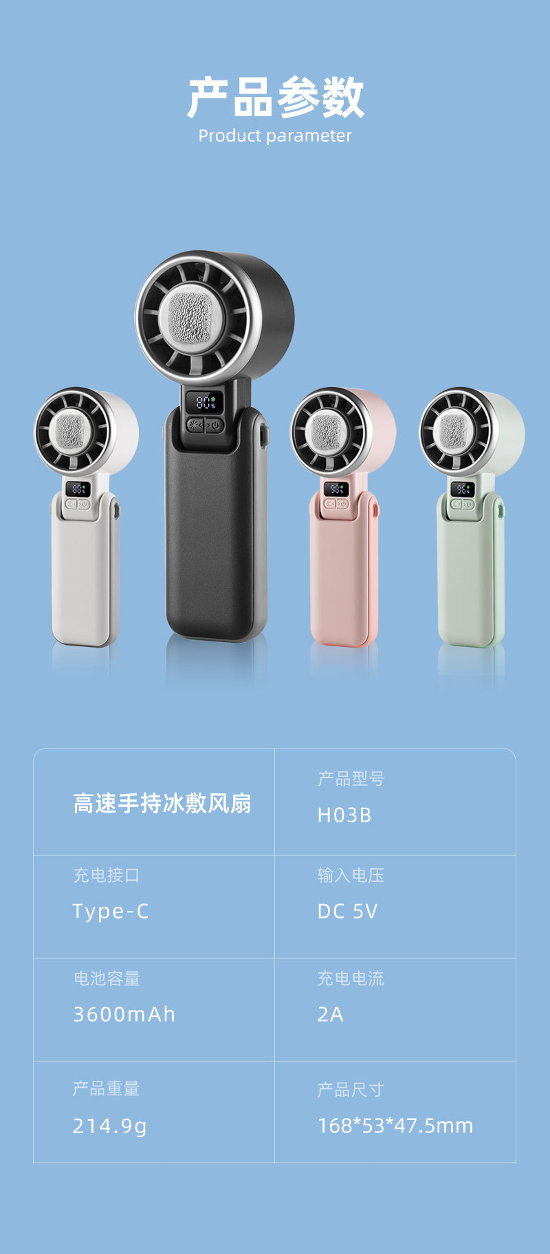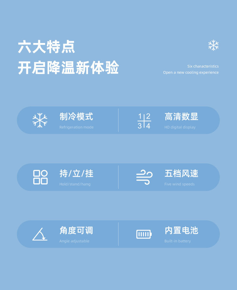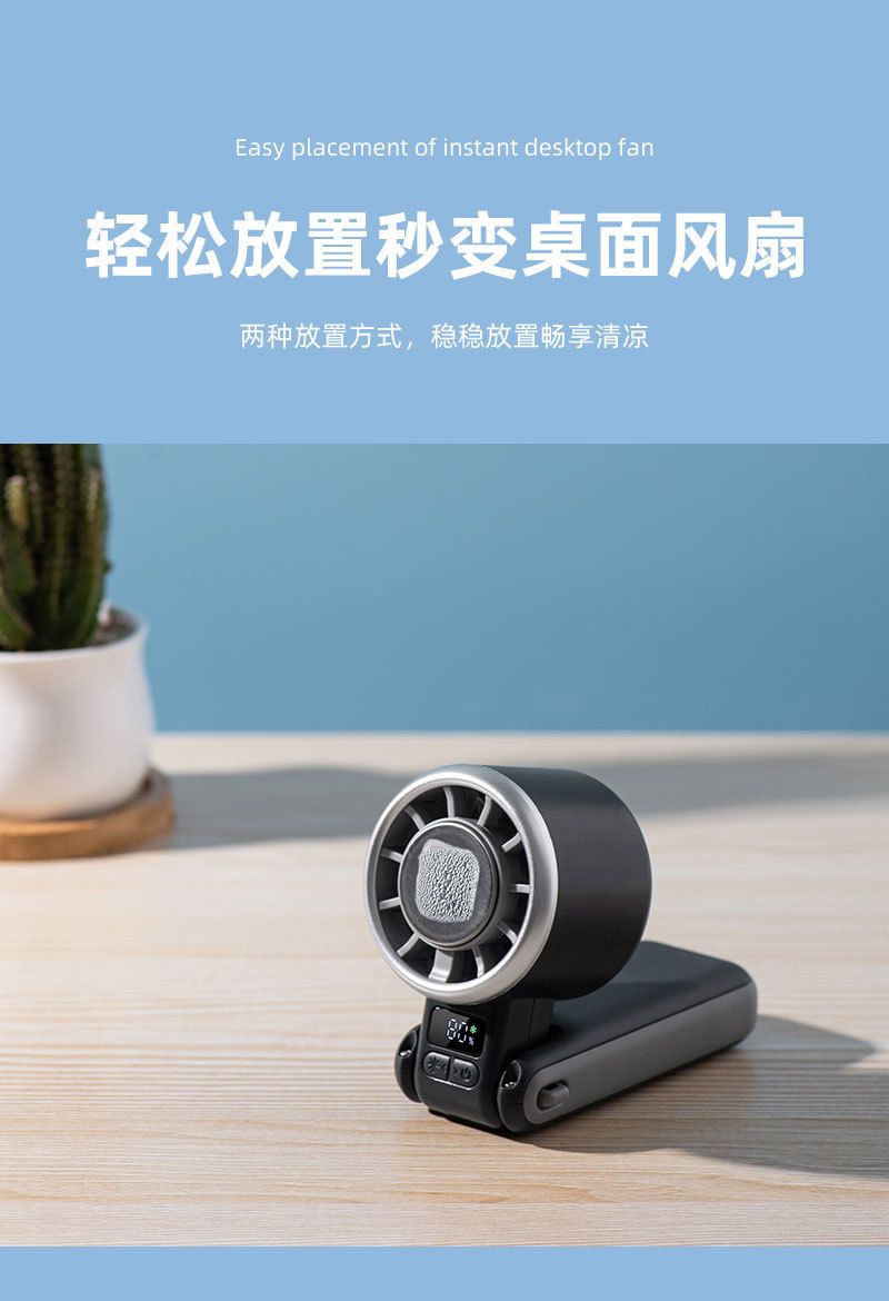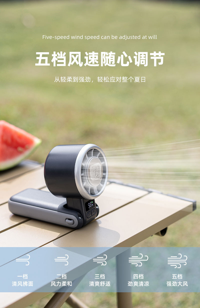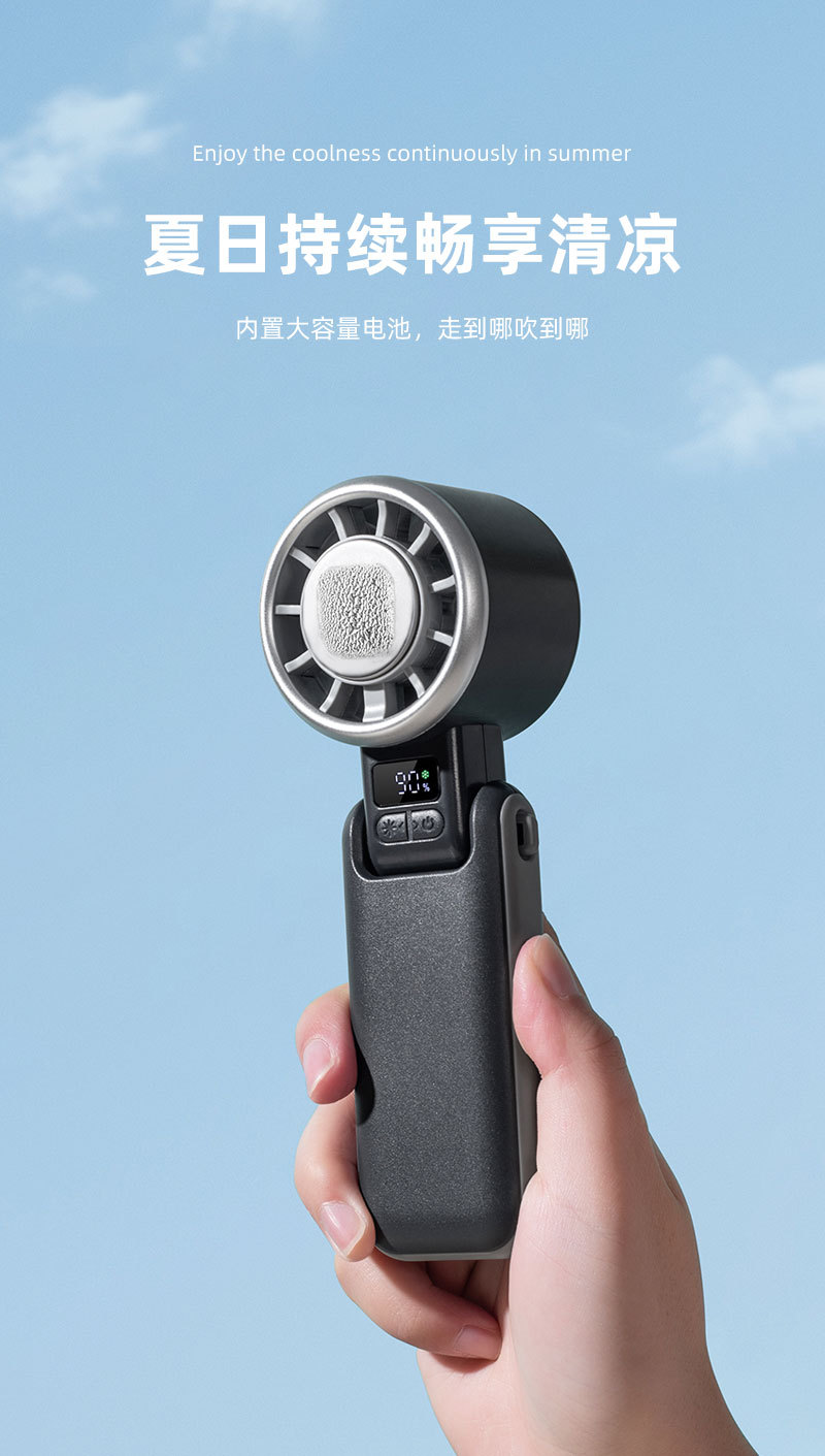 新款手持冰敷制冷风扇数显超高速涡轮五档冰敷风扇户外大风力风扇