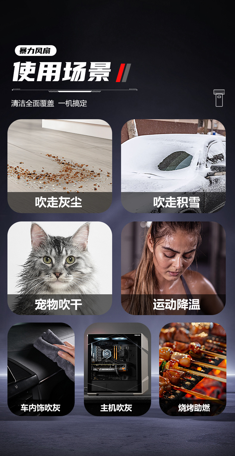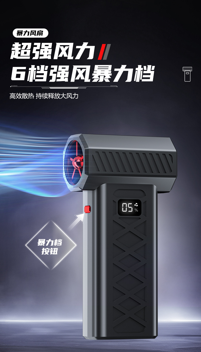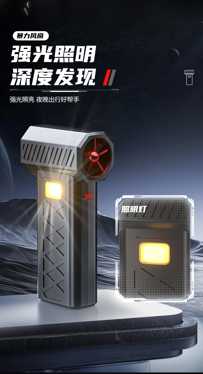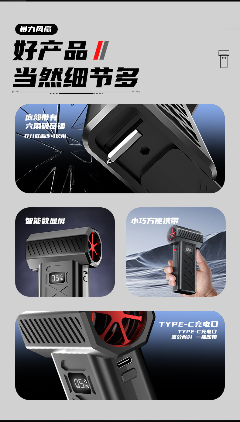 跨境爆款便携式暴力风扇大功率吹风机除尘吹雪应急照明救援破窗锤