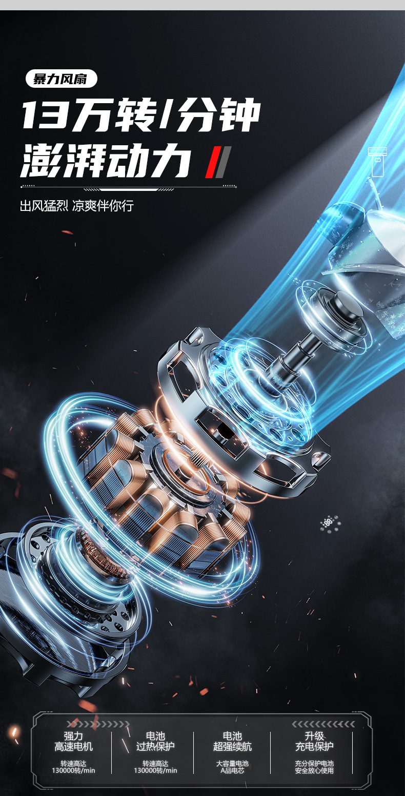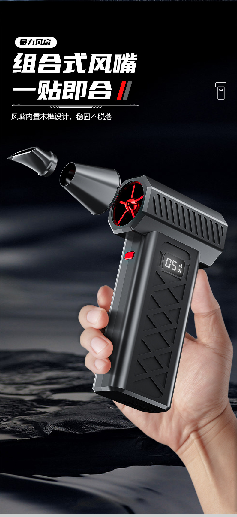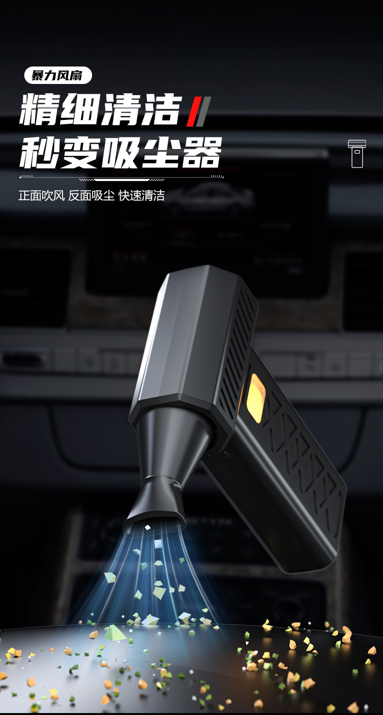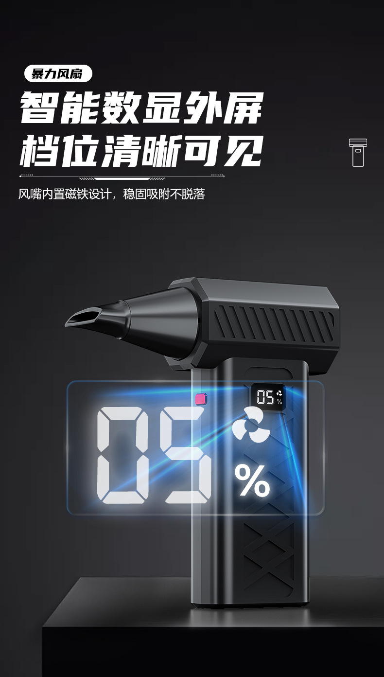 跨境爆款便携式暴力风扇大功率吹风机除尘吹雪应急照明救援破窗锤