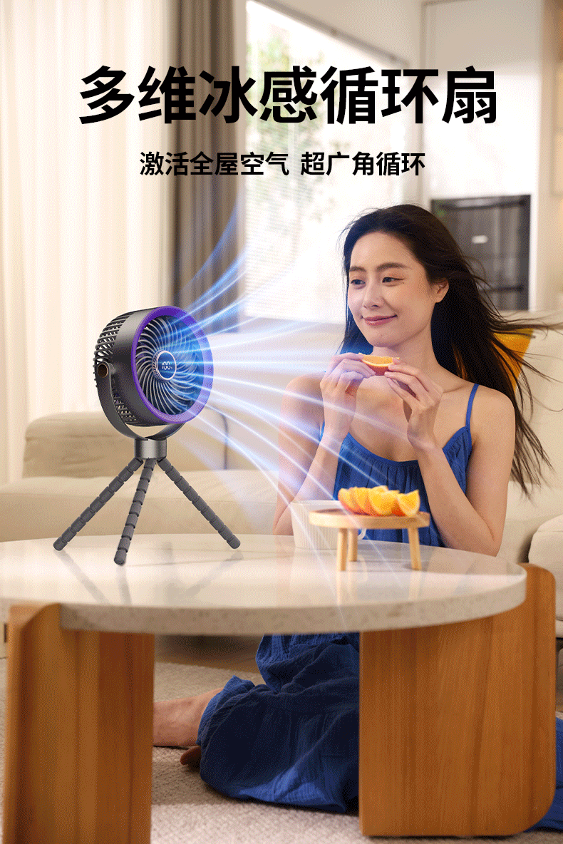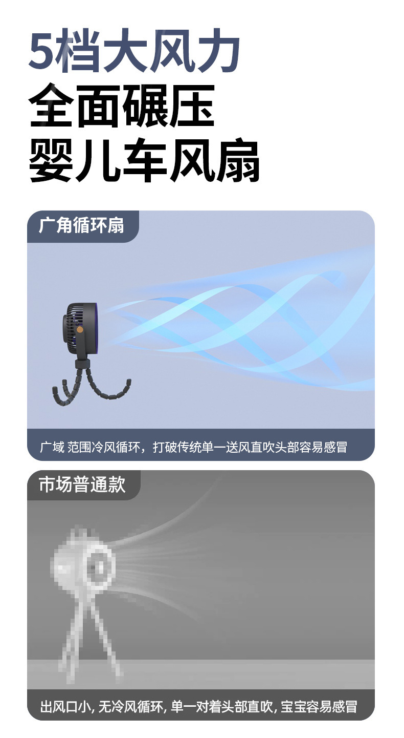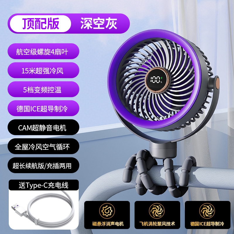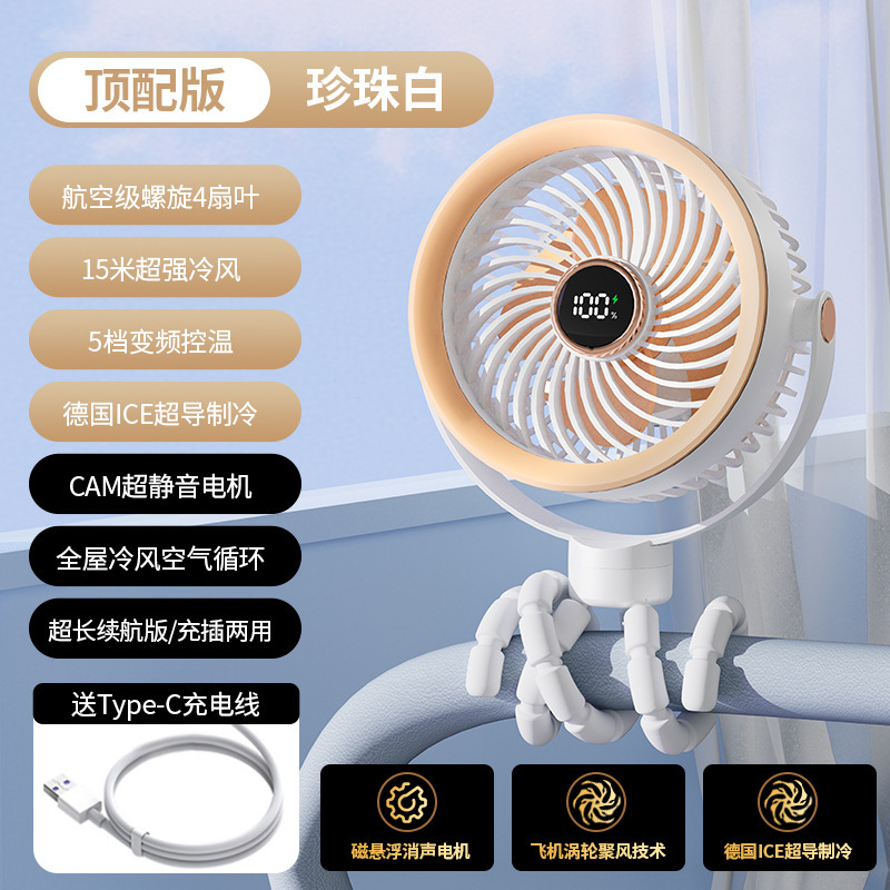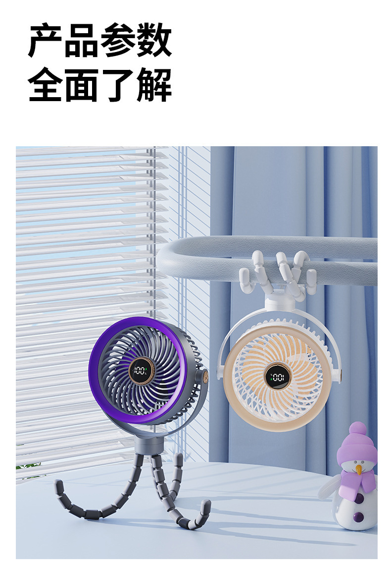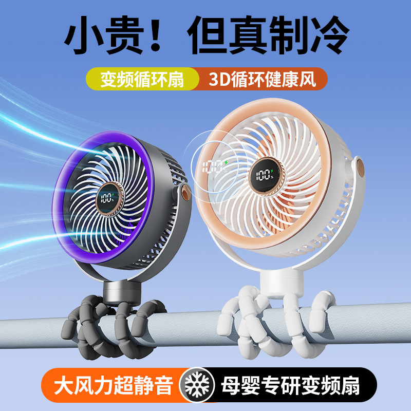 八爪鱼智能变频风扇充电长续航宿舍户外婴儿车风扇桌面小风扇便携