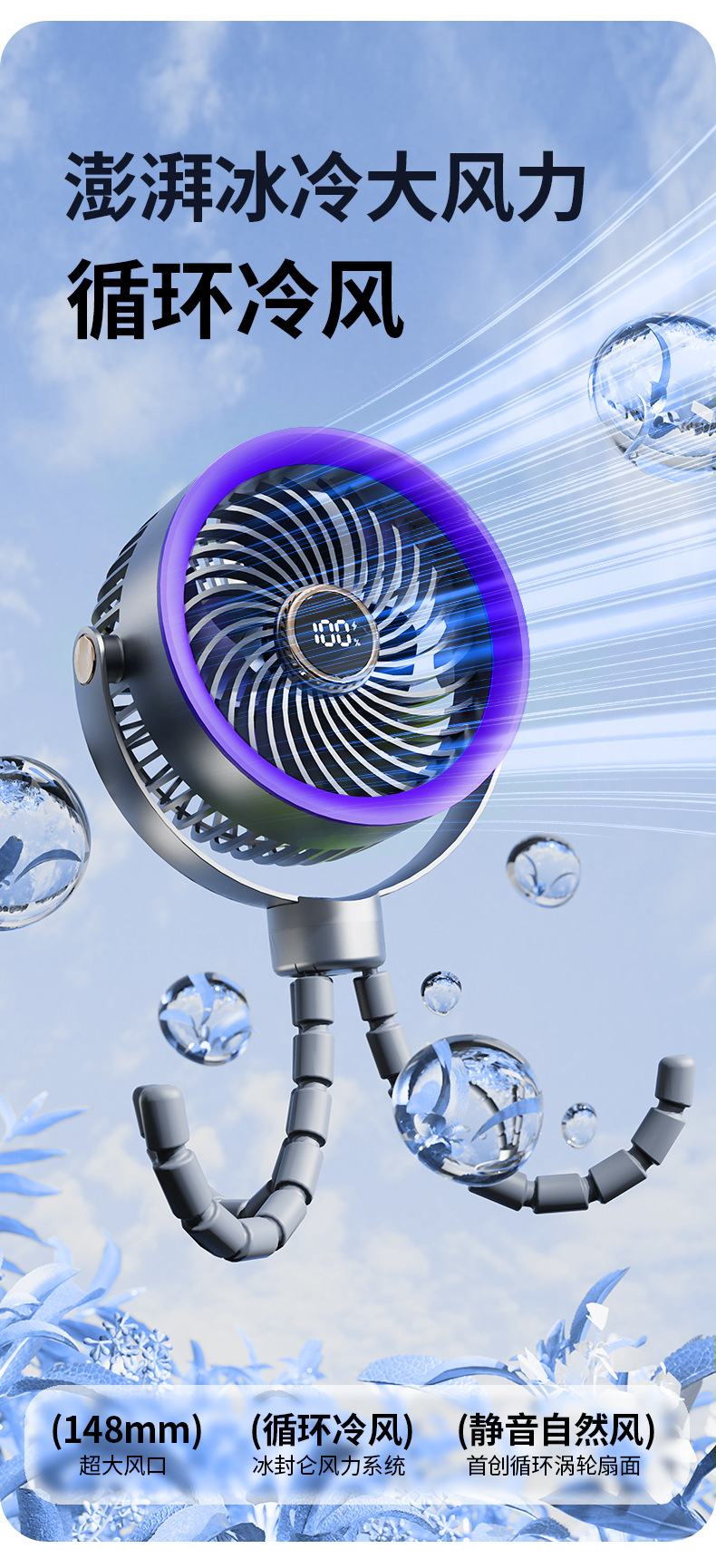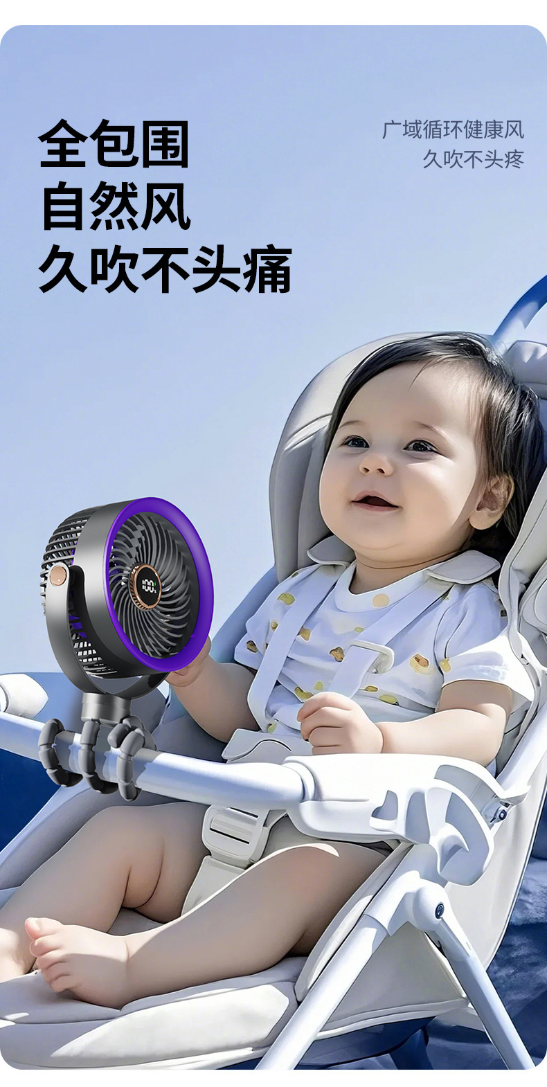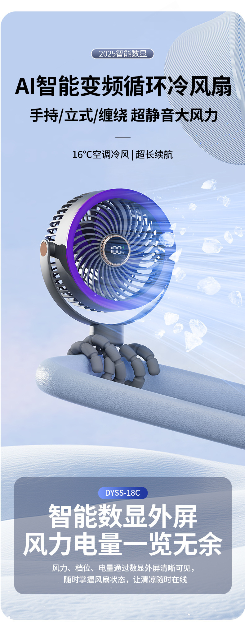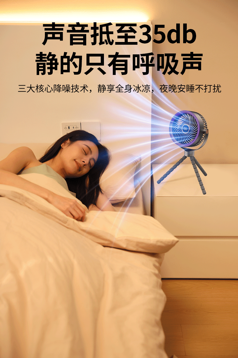 八爪鱼智能变频风扇充电长续航宿舍户外婴儿车风扇桌面小风扇便携