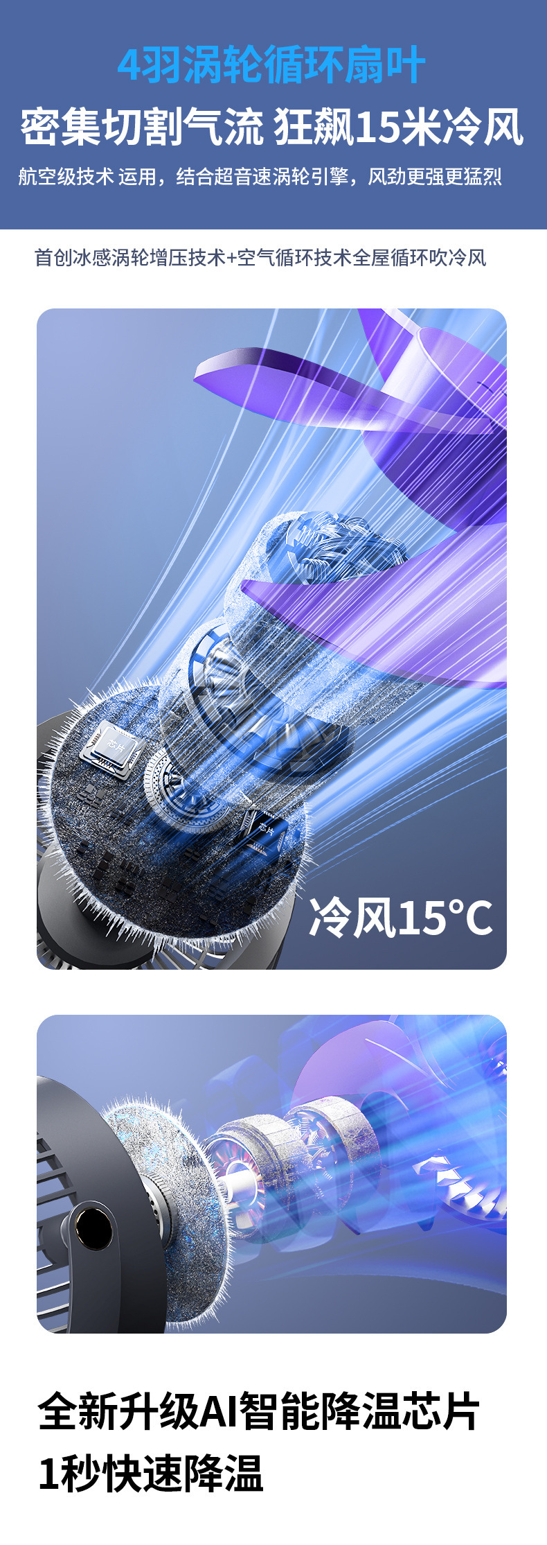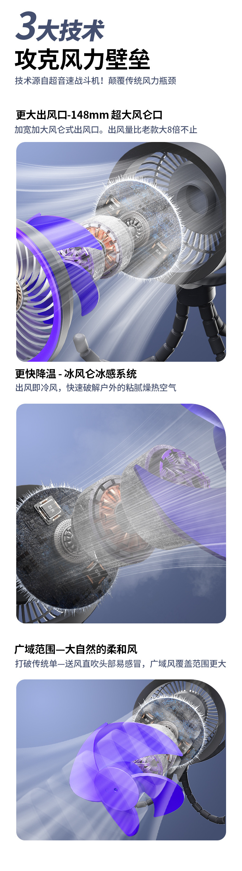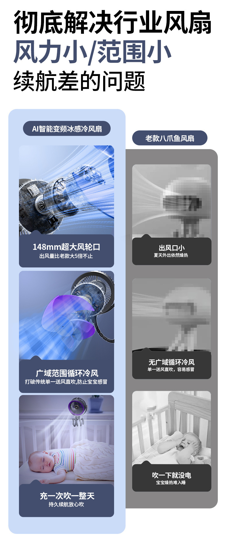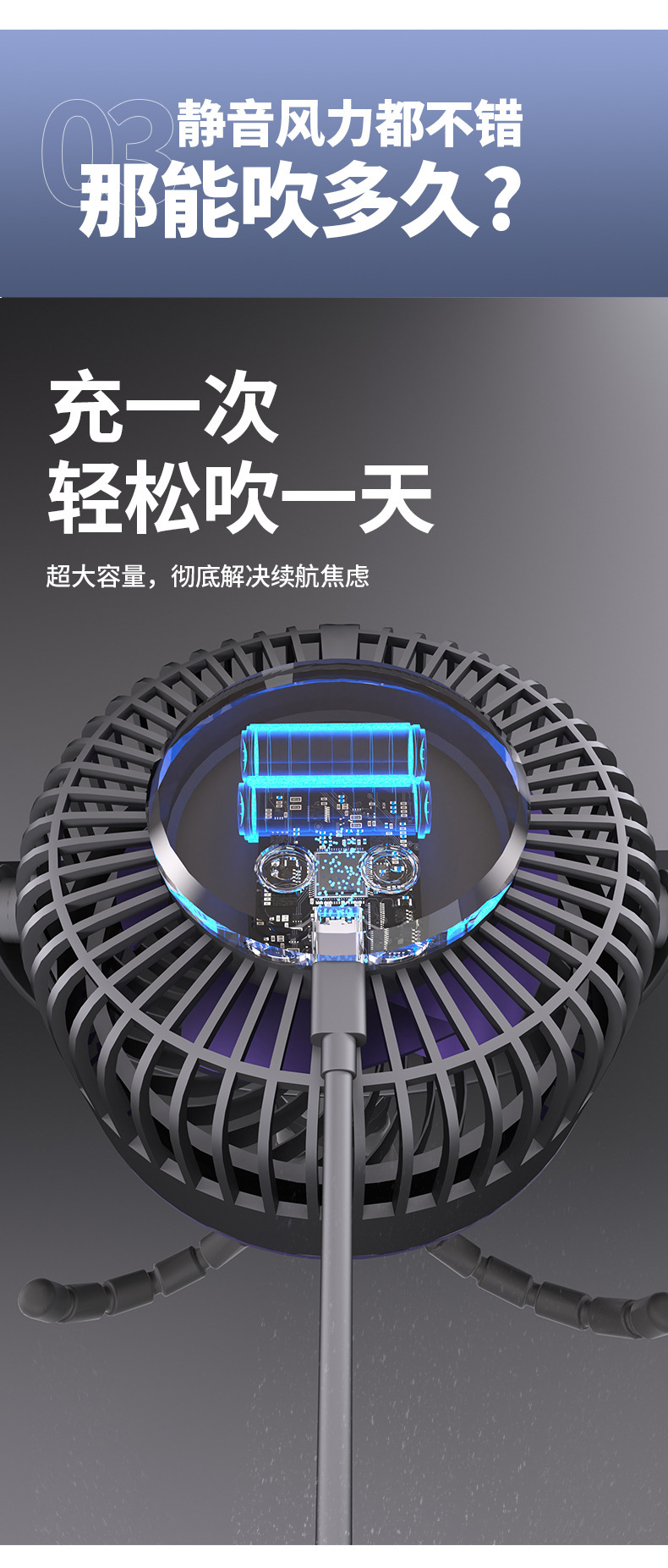八爪鱼智能变频风扇充电长续航宿舍户外婴儿车风扇桌面小风扇便携
