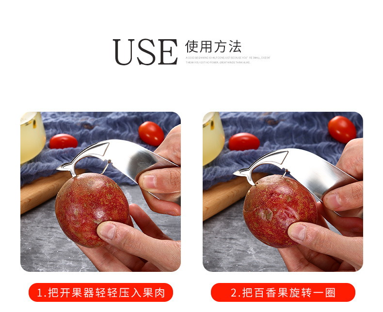 鸿俊达304不锈钢百香果开果器创意造型厨房工具水果开壳器开果器