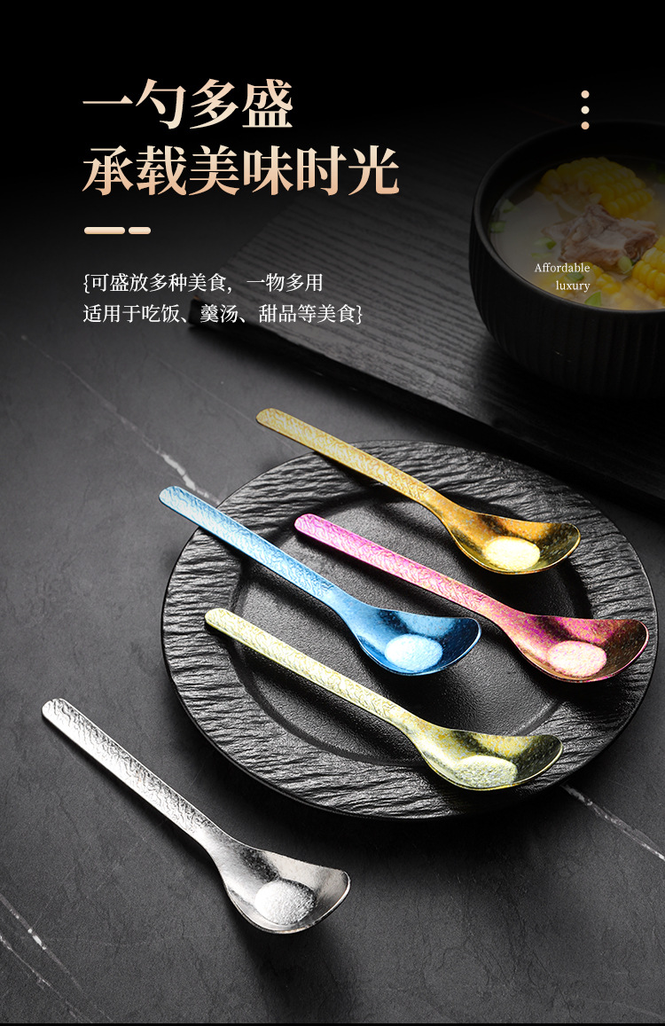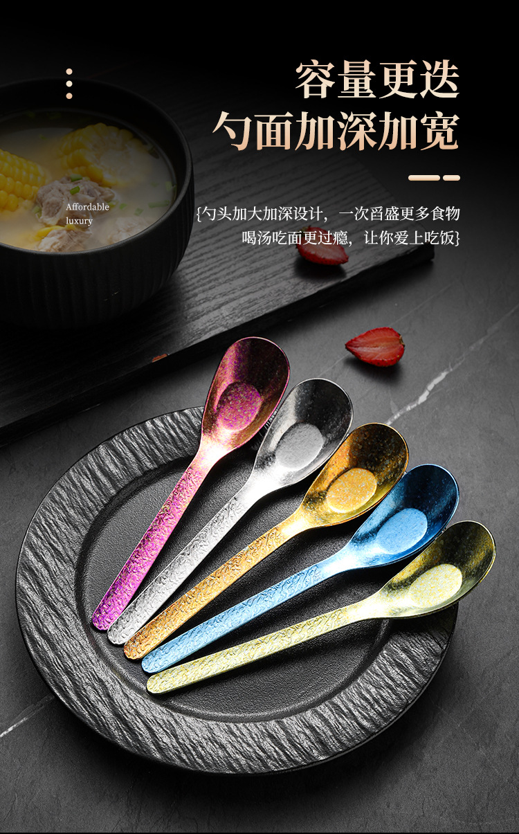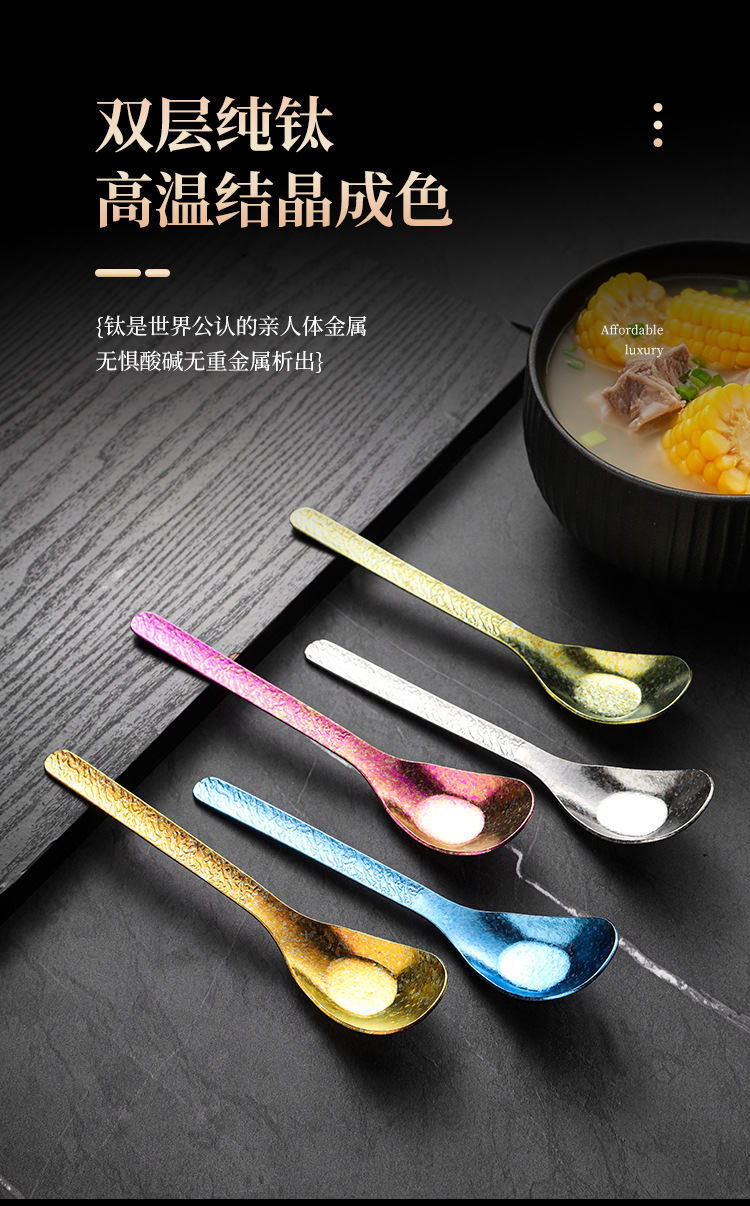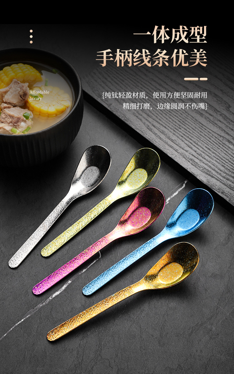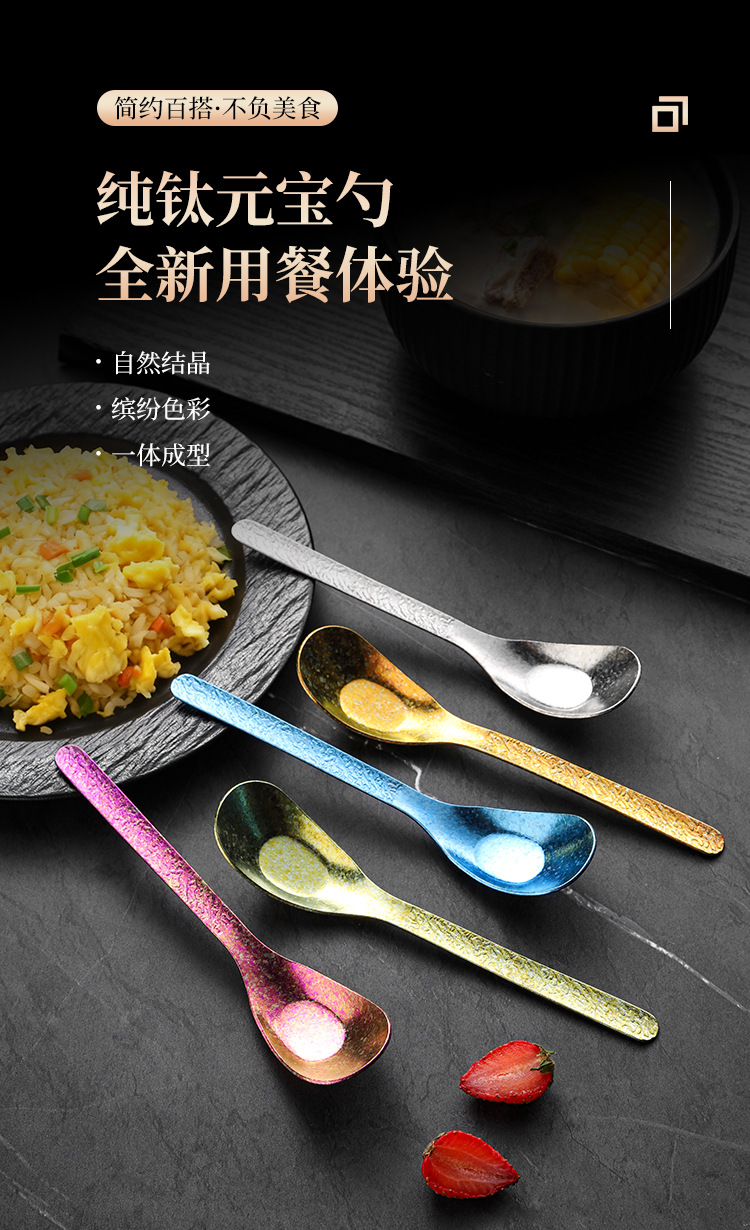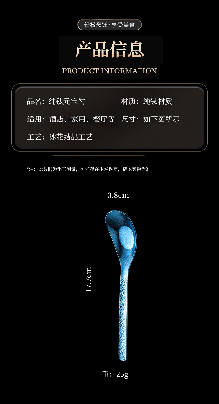 鸿俊达纯钛勺子结晶纯钛元宝勺锤纹冰花勺家用加深汤勺长柄平底勺