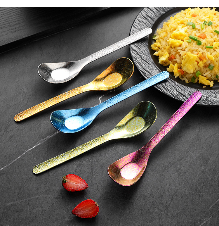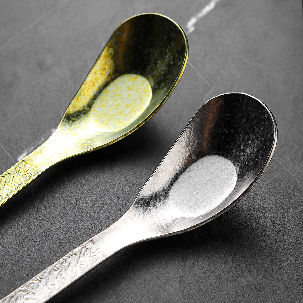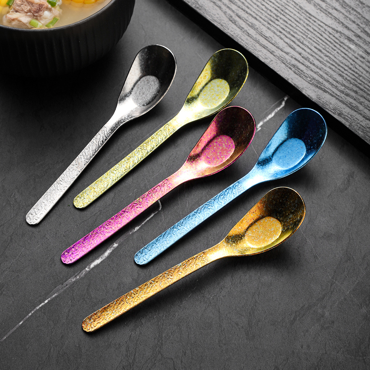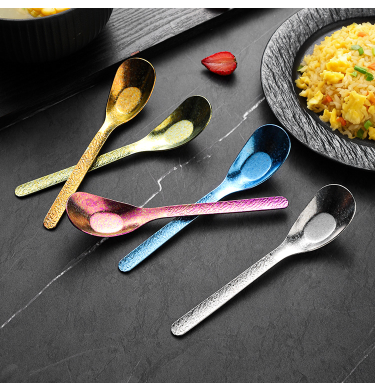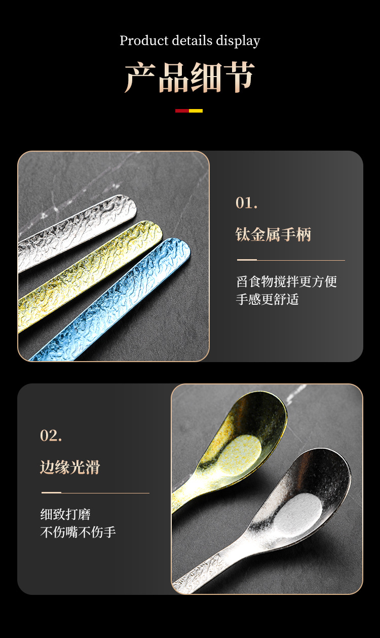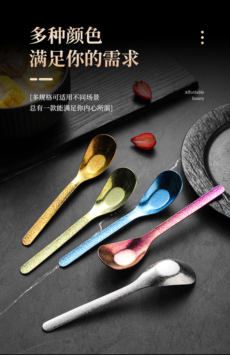 鸿俊达纯钛勺子结晶纯钛元宝勺锤纹冰花勺家用加深汤勺长柄平底勺