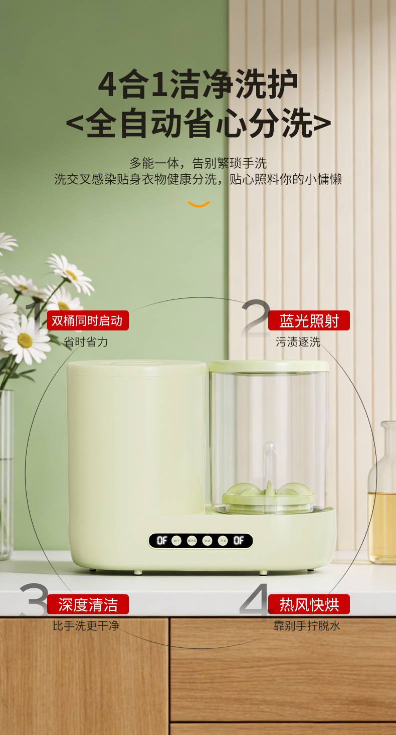 迷你内衣洗衣机小型内裤清洗机全自动洗脱烘一体高温杀菌洗袜子机