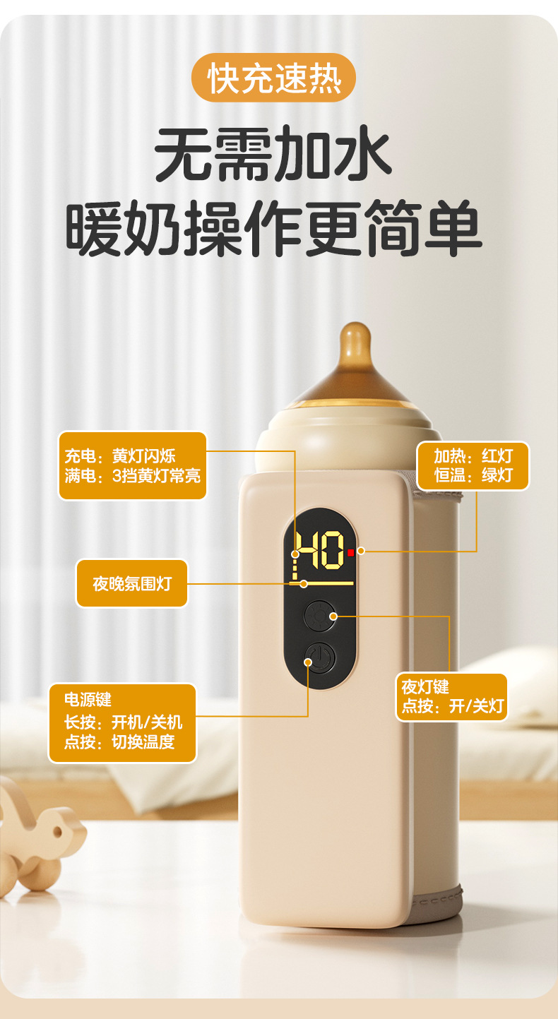 婴儿奶瓶保温套蓄电款外出便携无水加热无线恒温充电暖奶器加热器