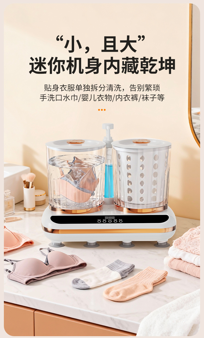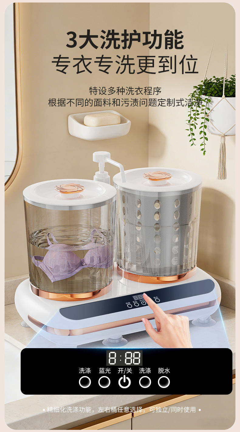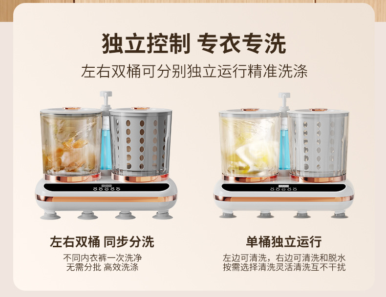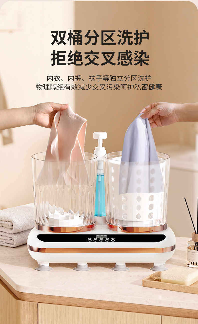 新款双杯洗脱一体内衣洗衣机迷你内裤专用洗袜子机全自动小型清洗