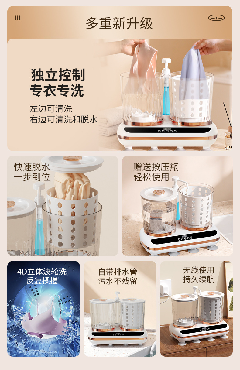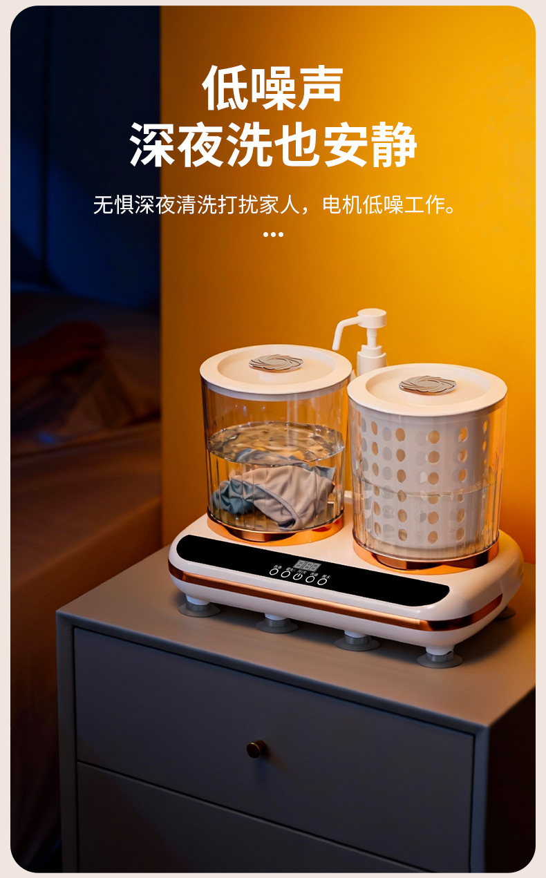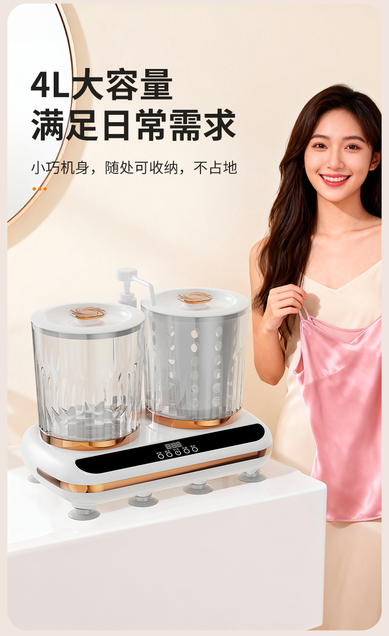 新款双杯洗脱一体内衣洗衣机迷你内裤专用洗袜子机全自动小型清洗
