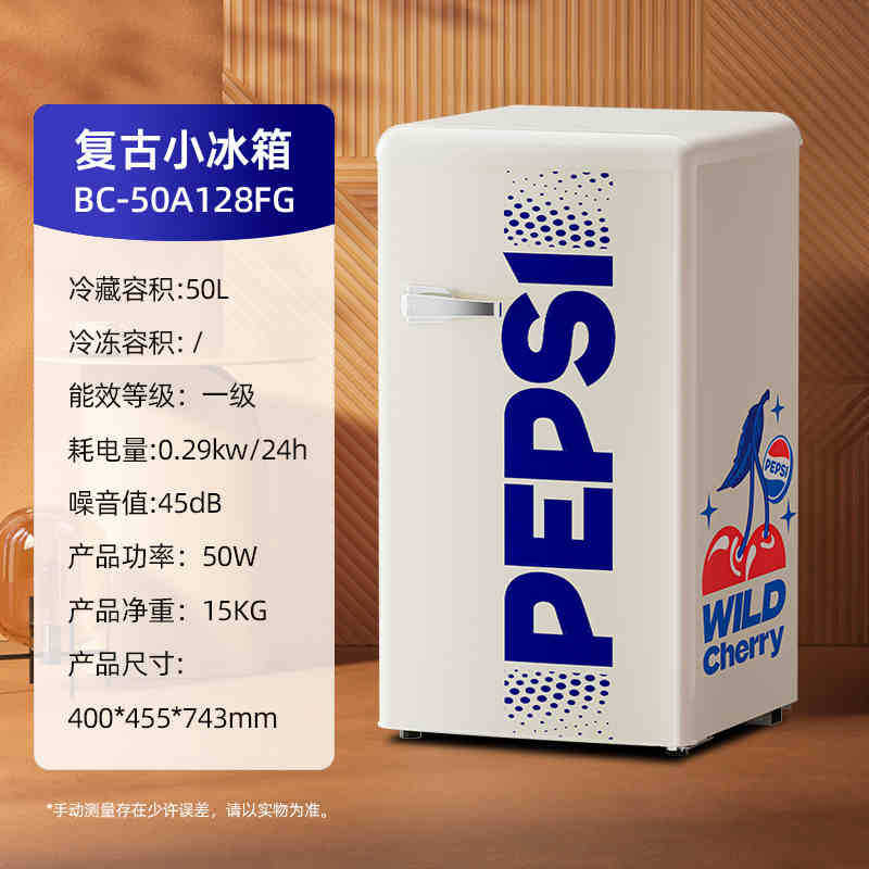百事小冰箱50升家用小型网红美式复古宿舍迷你单门电冰箱