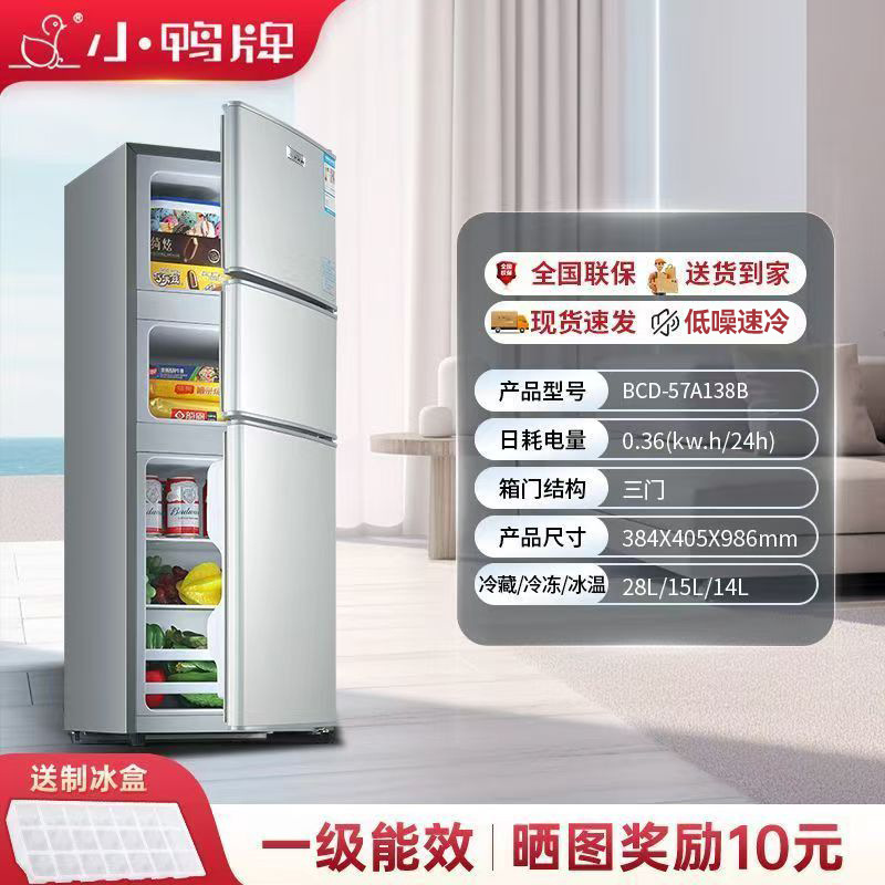 小鸭牌57升小冰箱家用小型租房冷藏冷冻宿舍三门迷你电冰箱