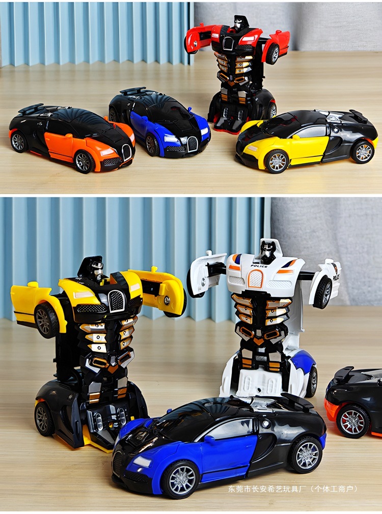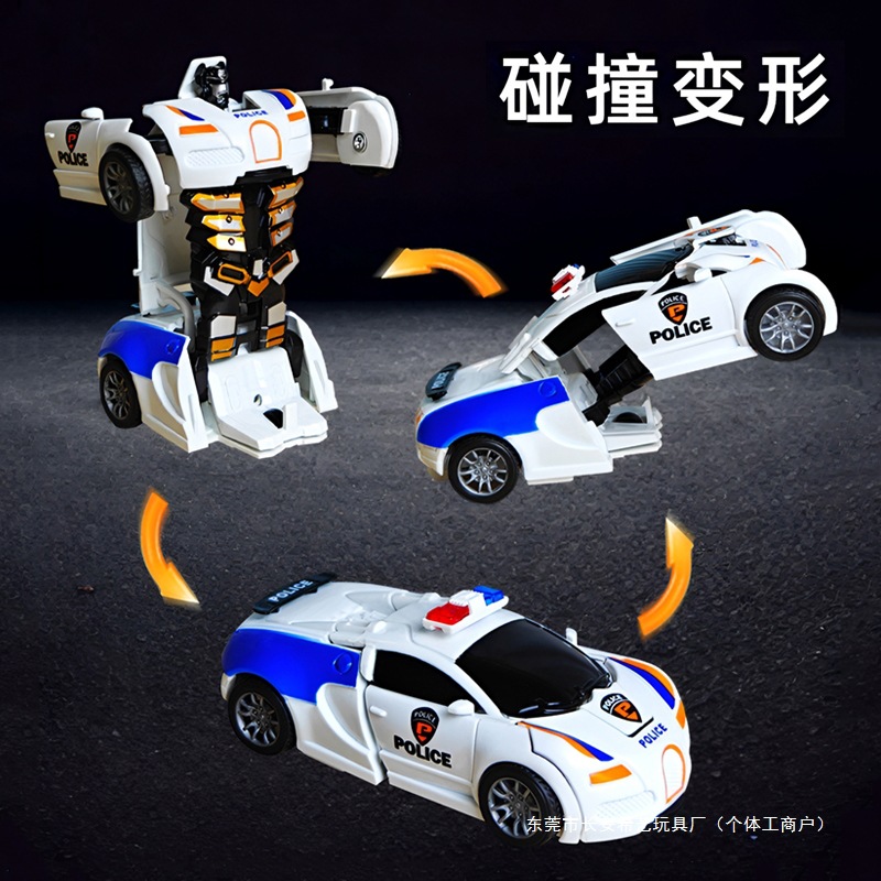 儿童玩具车男孩一键变形玩具车碰撞小汽车机器人惯性撞击警车赛车