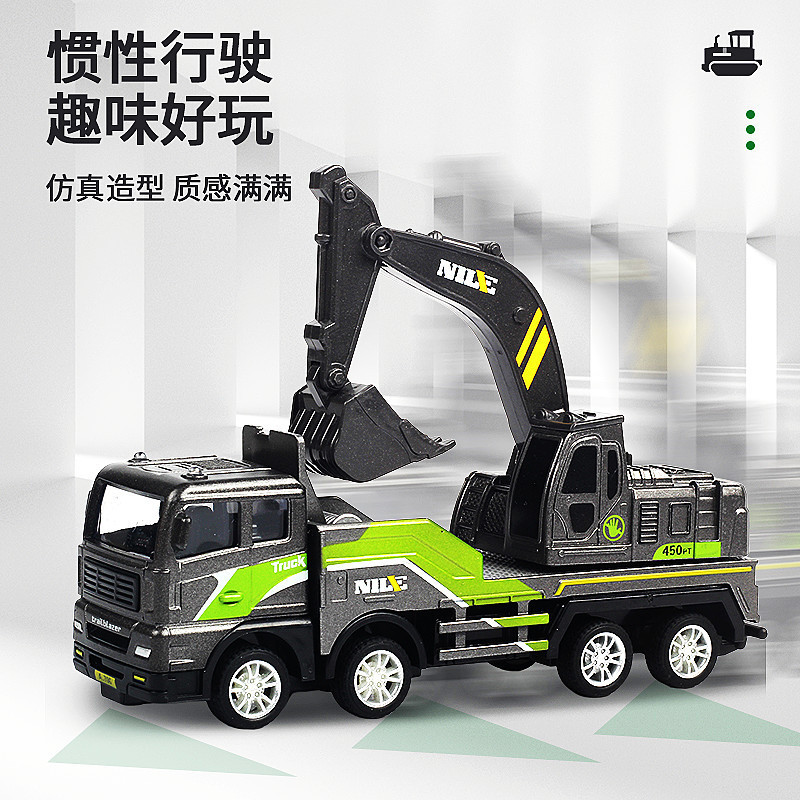 儿童合金惯性工程车挖掘机挖土机吊车男孩玩具车模型玩具汽车套装