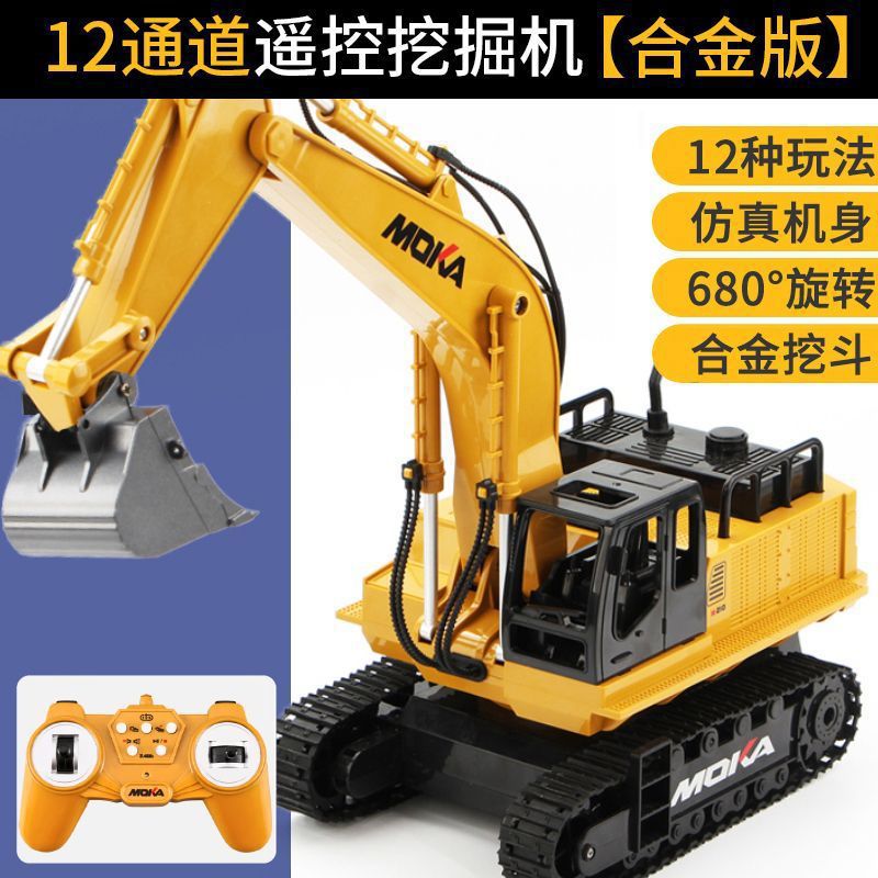 儿童大号合金遥控挖掘机玩具车男孩仿真电动挖土机汽车工程车玩具