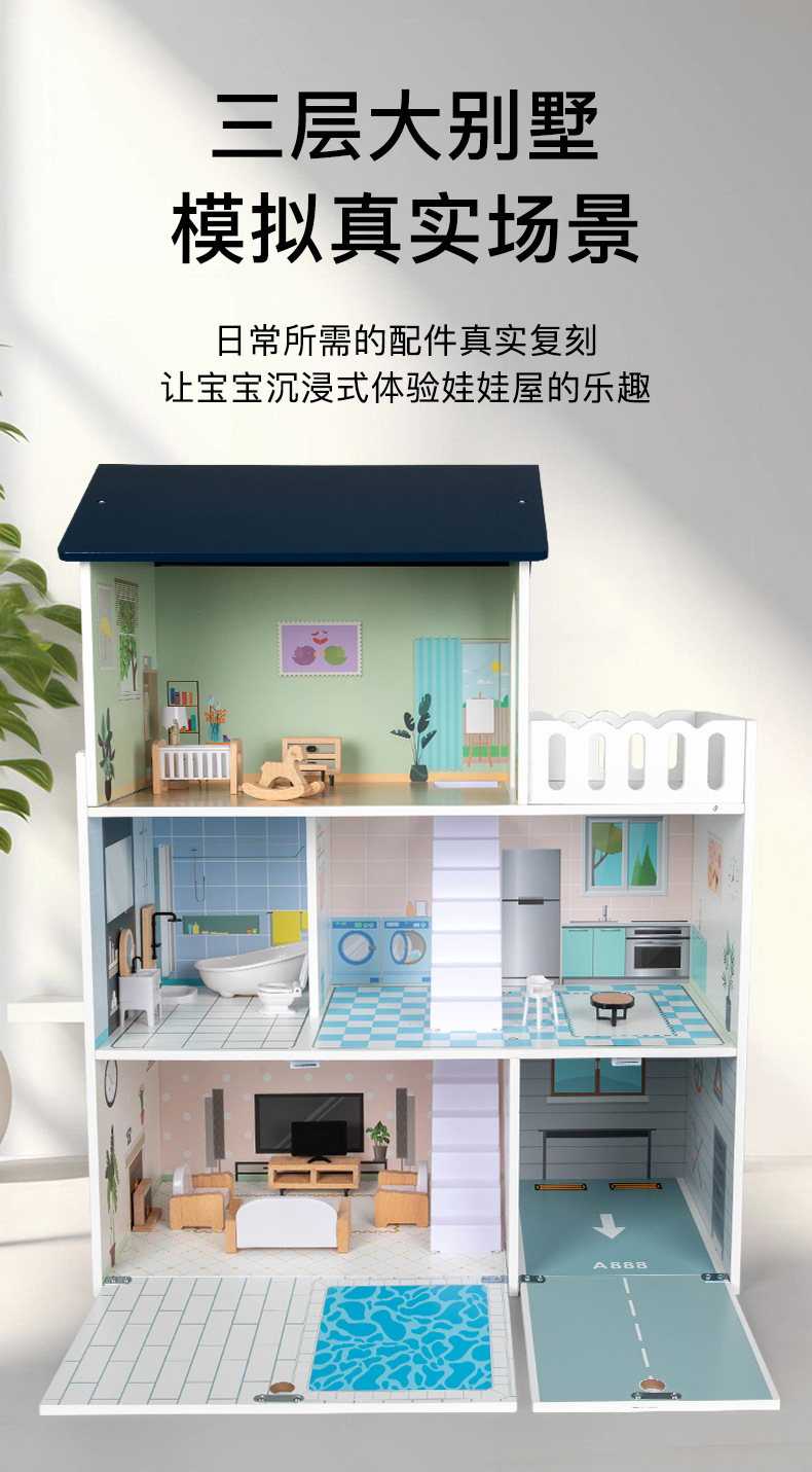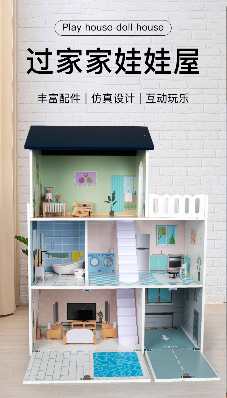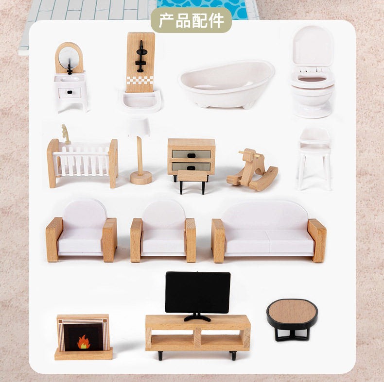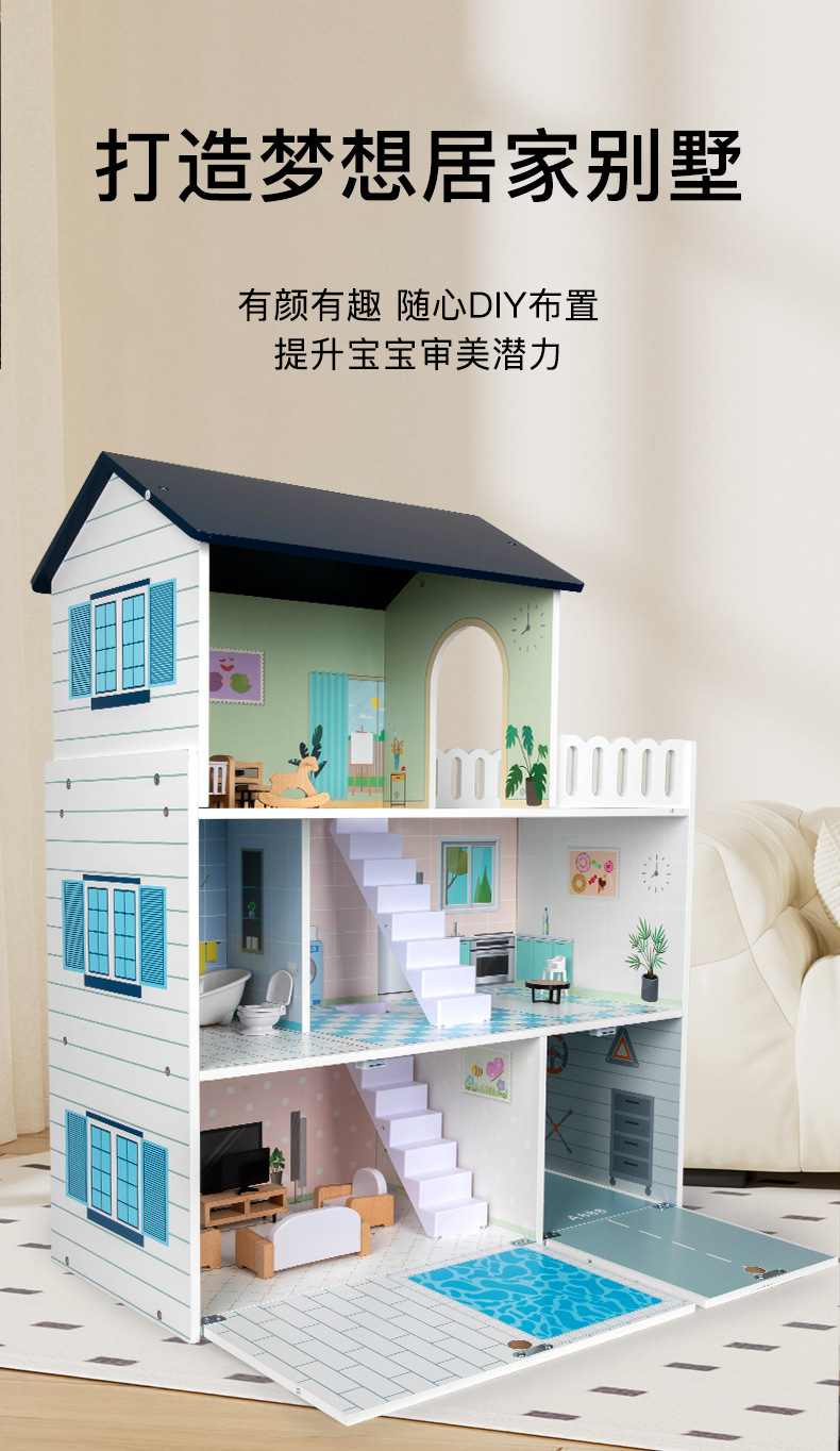 木制拆装娃娃屋别墅大型公主房别墅仿真过家家拼装DIY玩具房模型
