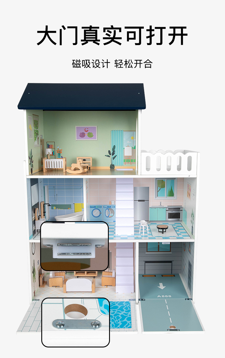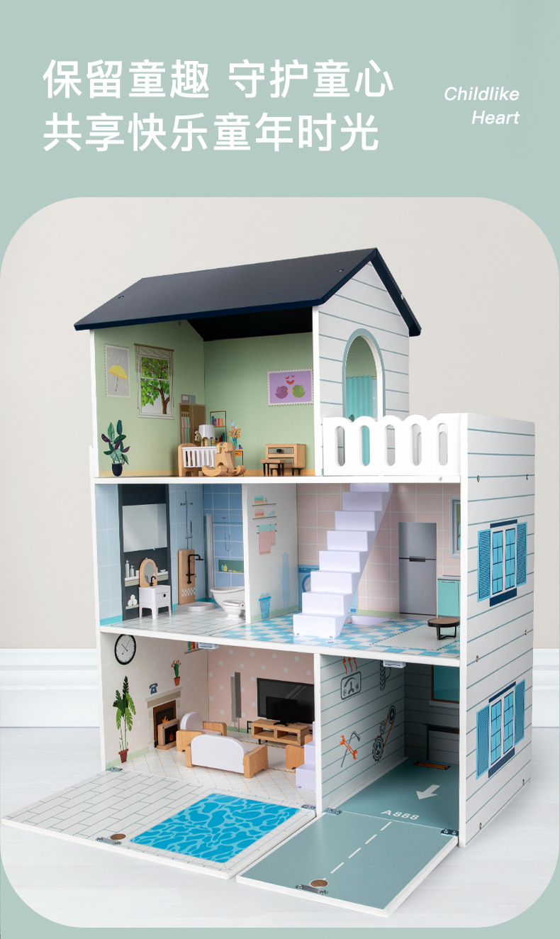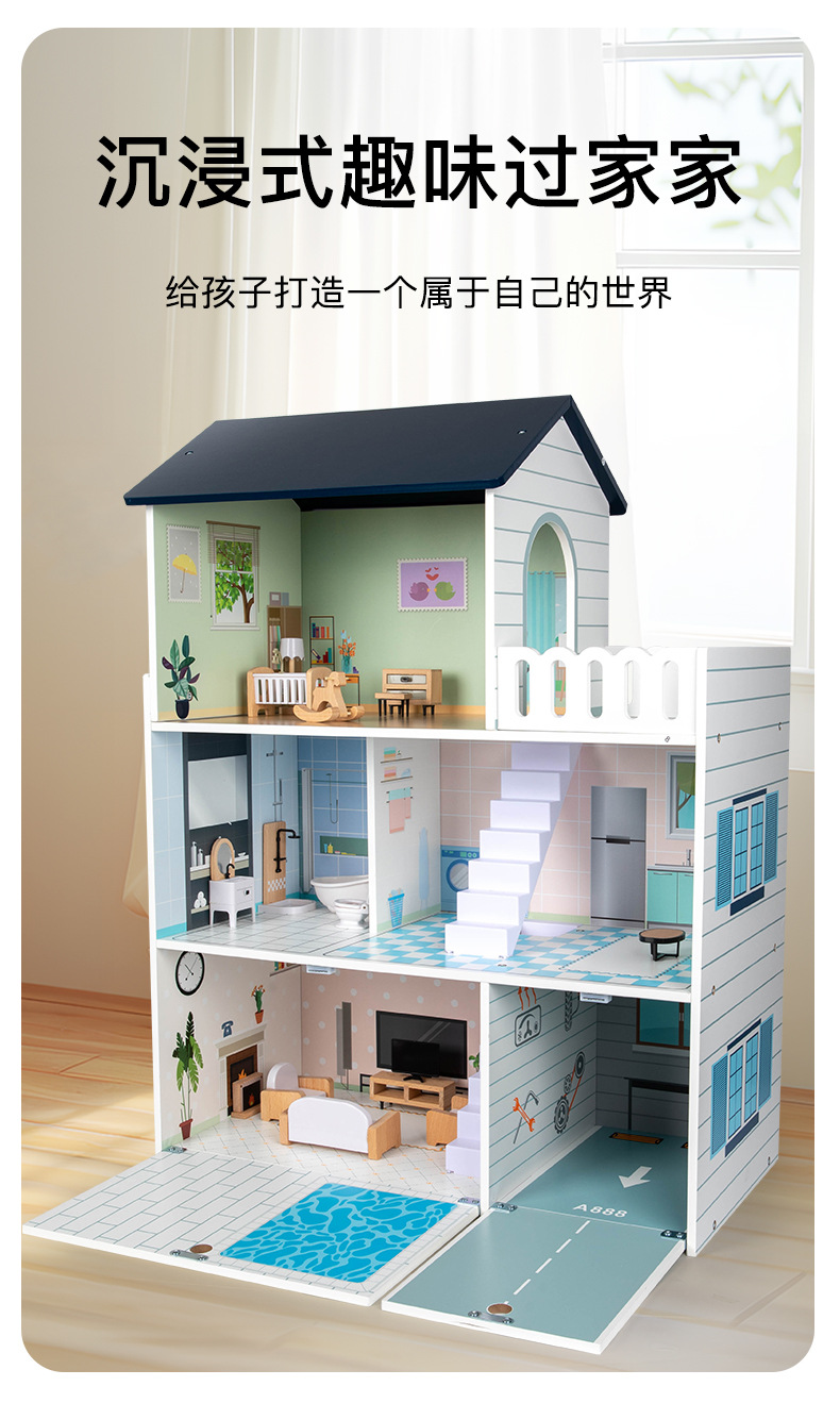 木制拆装娃娃屋别墅大型公主房别墅仿真过家家拼装DIY玩具房模型