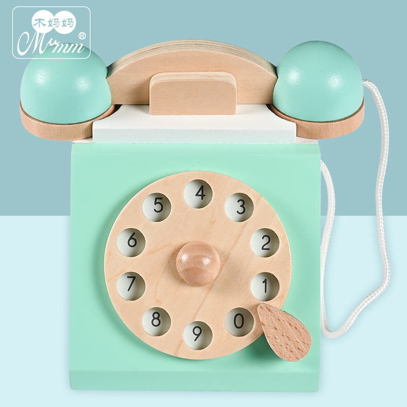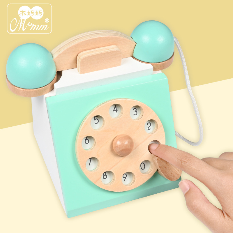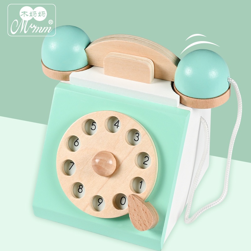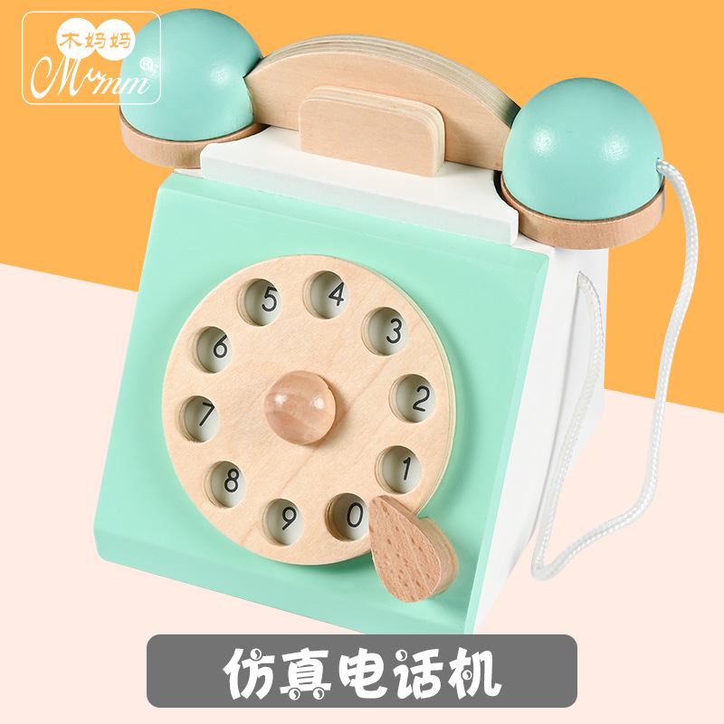 厂家直销儿童木制过家家仿真复古电话机玩具亲子互动趣味益智早教