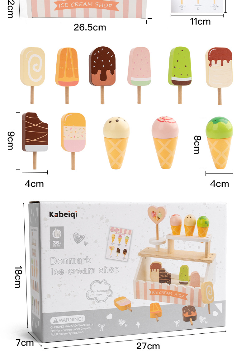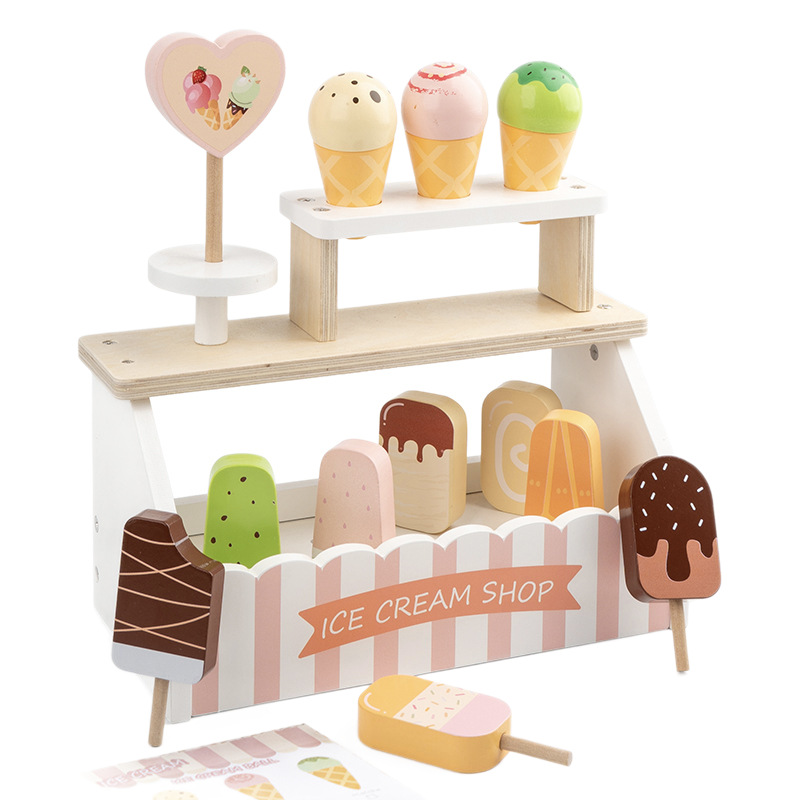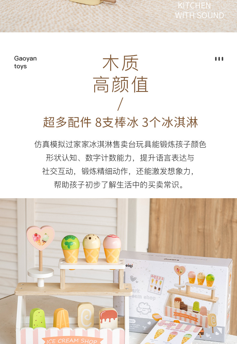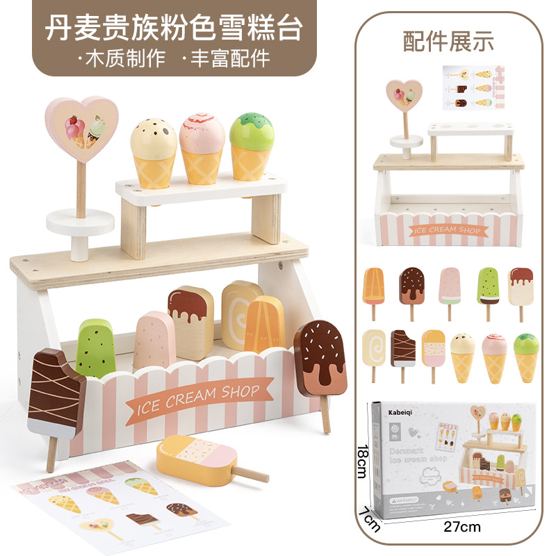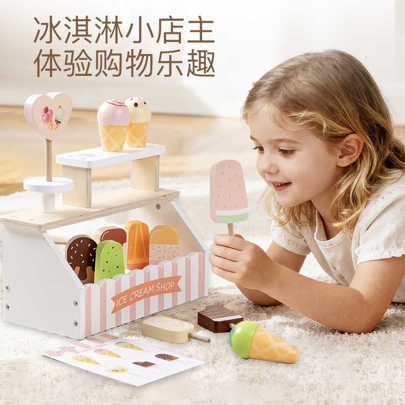 儿童美式冰淇淋架雪糕台过家家售卖小摊棒冰组合木质玩具套装女孩
