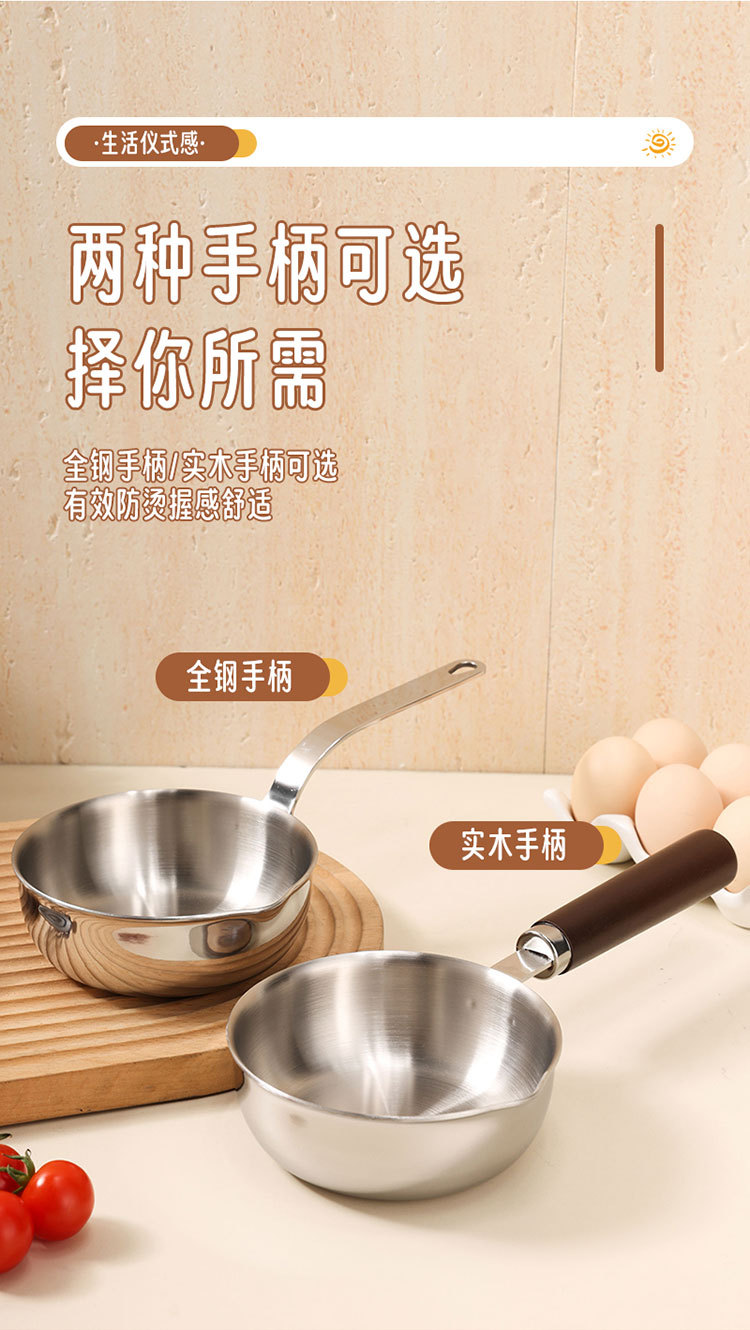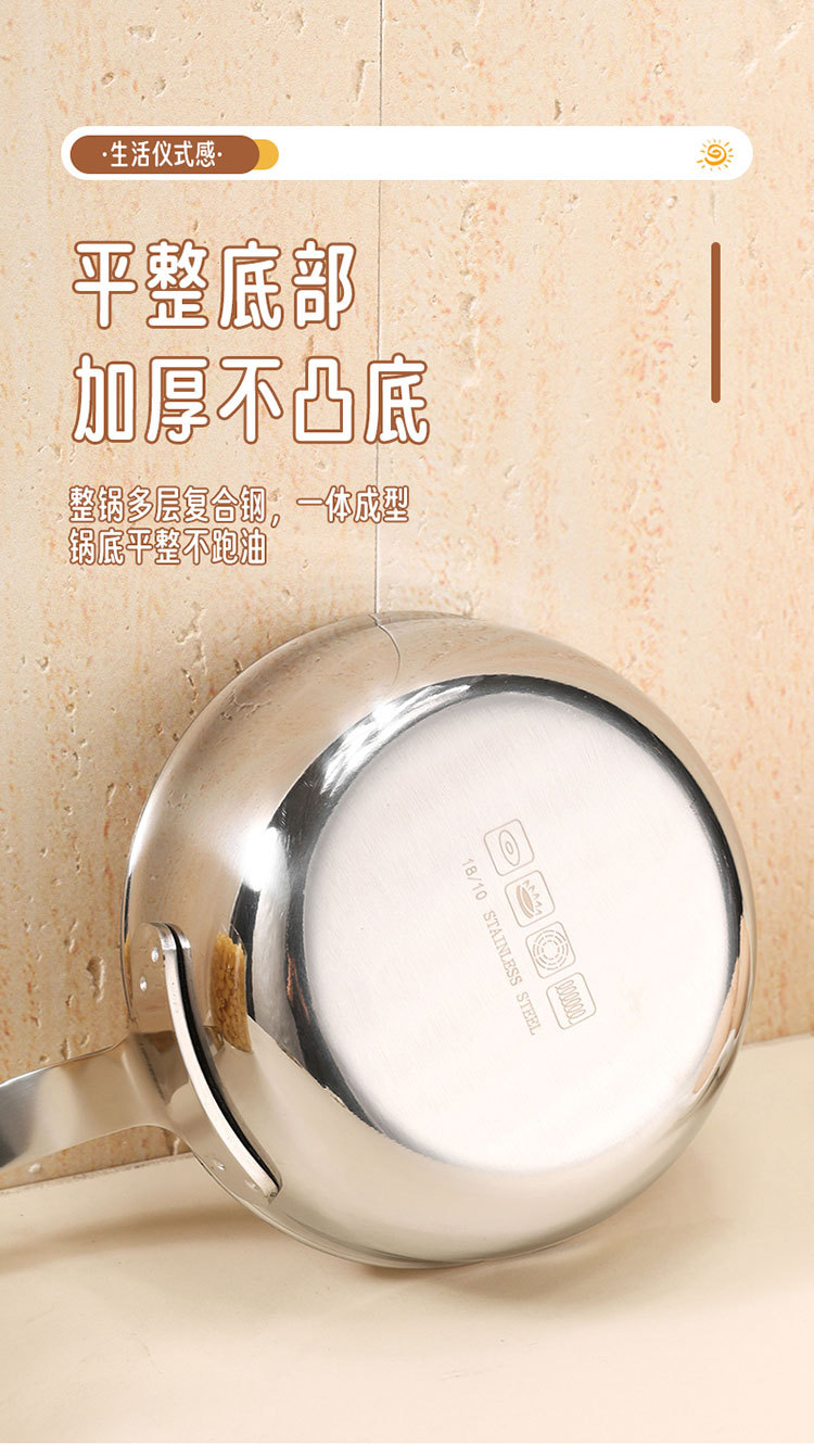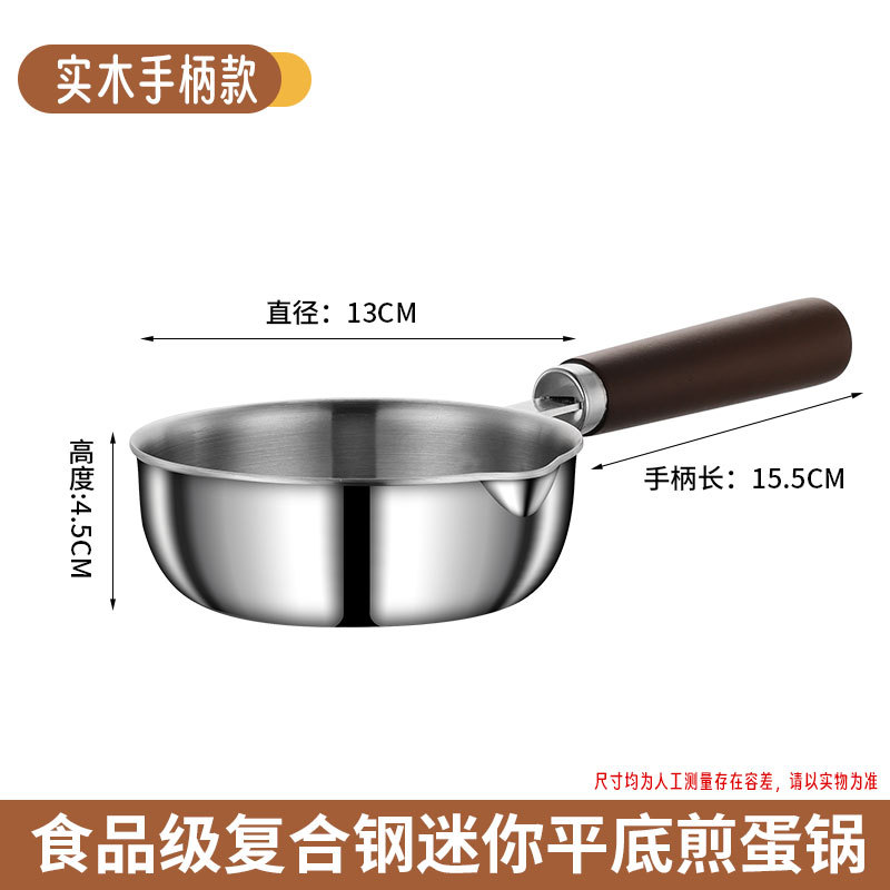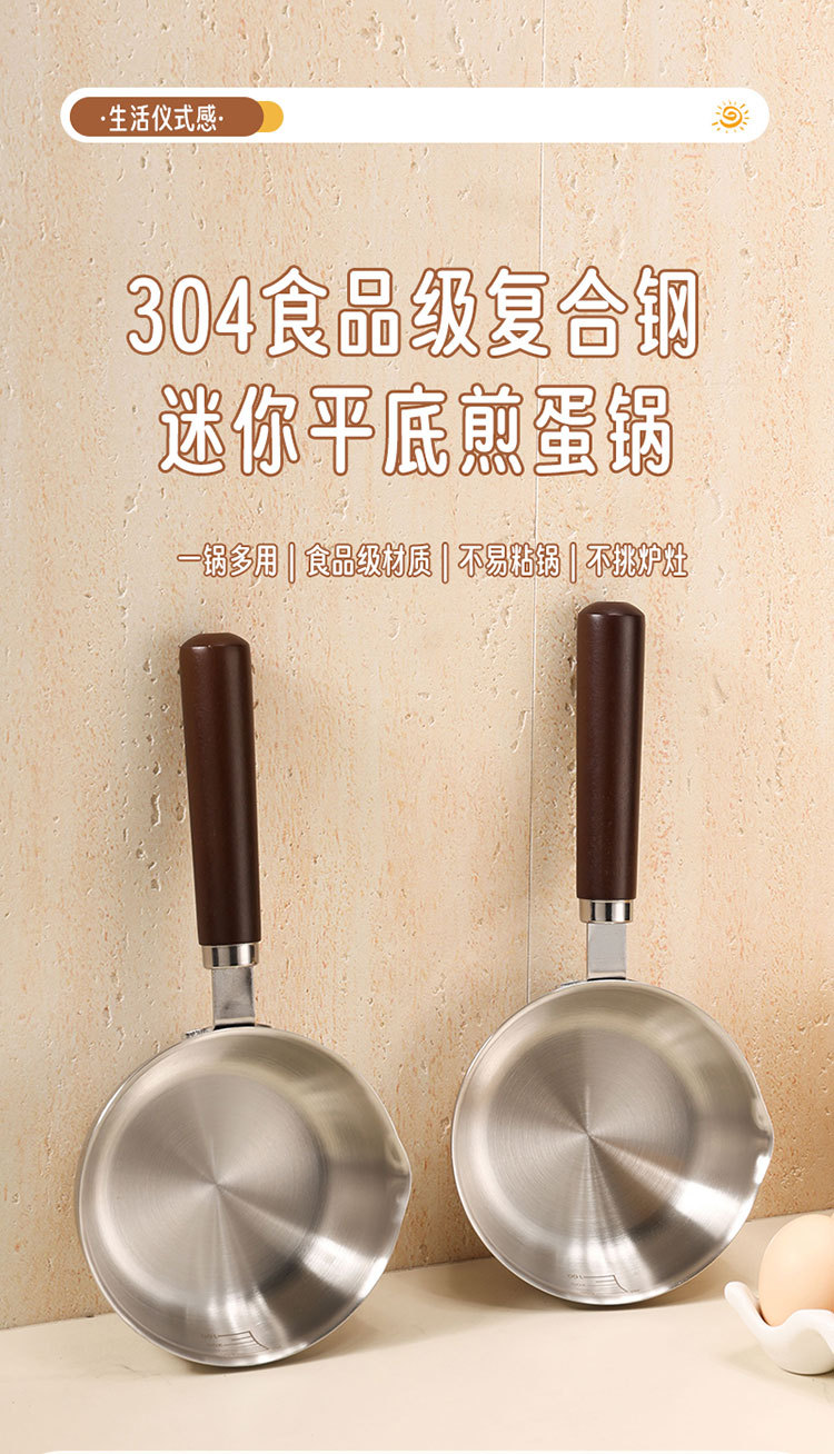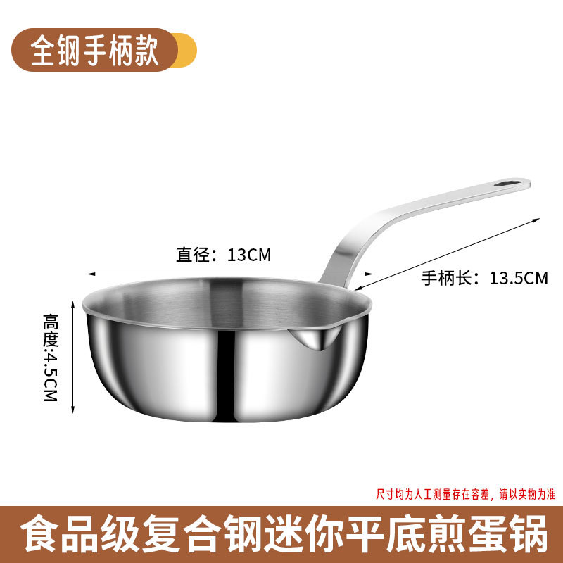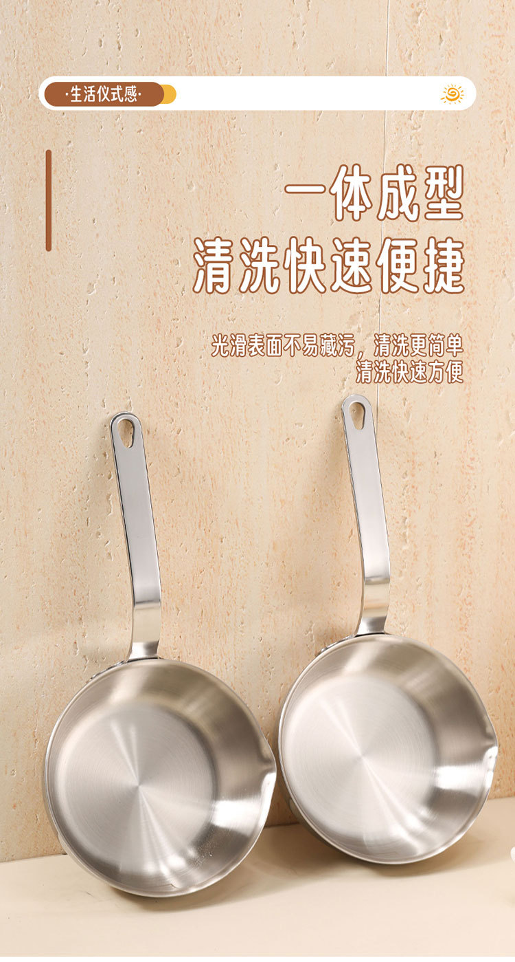 食品级不锈钢304迷你煎锅牛排煎锅家用无涂层辅食煎蛋锅泼油小锅