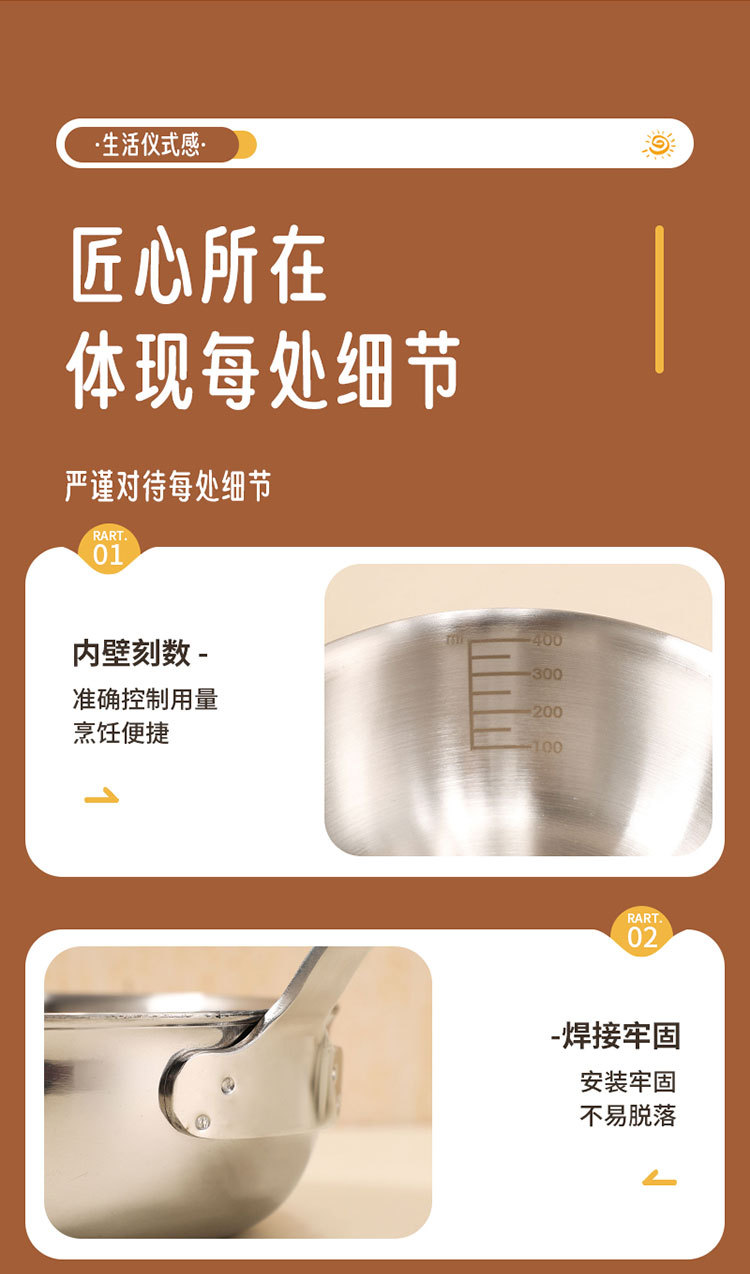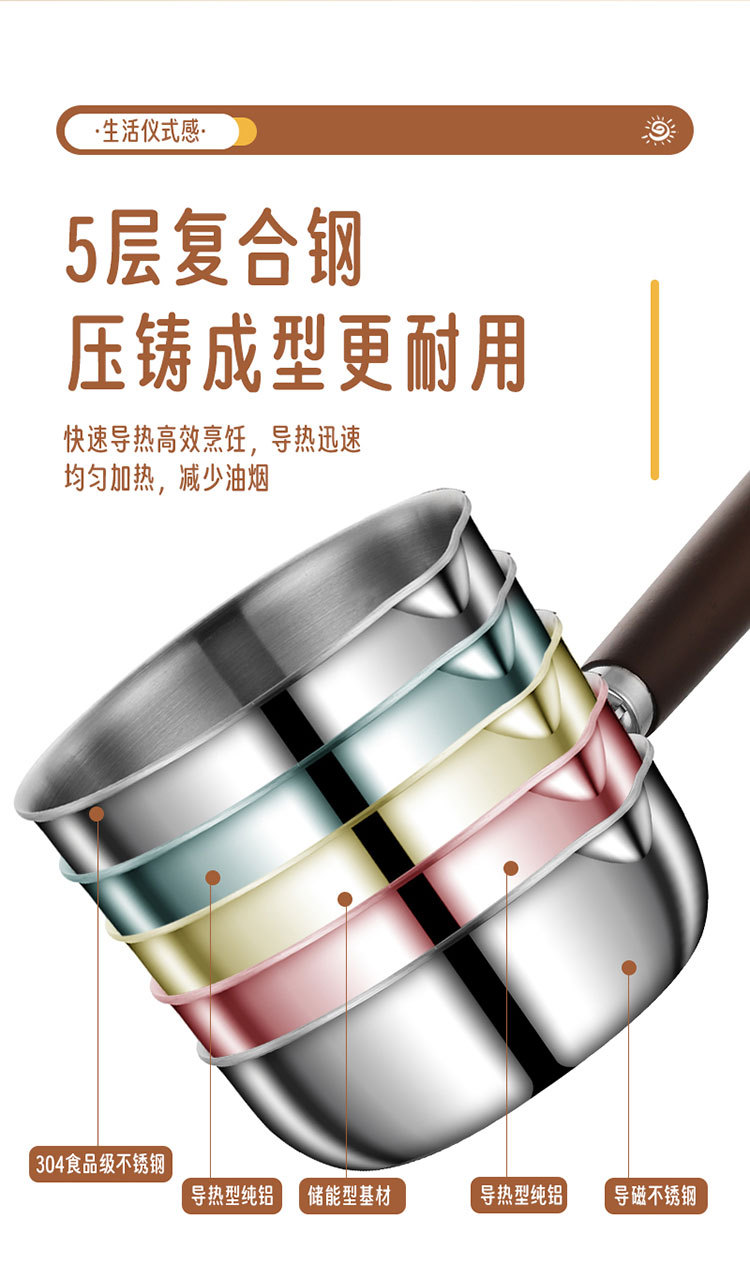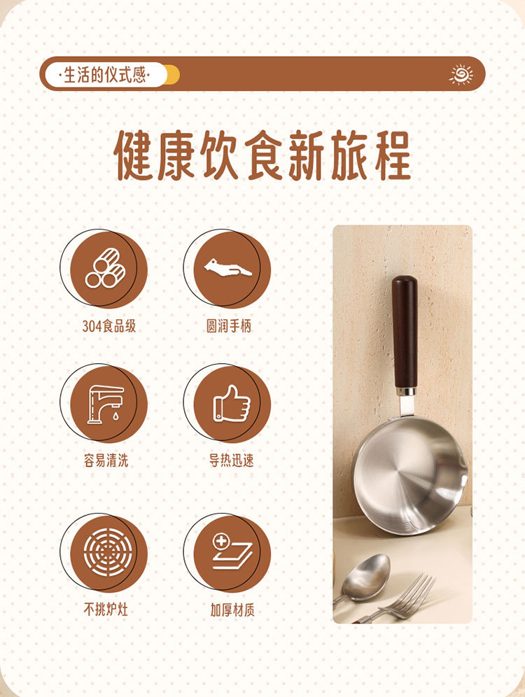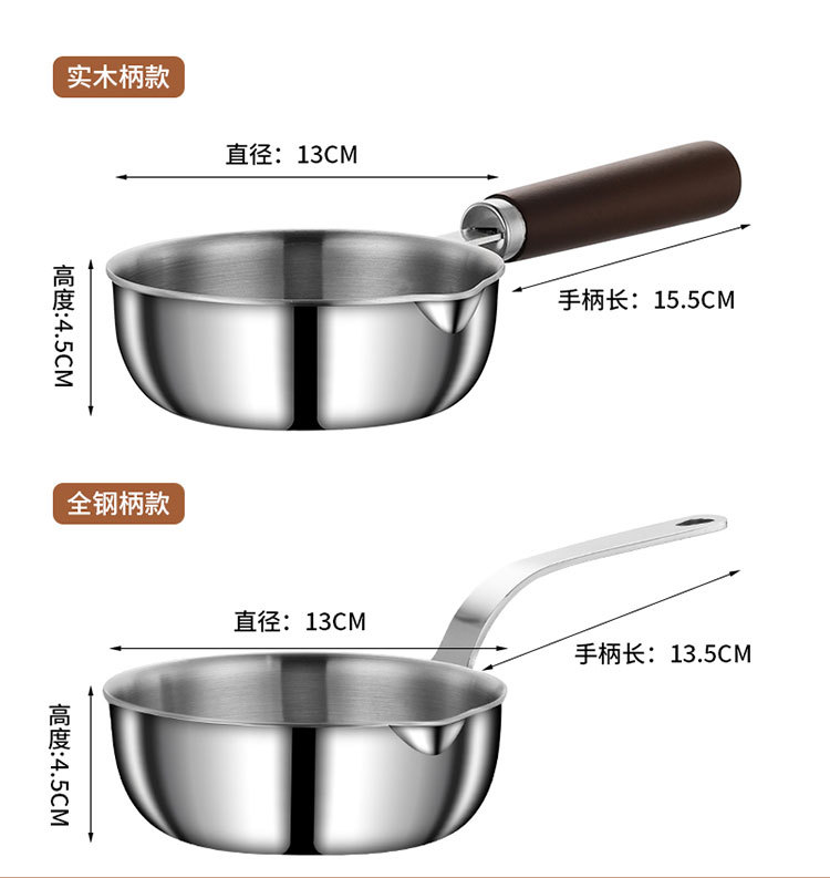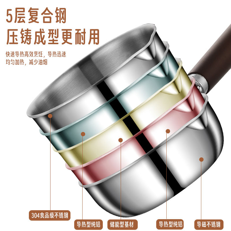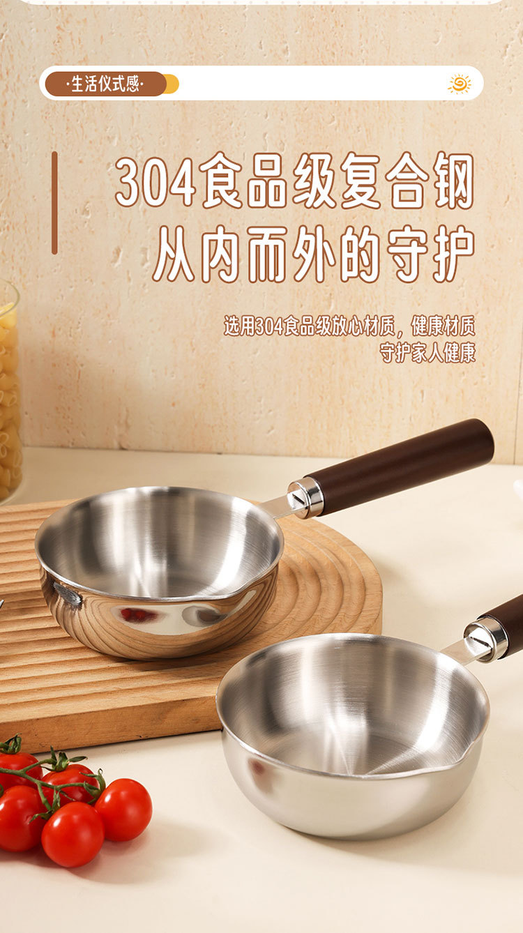 食品级不锈钢304迷你煎锅牛排煎锅家用无涂层辅食煎蛋锅泼油小锅