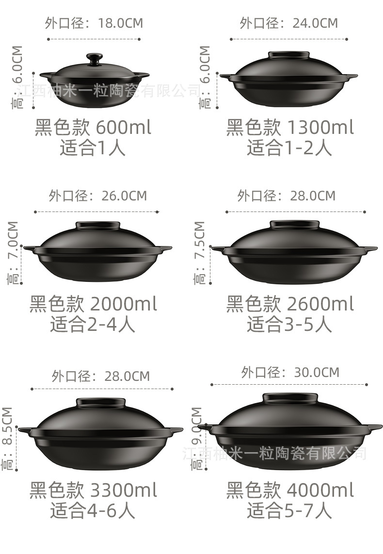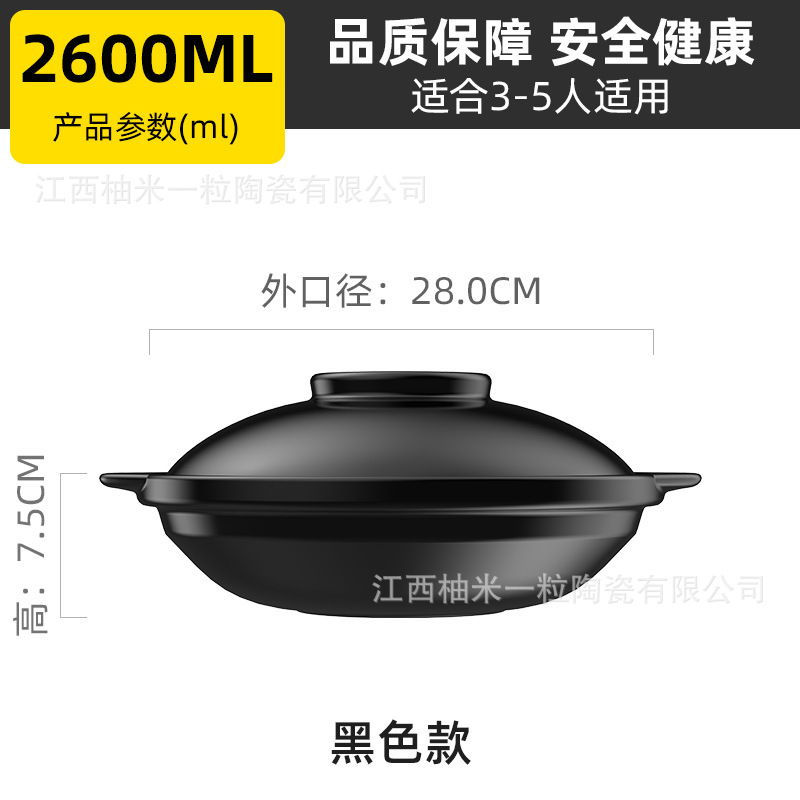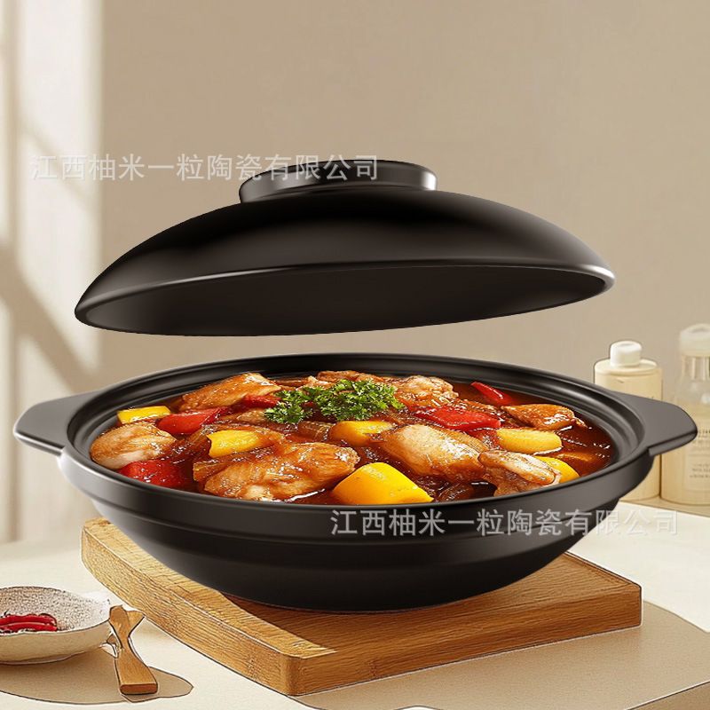 浅锅家用大容量陶瓷砂锅耐高温煲炖菜商用黄焖鸡煲仔饭锅燃气灶