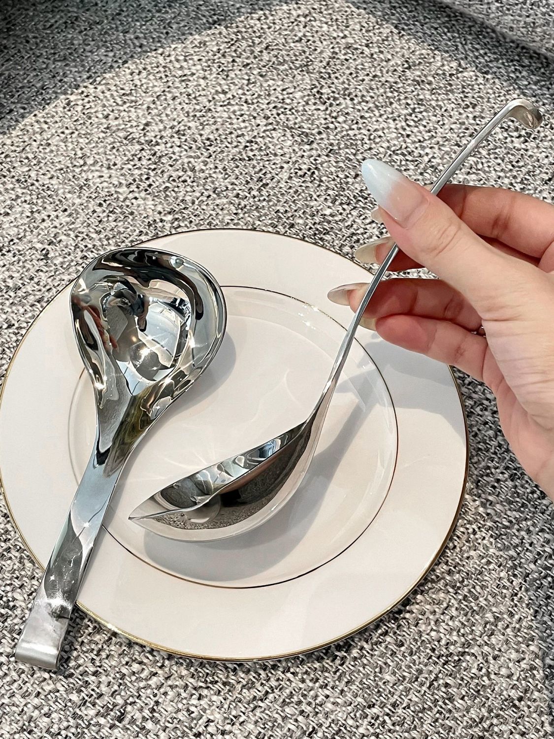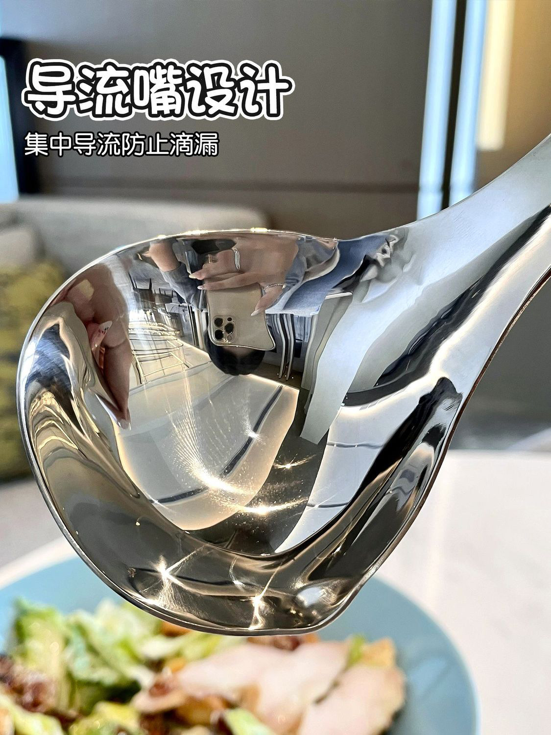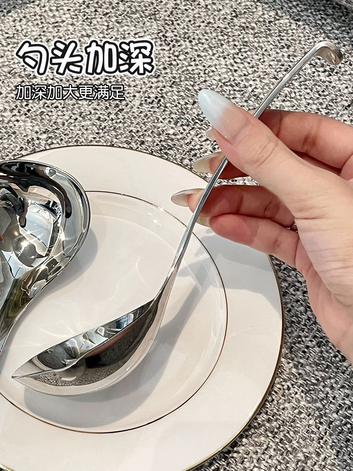 不锈钢汤勺创意加深大头勺家用厨房盛汤勺带挂钩火锅勺大号喝汤勺