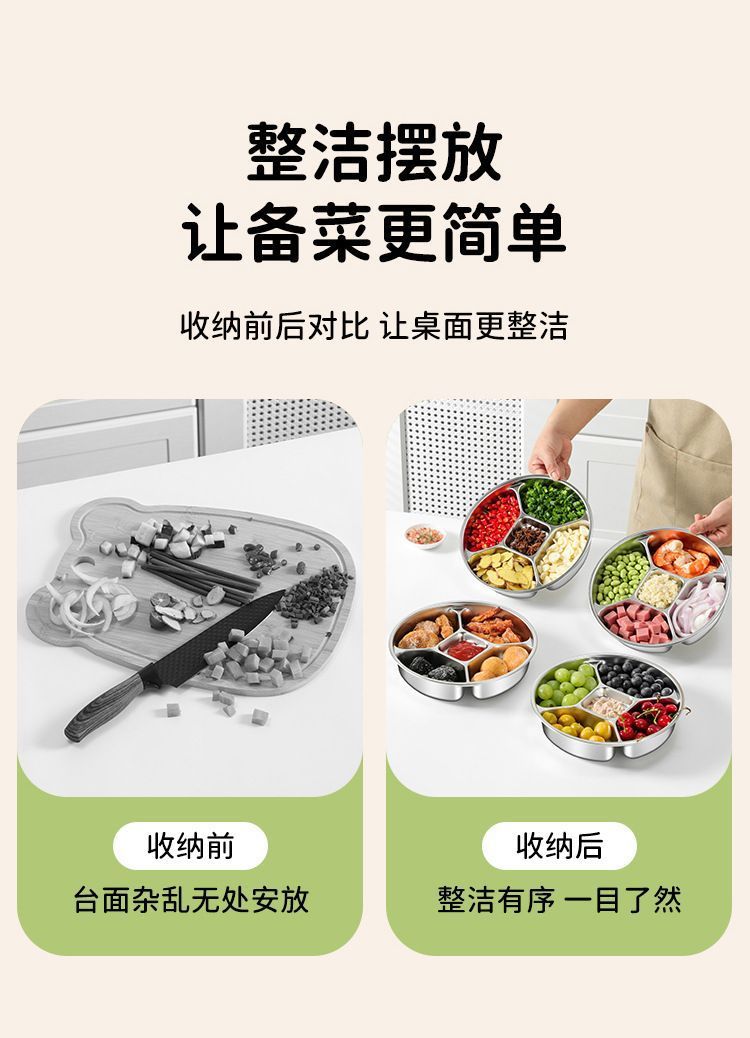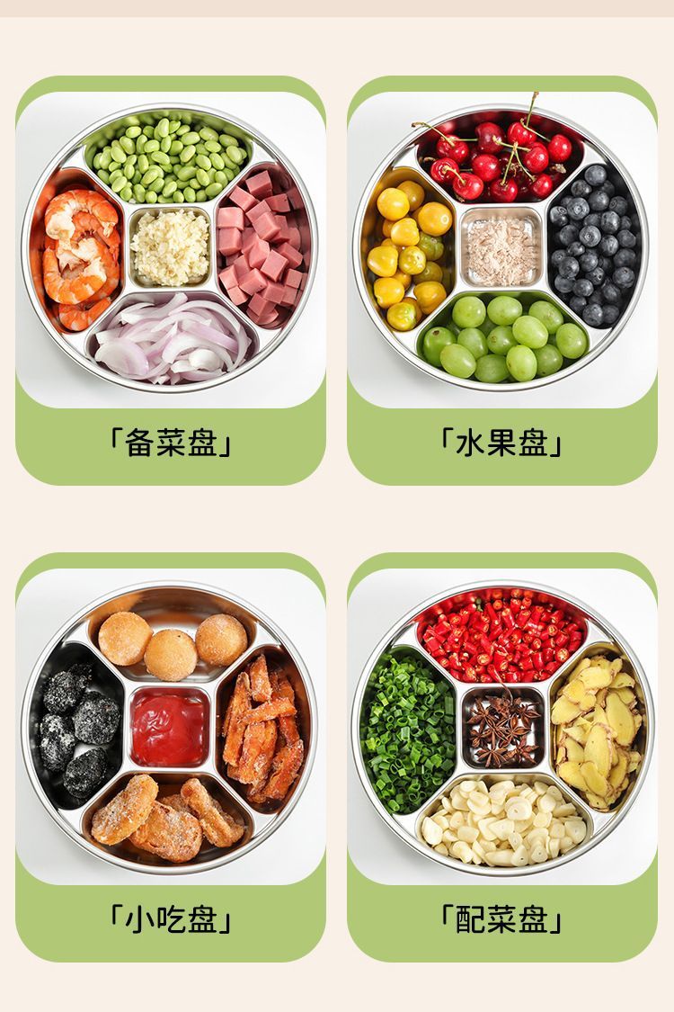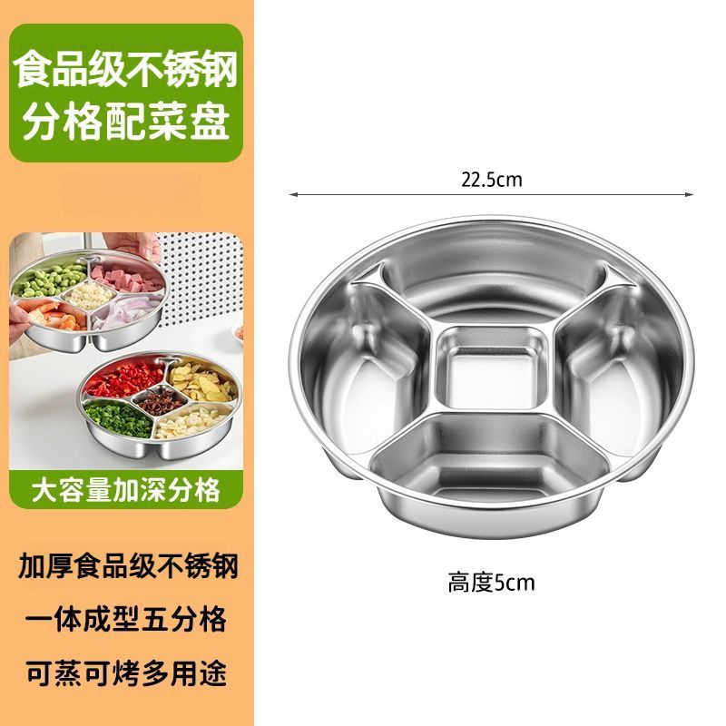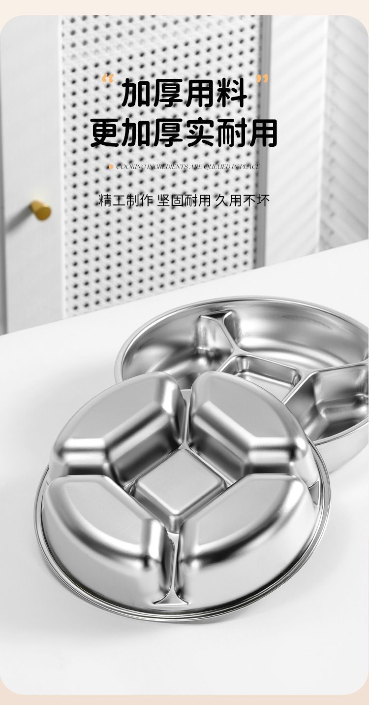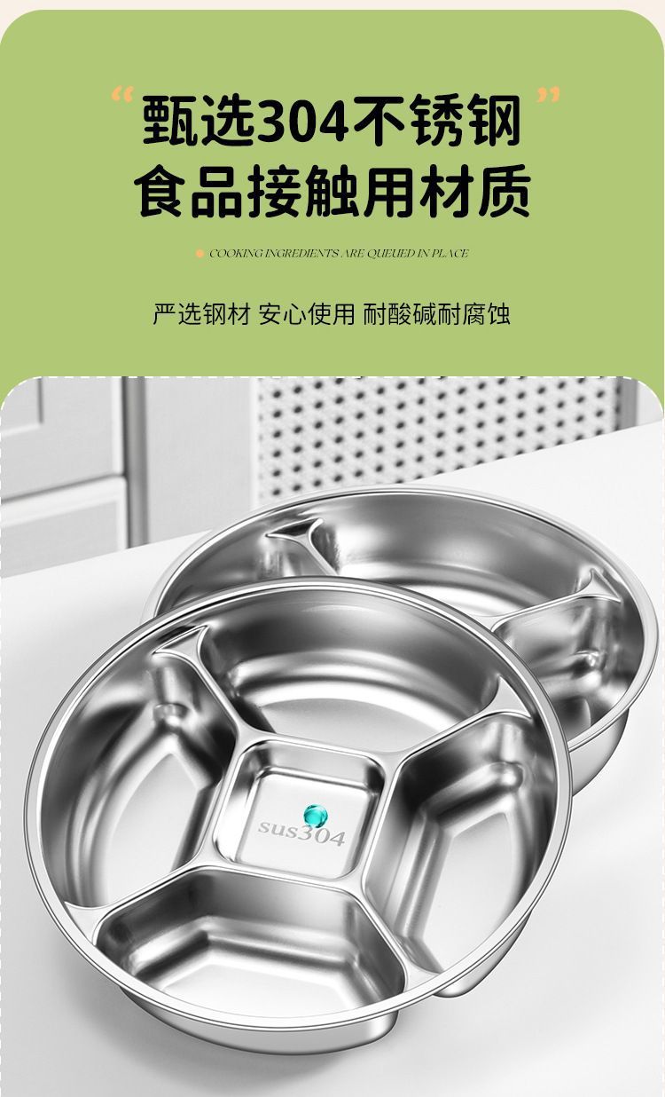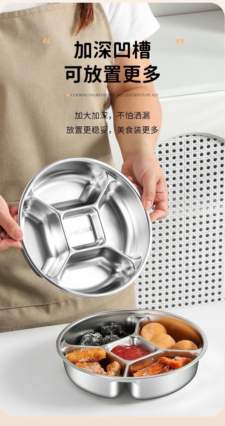 316加厚不锈钢分格盘家用商用食堂五格餐盘饭盘菜盘配菜盘备菜盘