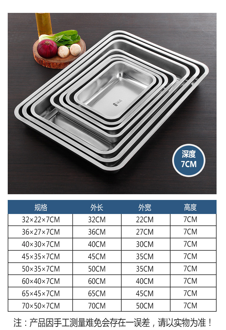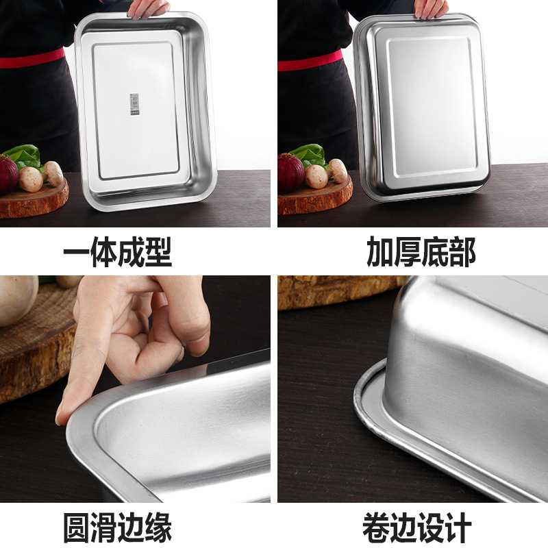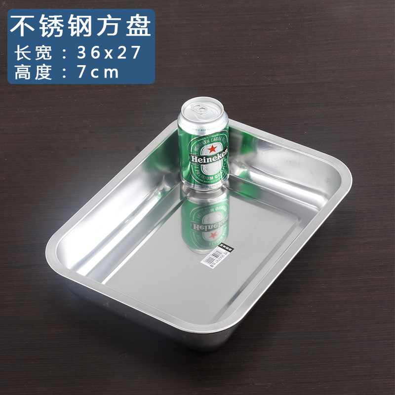 不锈钢托盘长方形方盆加深方盘商用烤鱼盘烧烤盘特大号铁盆铁盘子