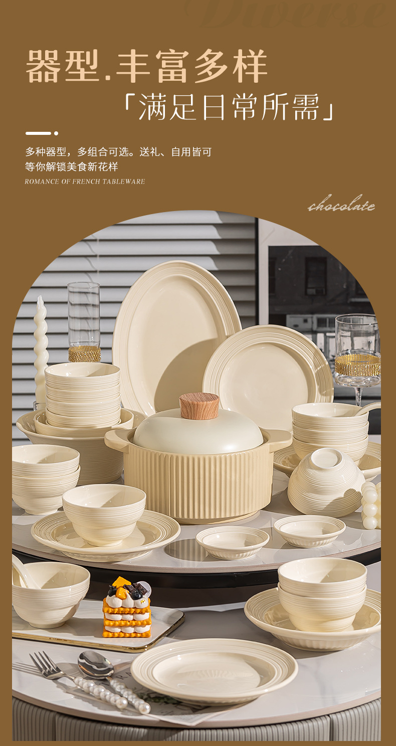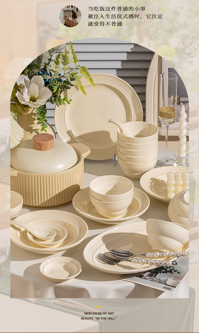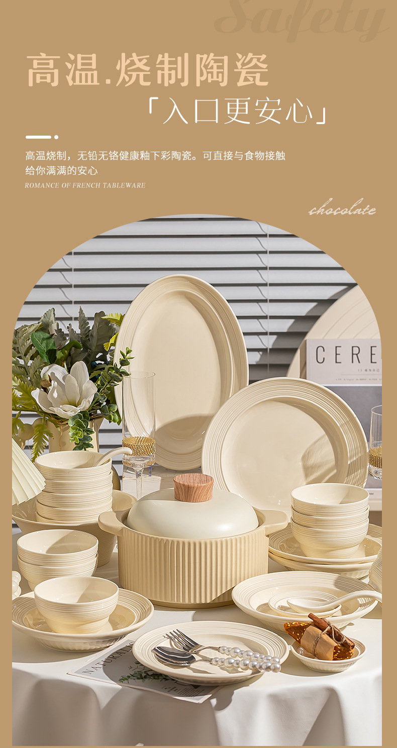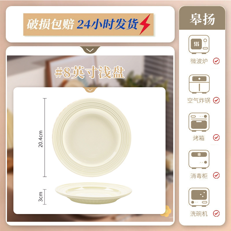 奶油风家用陶瓷盘子早餐盘釉下彩餐具碗盘菜盘碗碟套装特加厚防烫