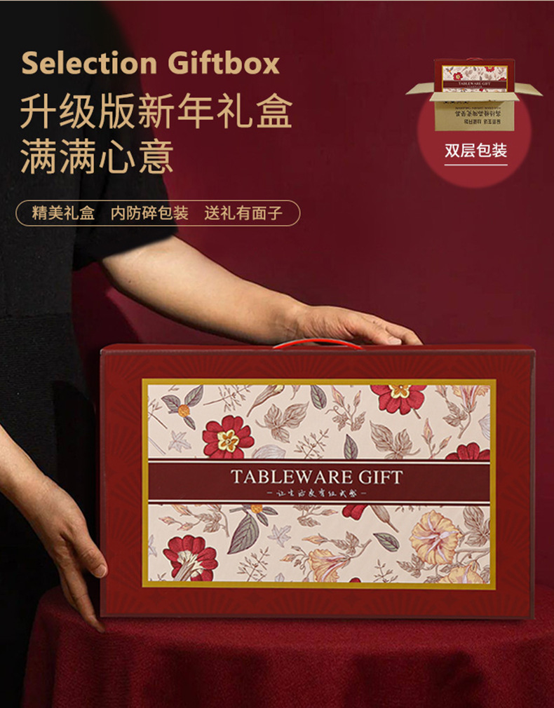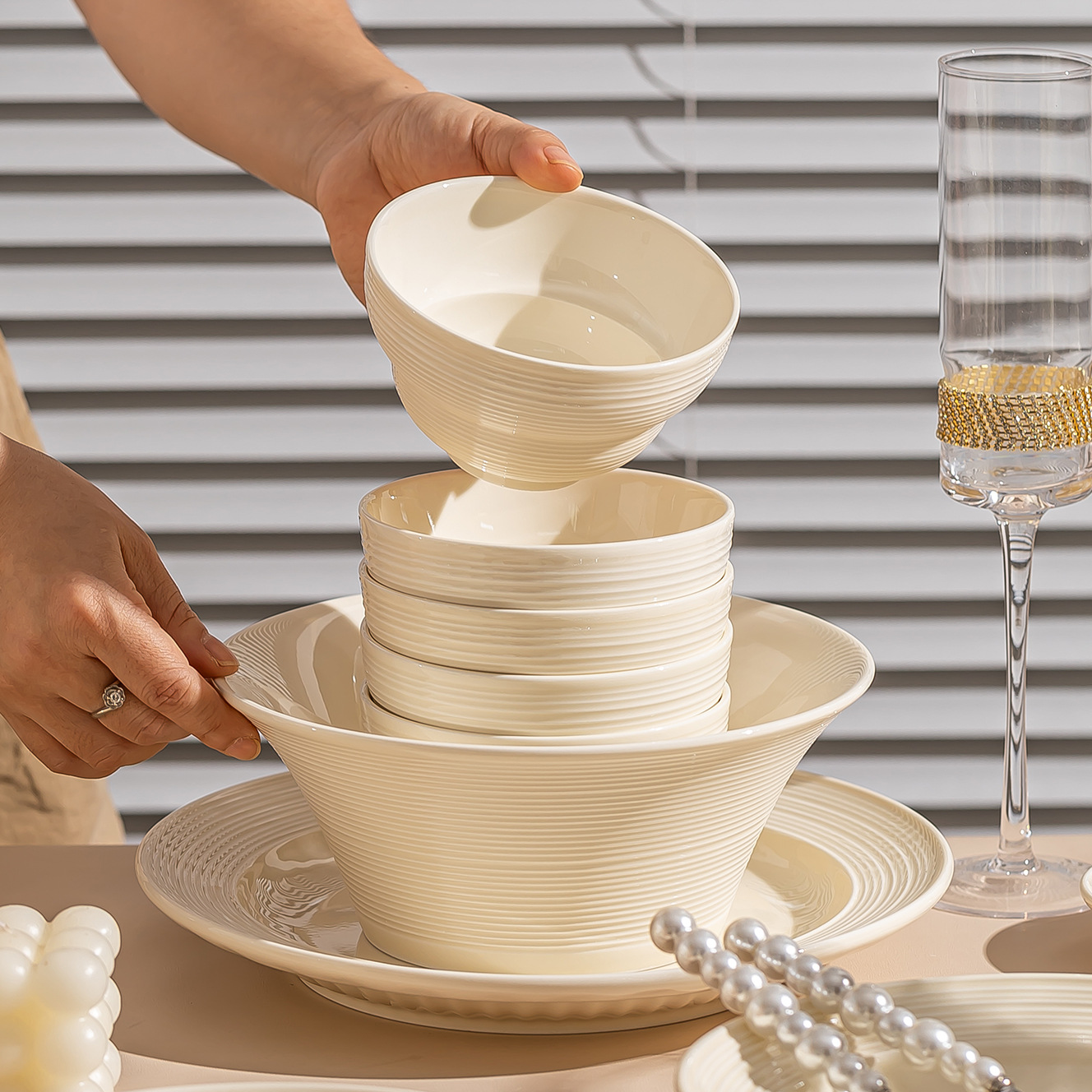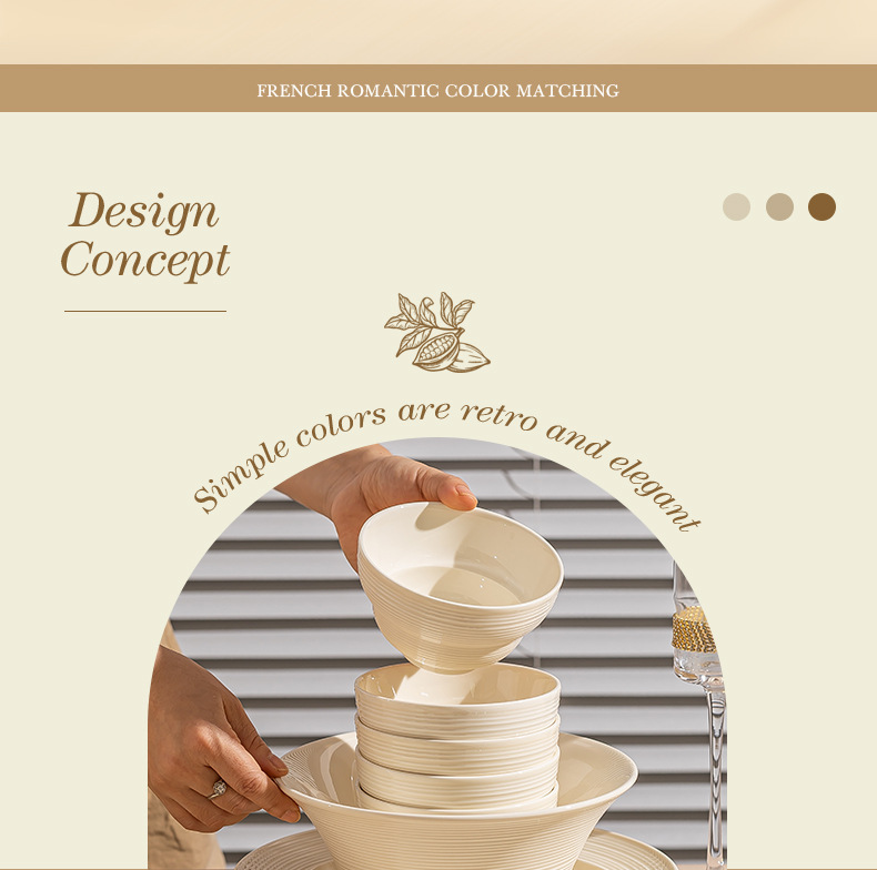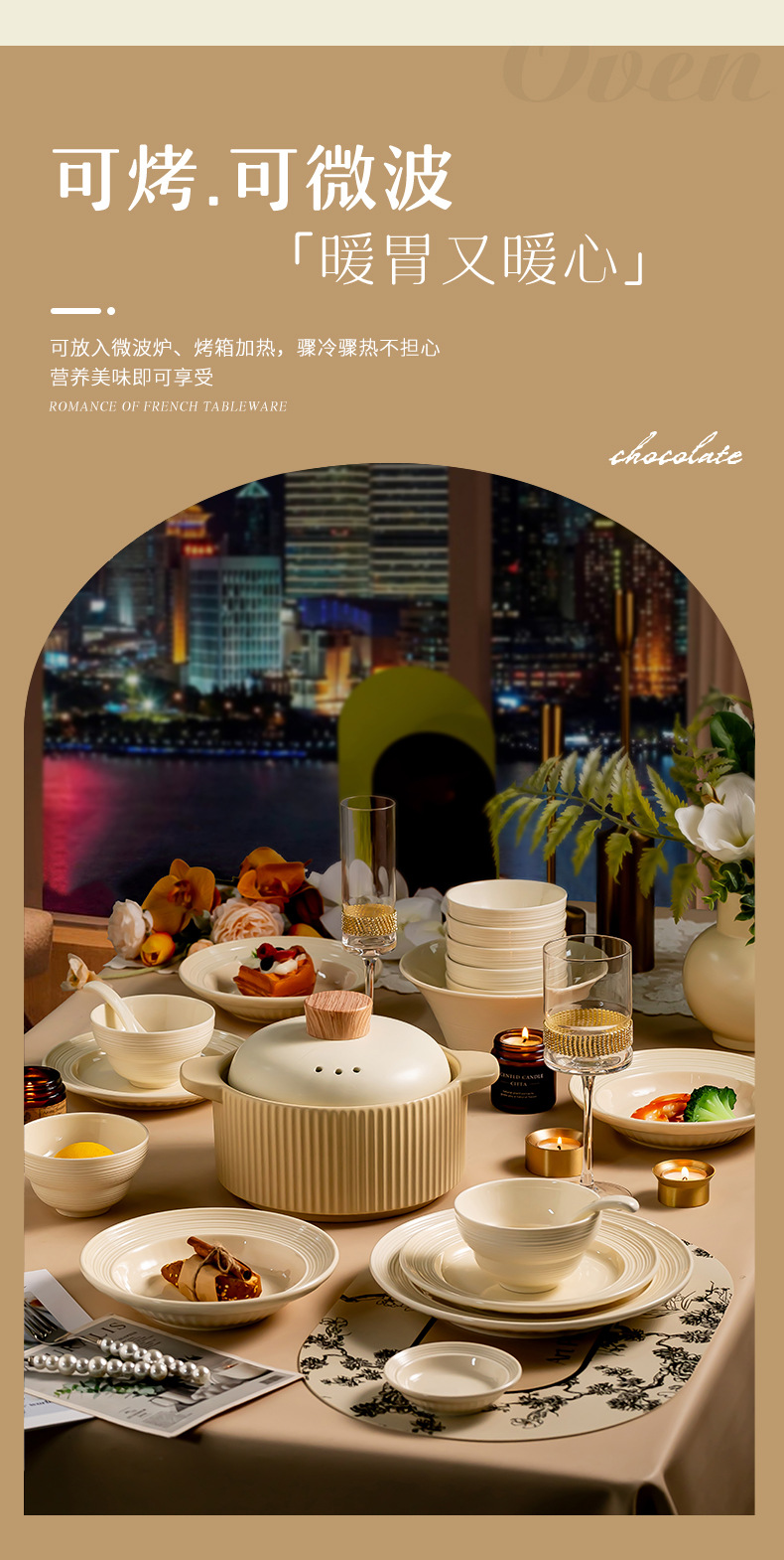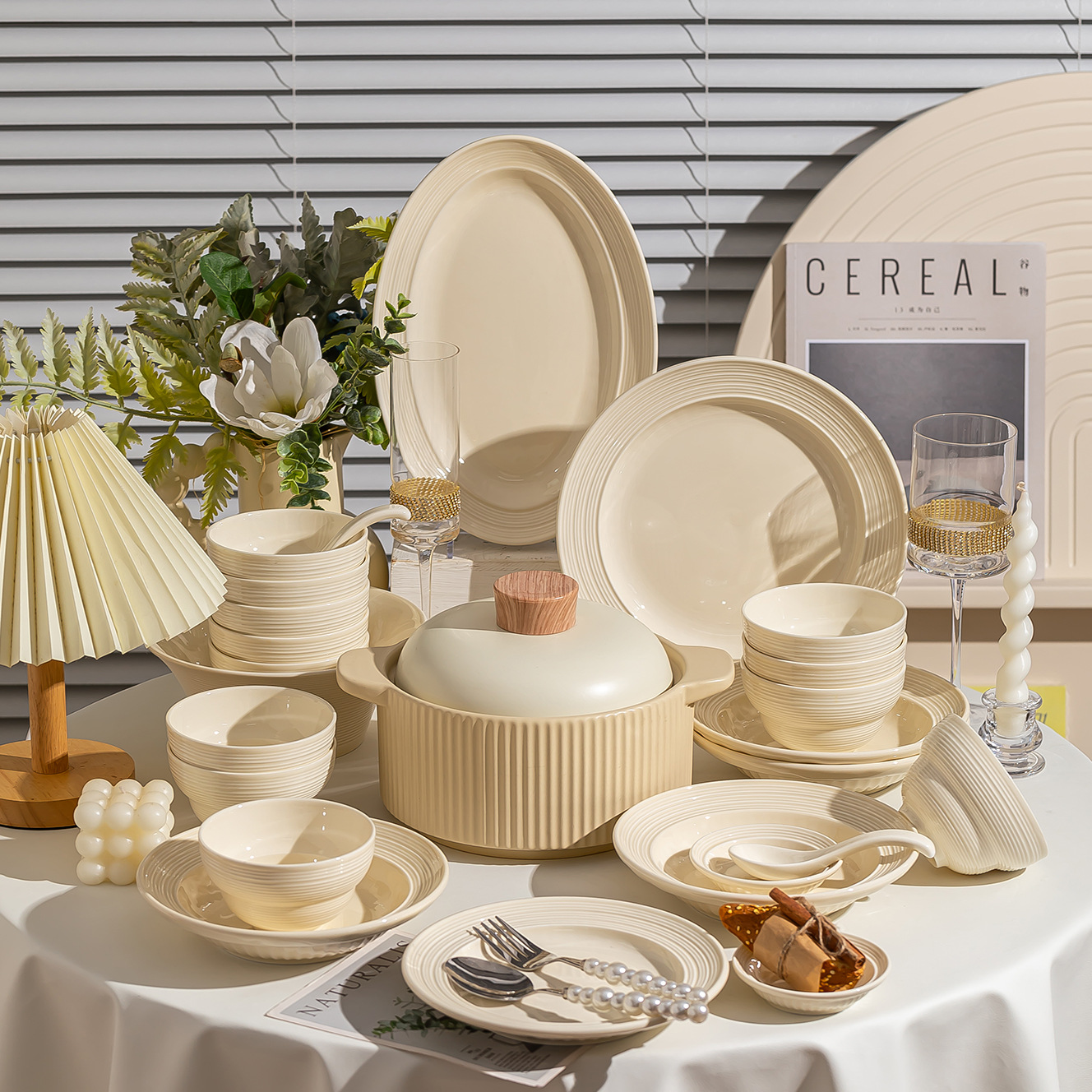 奶油风家用陶瓷盘子早餐盘釉下彩餐具碗盘菜盘碗碟套装特加厚防烫