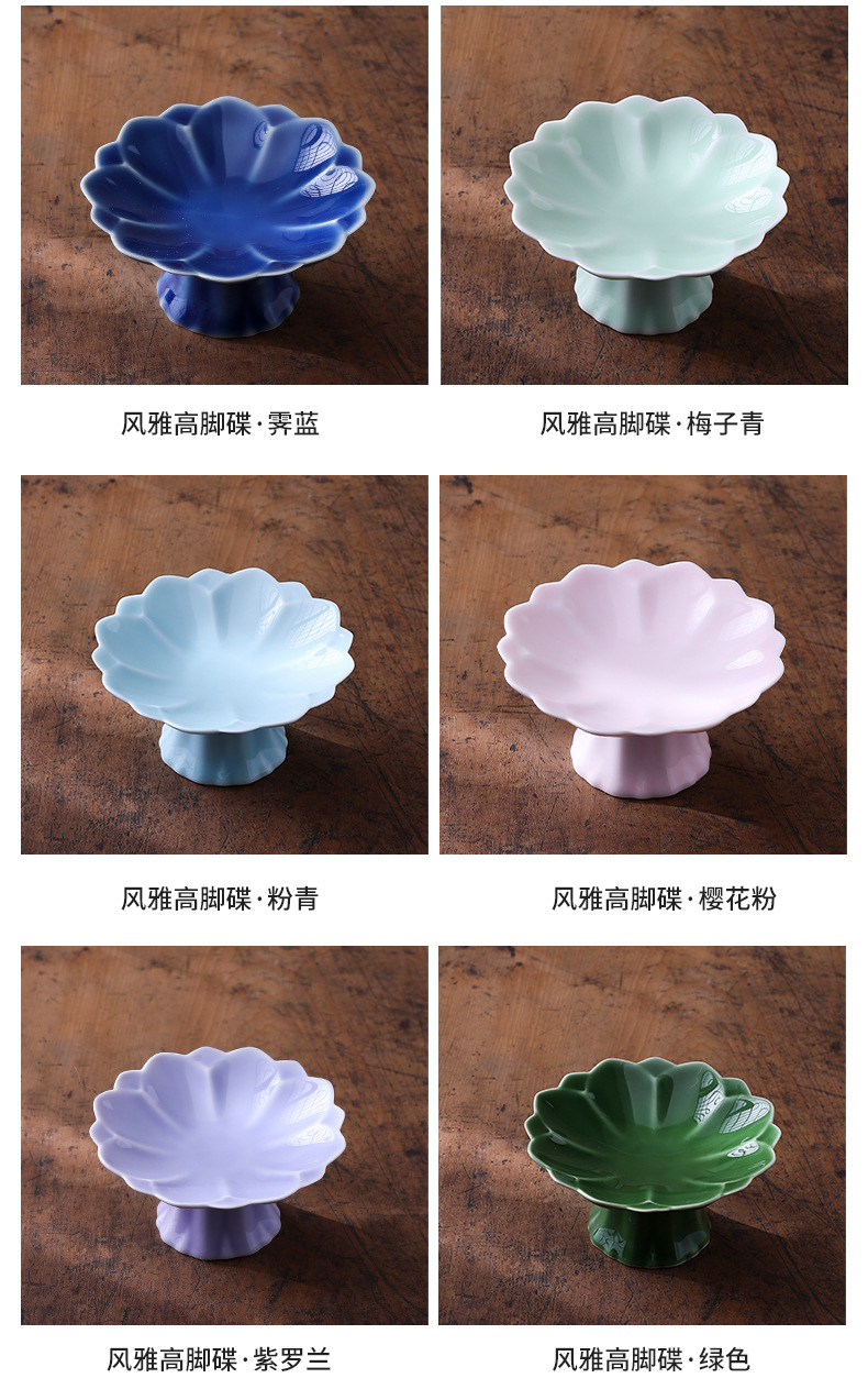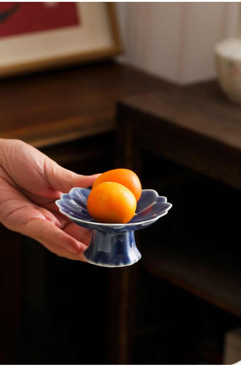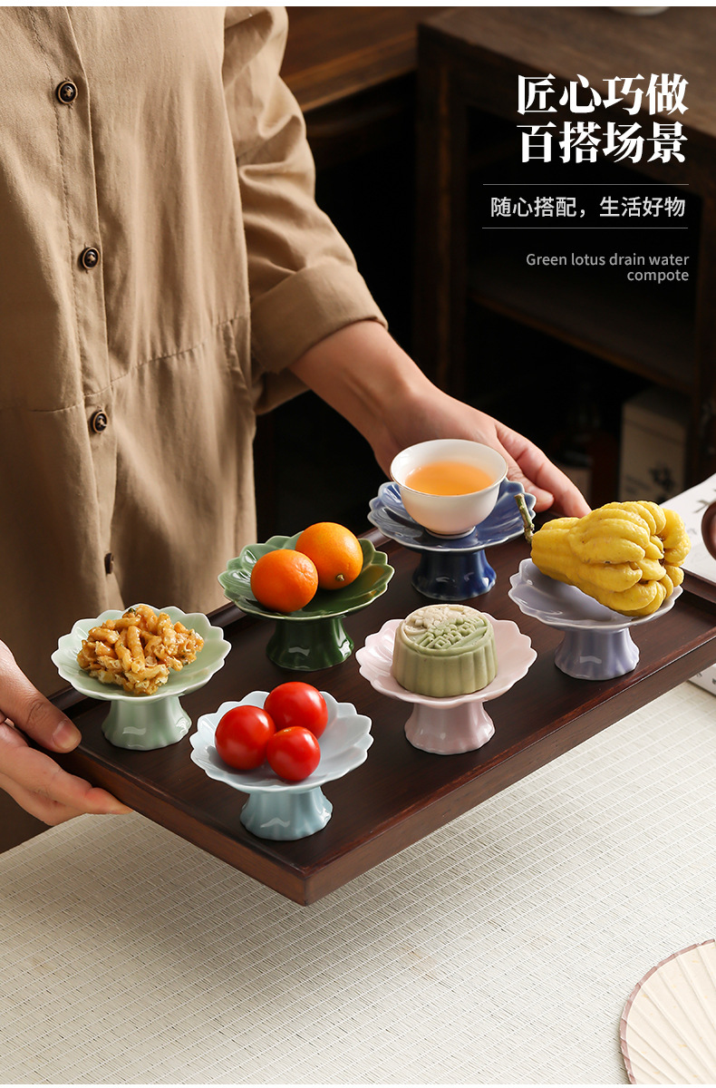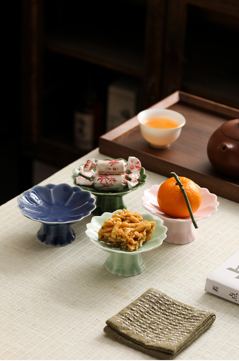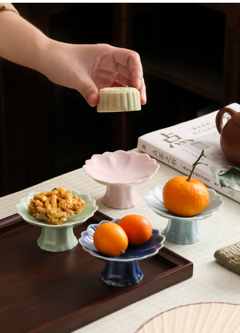 中式高脚陶瓷茶点盘小号精致点心盘零食盘茶歇糕点小吃盘水果盘