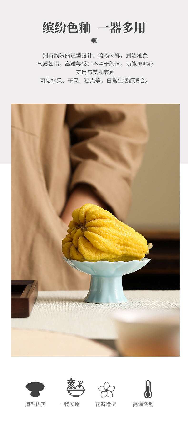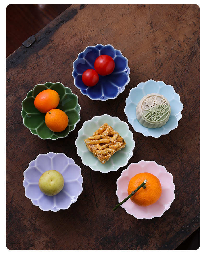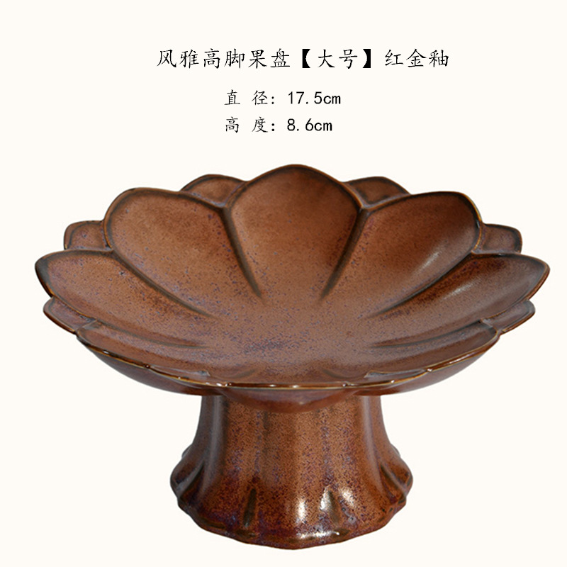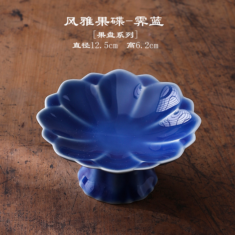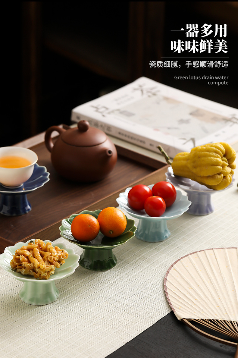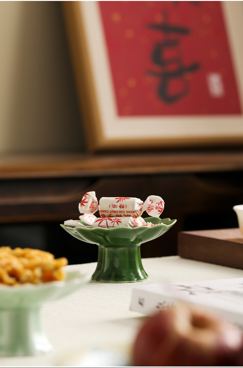中式高脚陶瓷茶点盘小号精致点心盘零食盘茶歇糕点小吃盘水果盘