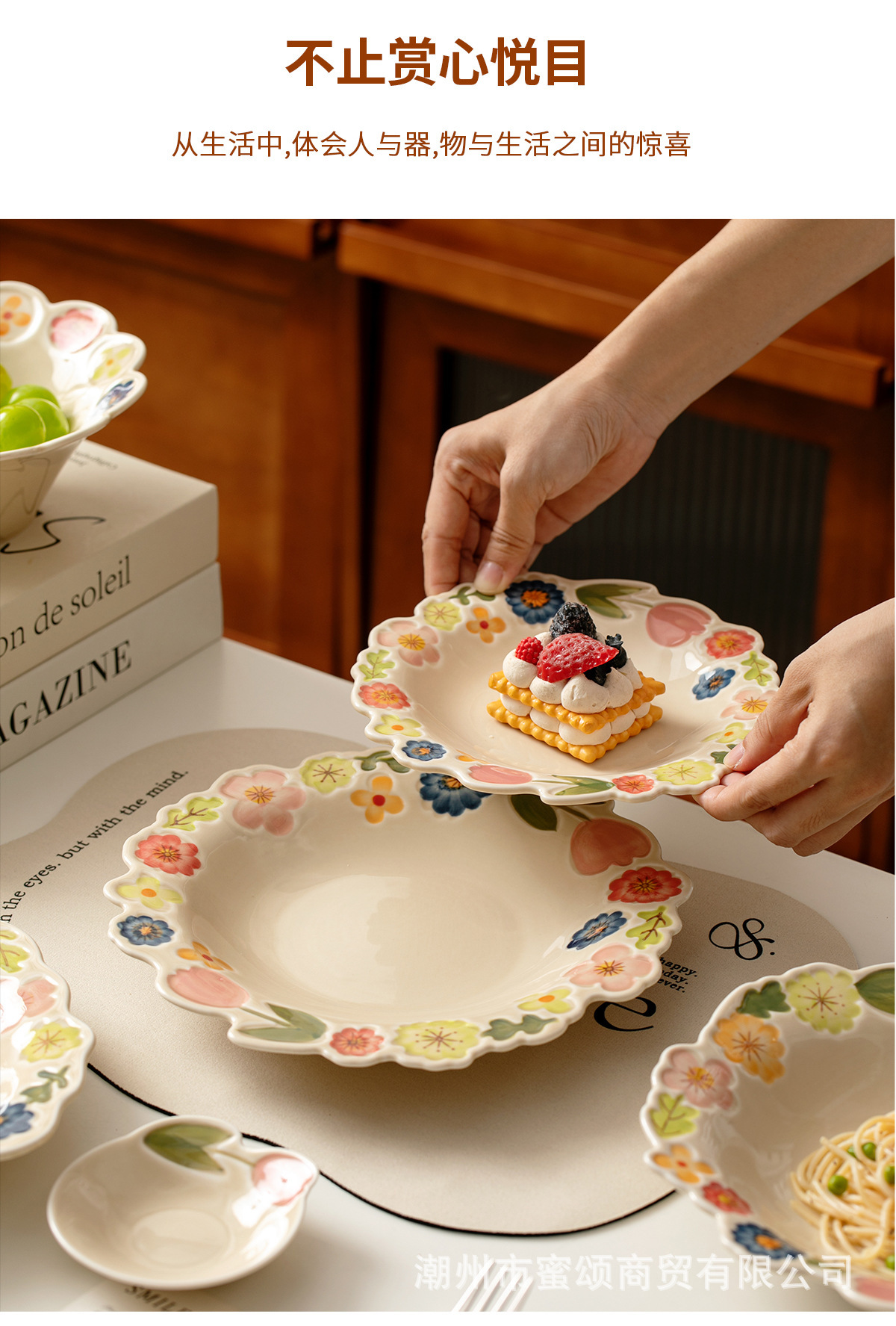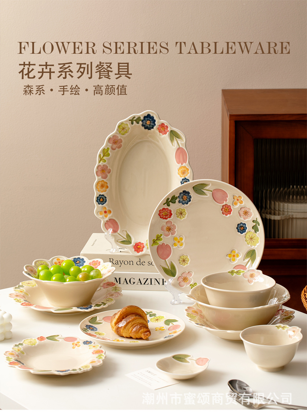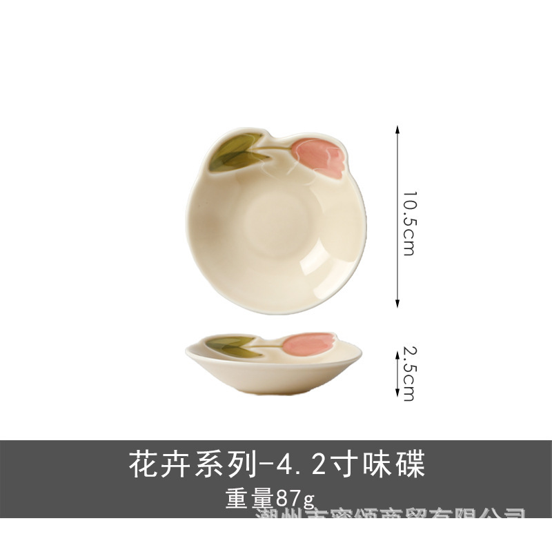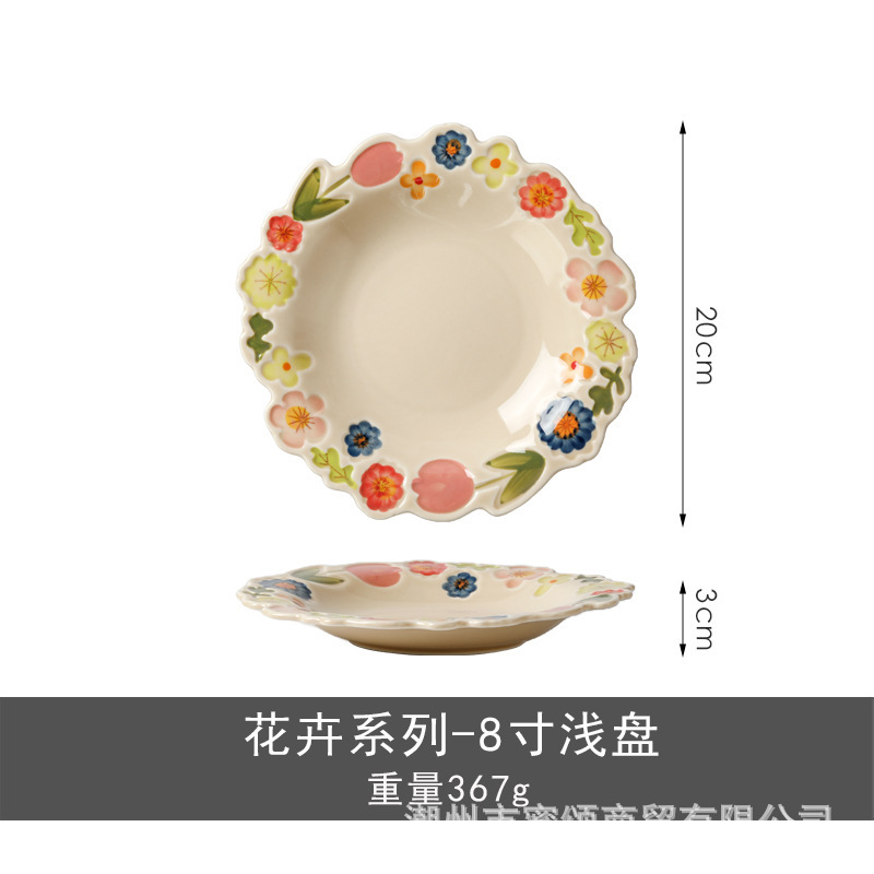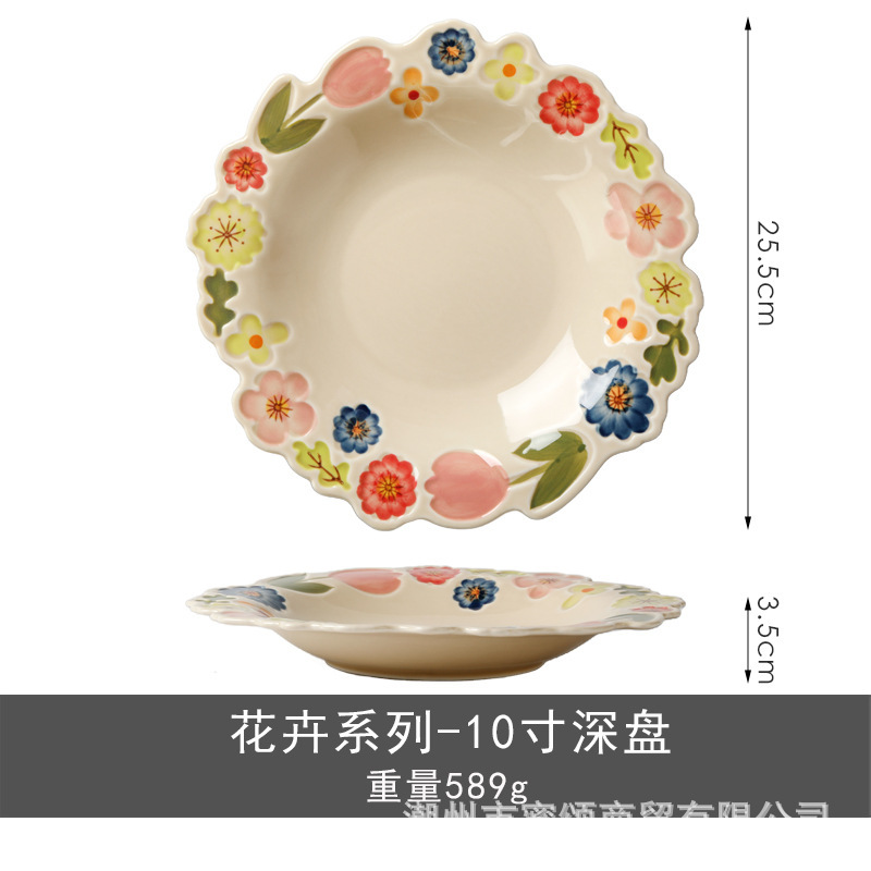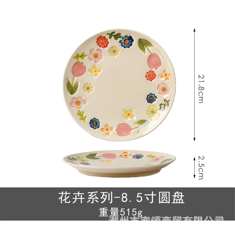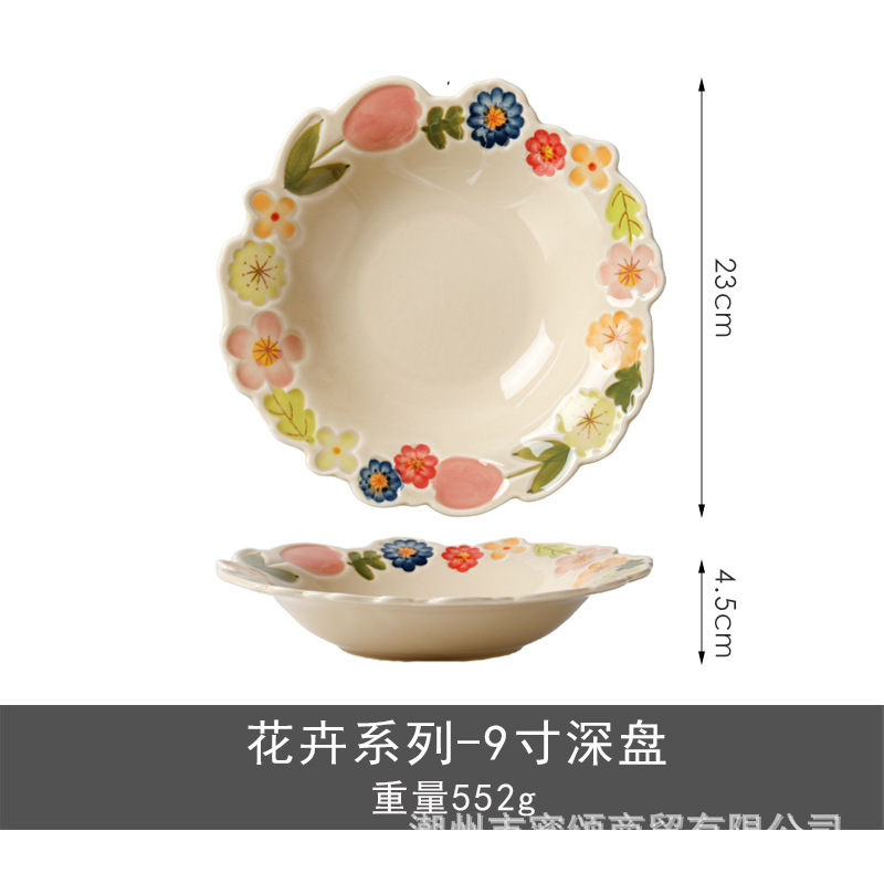 花卉系列日式复古碗碟套装陶瓷餐具高颜值釉彩餐盘家用饭碗水果盘