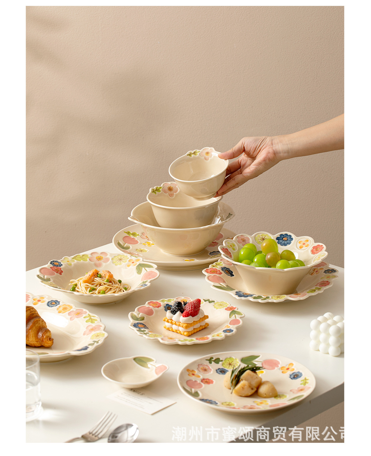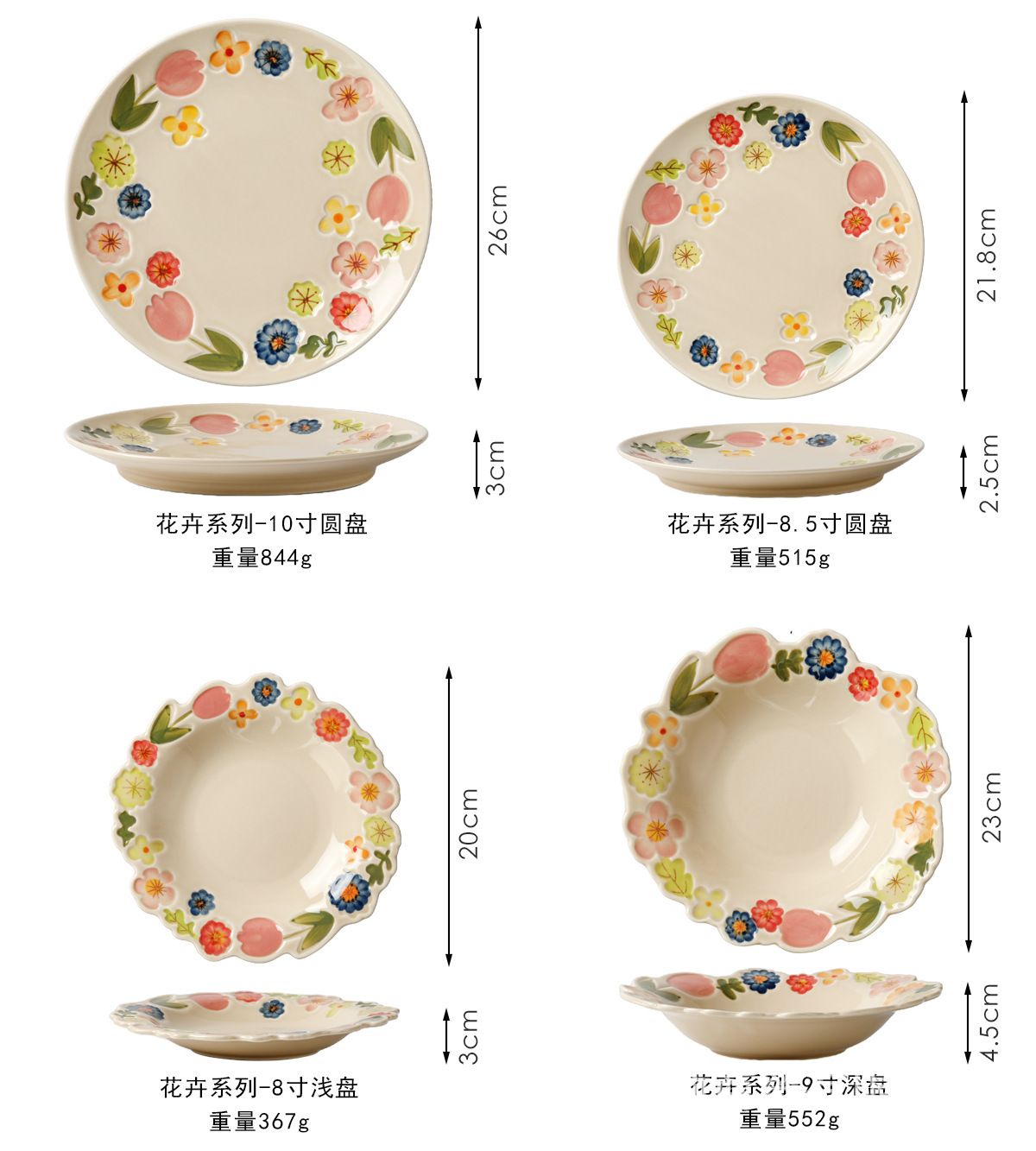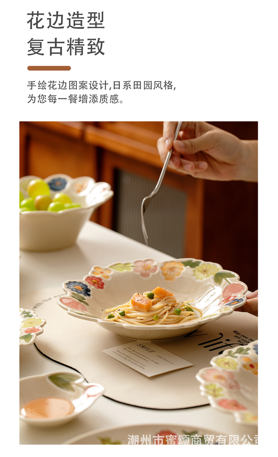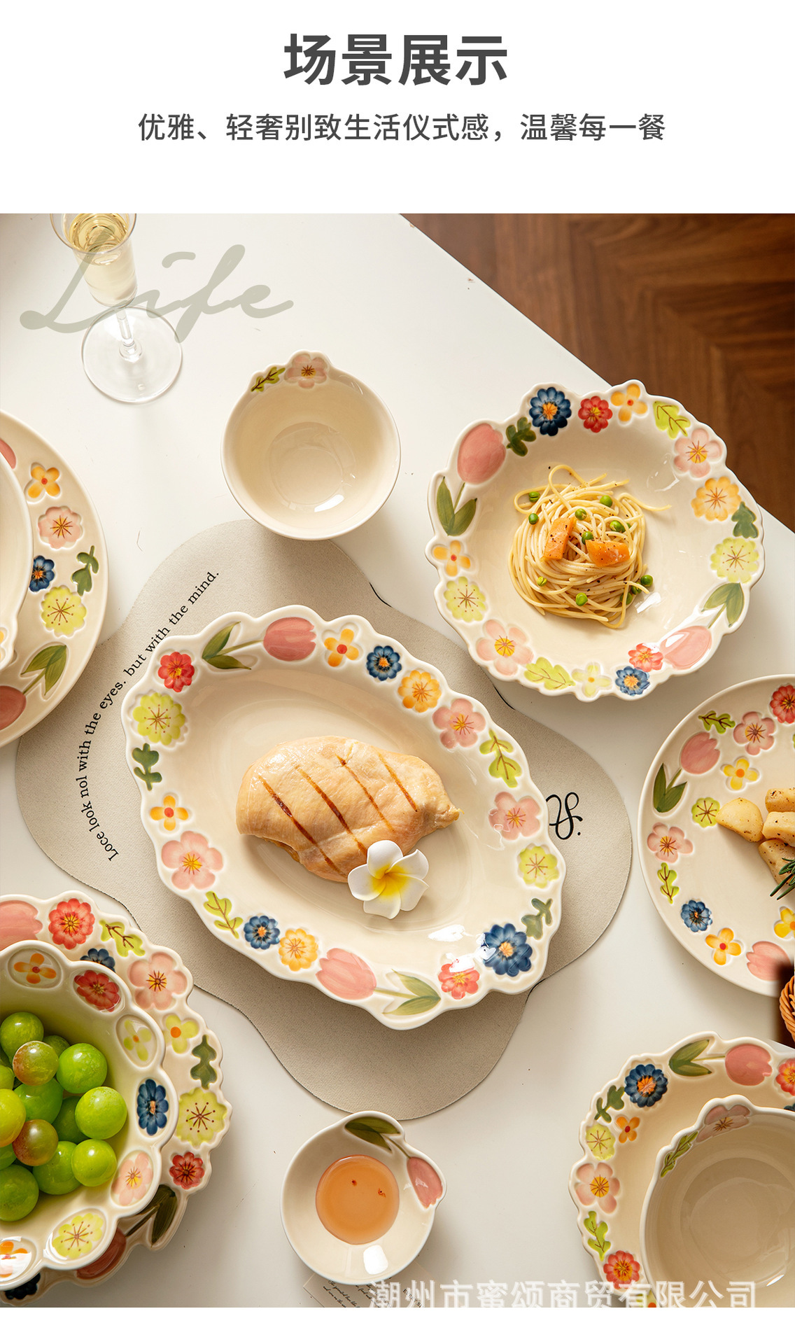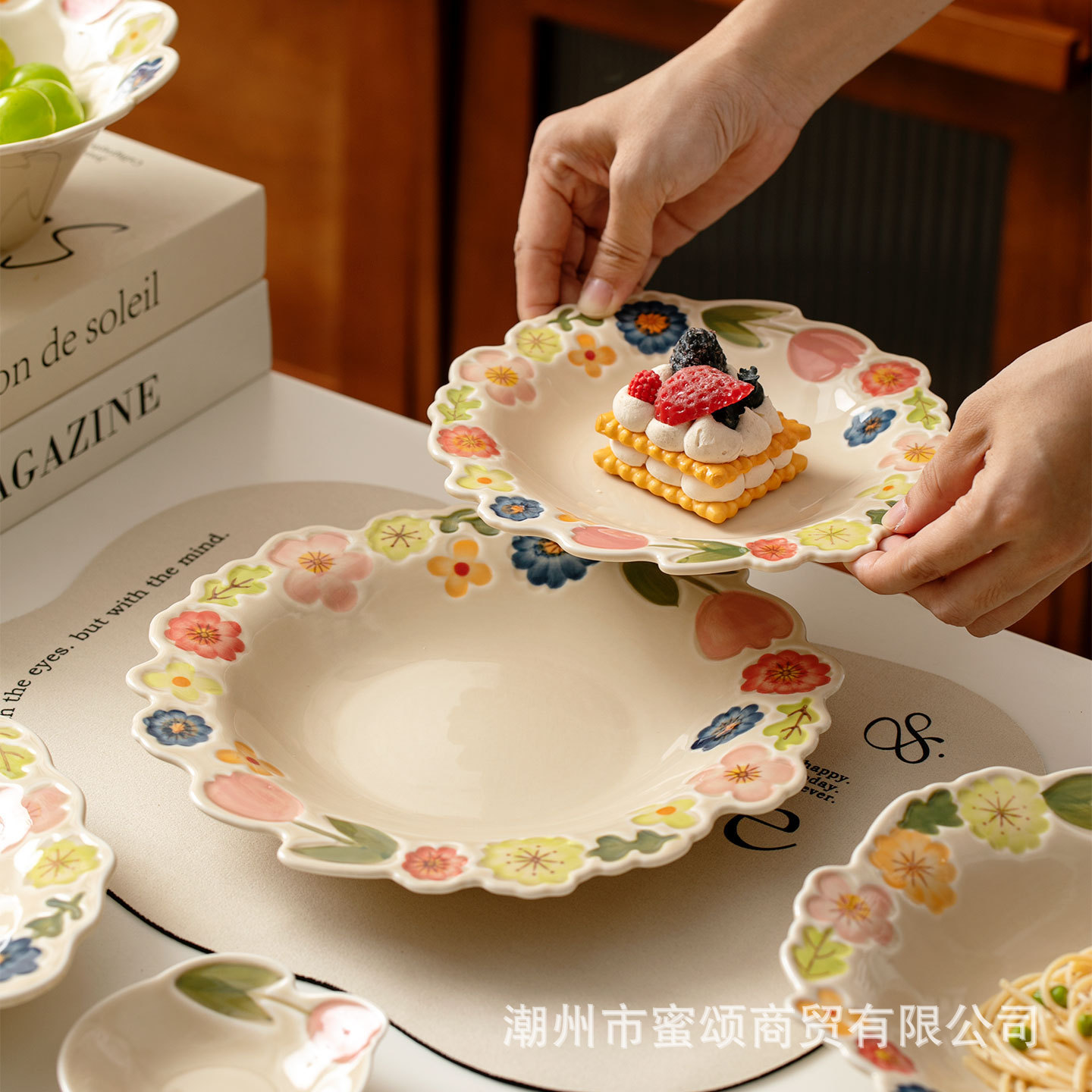 花卉系列日式复古碗碟套装陶瓷餐具高颜值釉彩餐盘家用饭碗水果盘
