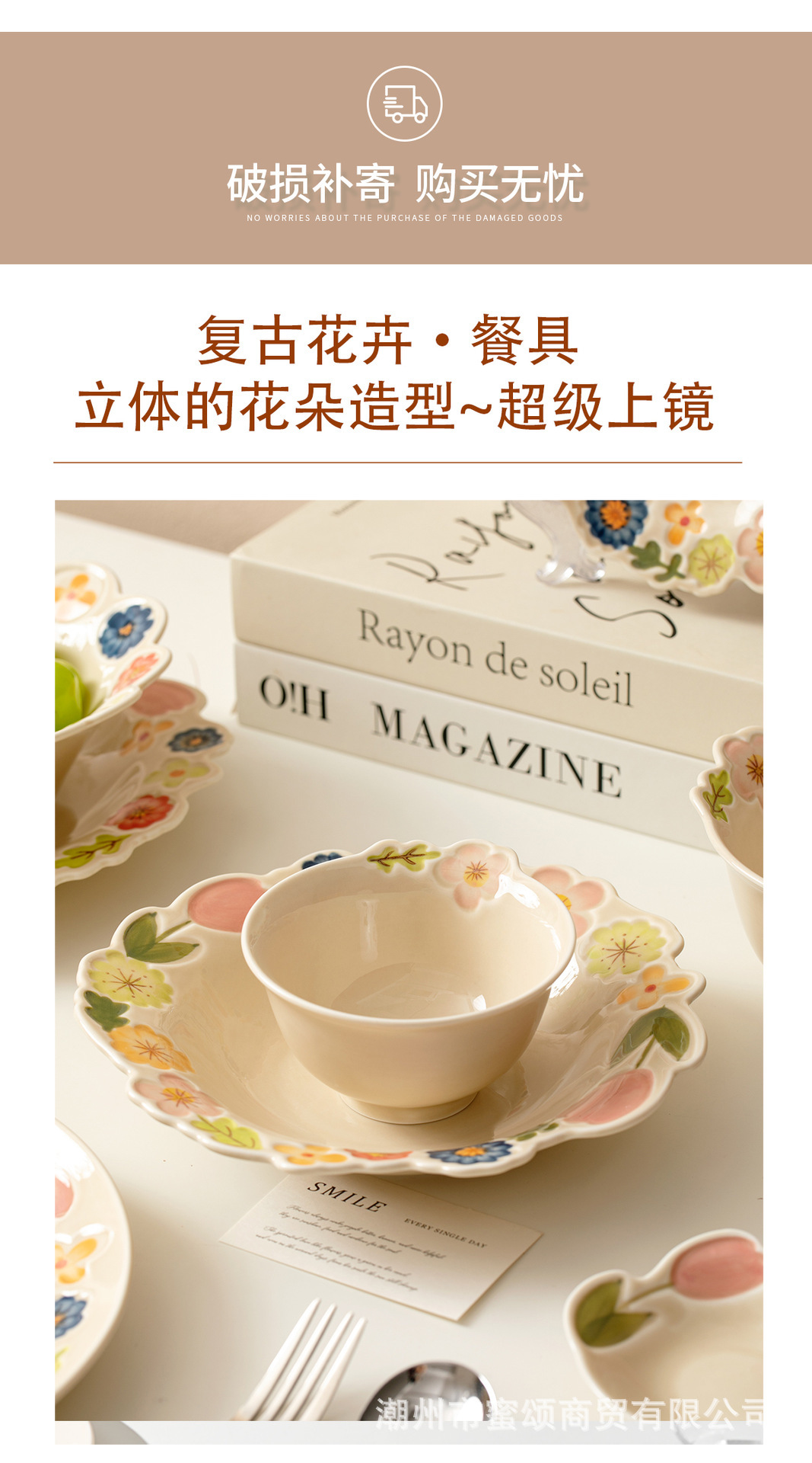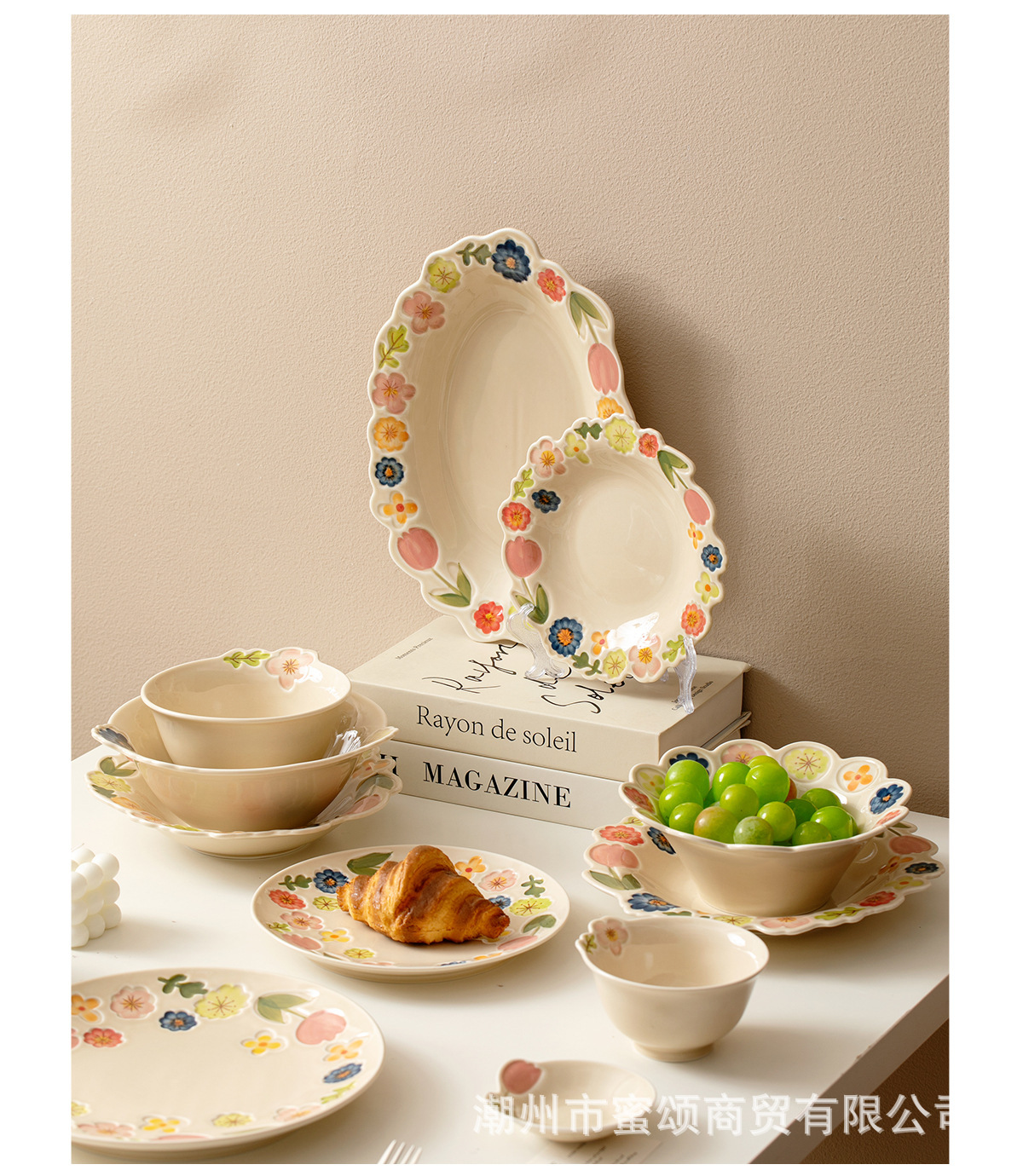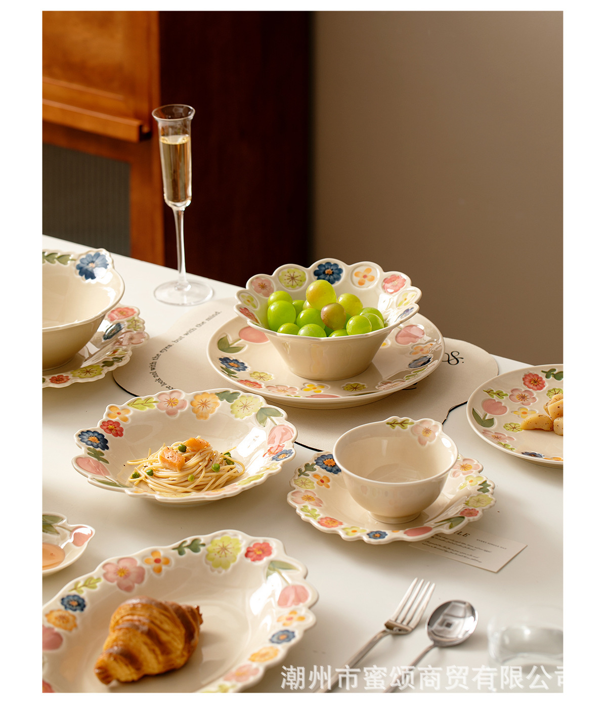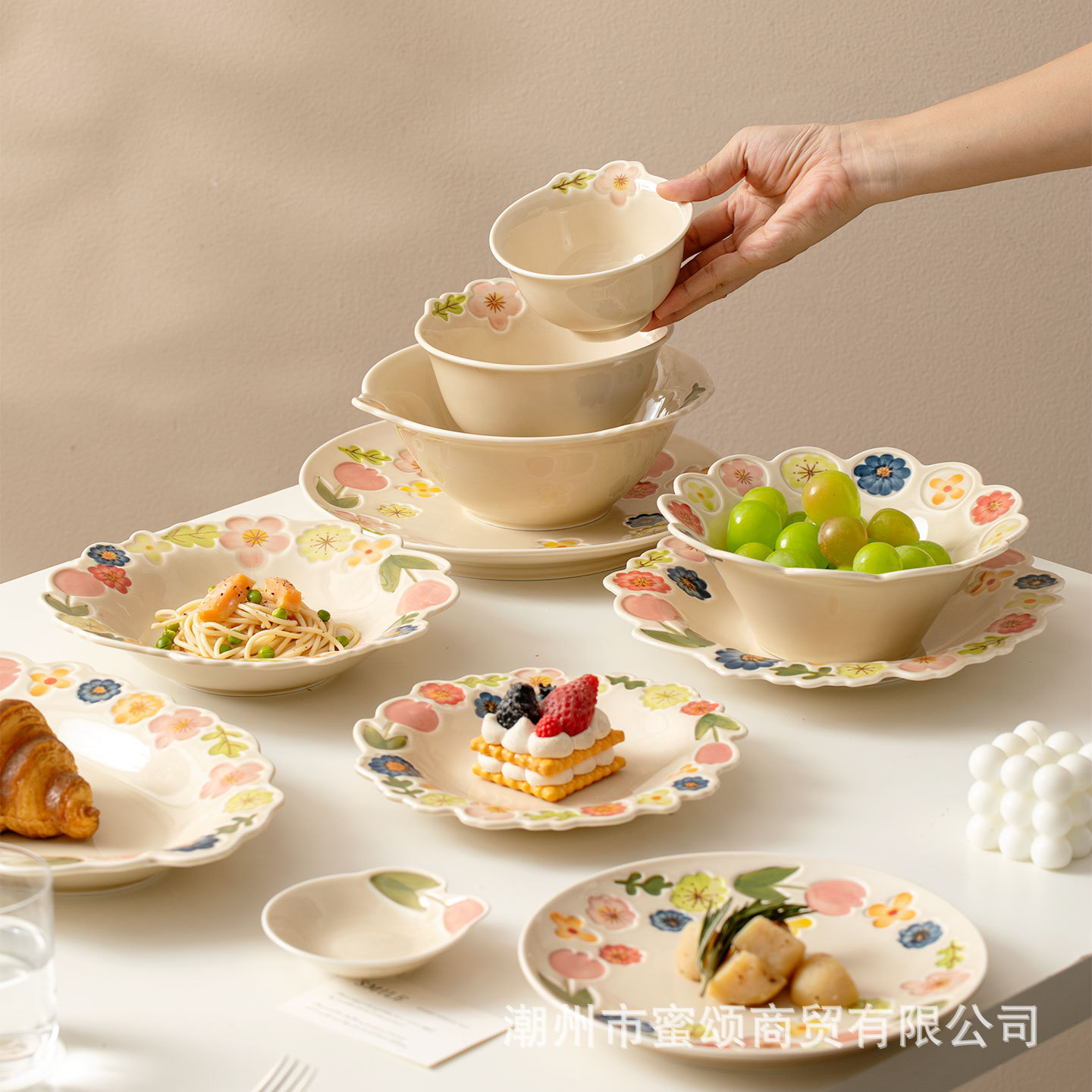 花卉系列日式复古碗碟套装陶瓷餐具高颜值釉彩餐盘家用饭碗水果盘