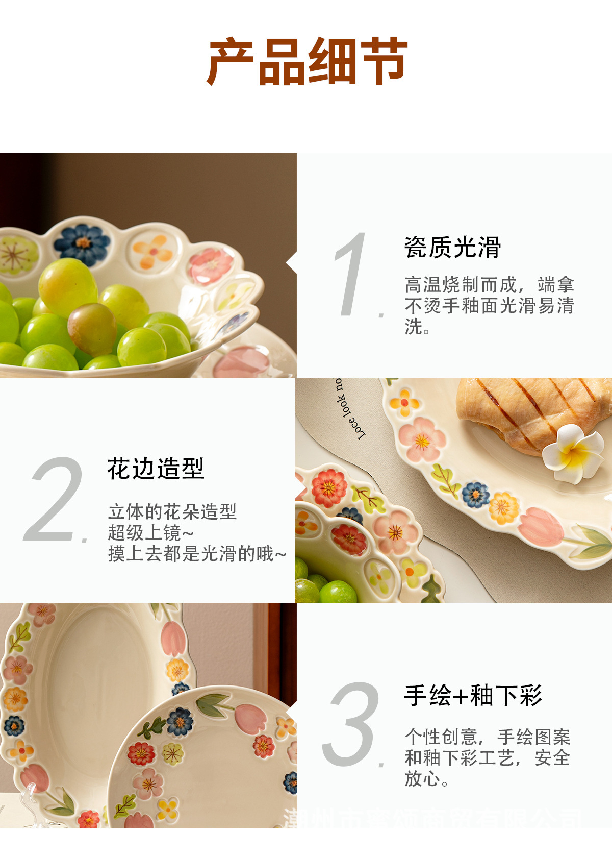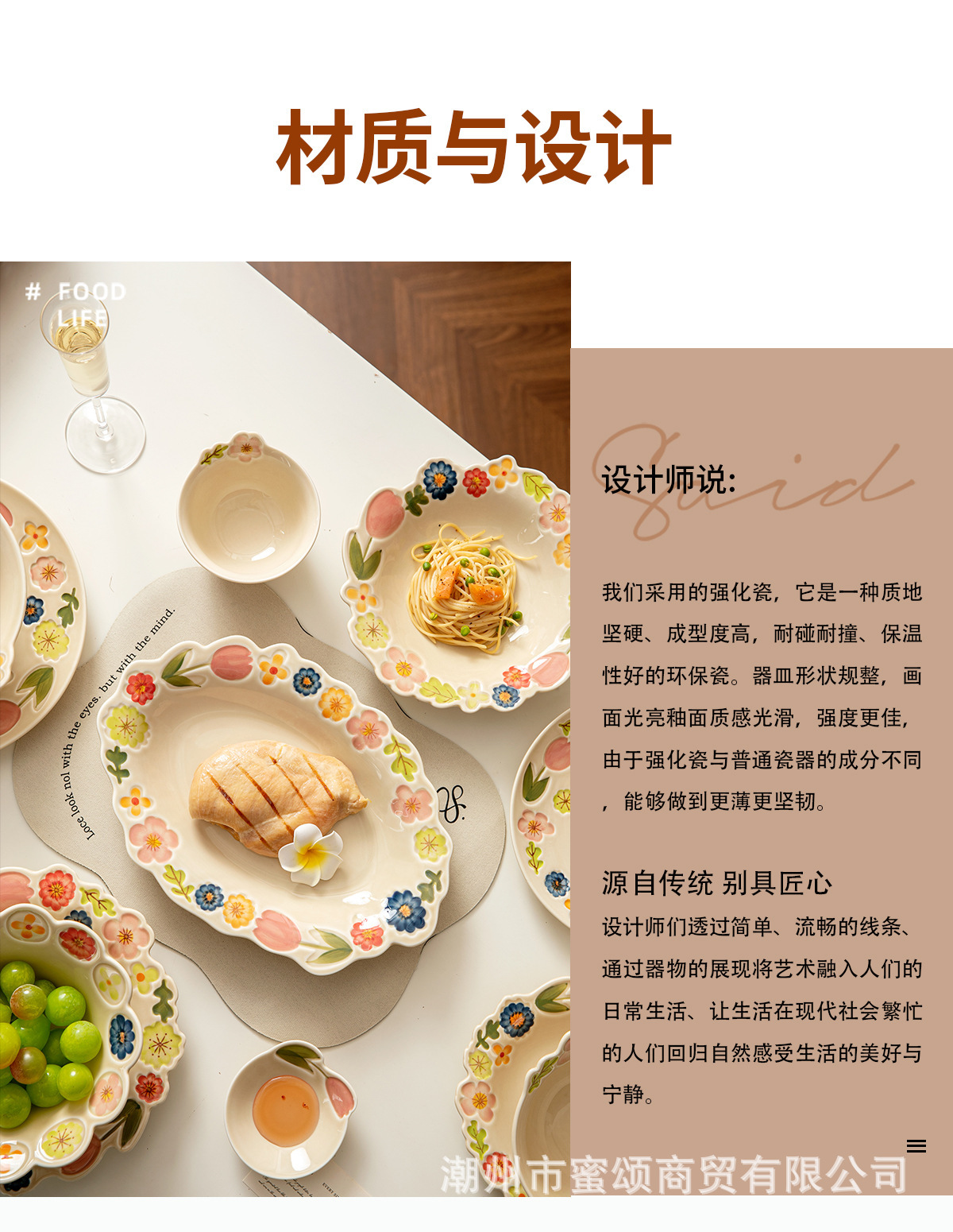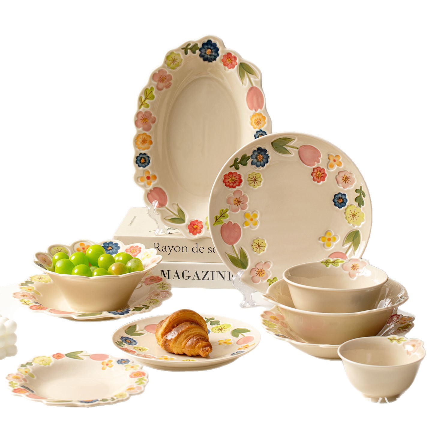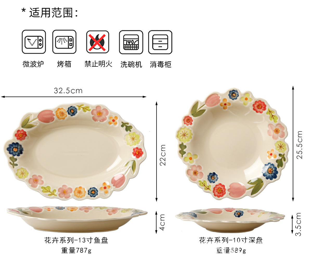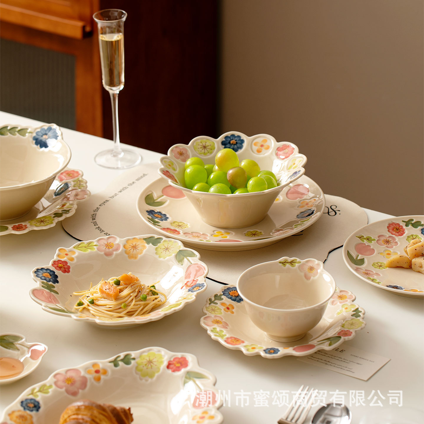 花卉系列日式复古碗碟套装陶瓷餐具高颜值釉彩餐盘家用饭碗水果盘